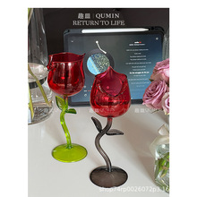 法式浪漫优雅ins微卷玫瑰花酒杯高脚杯香槟杯红酒杯葡萄鸡尾酒杯