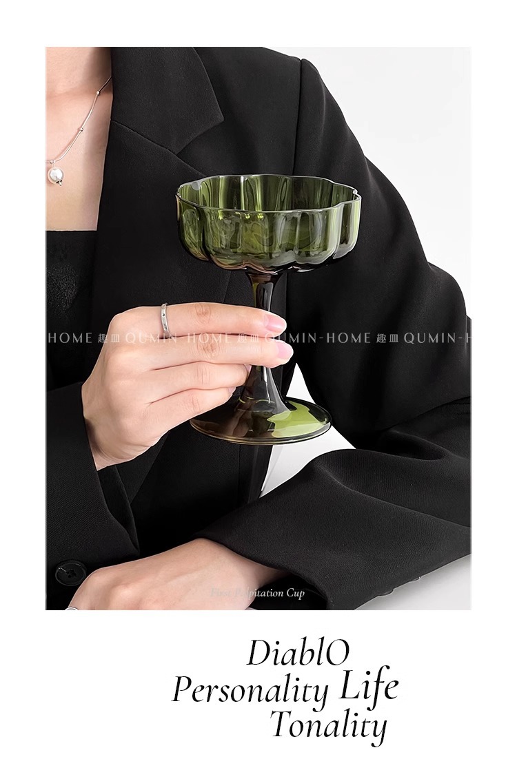 轻奢精致玻璃高脚杯起泡酒杯法式高级香槟杯鸡尾酒杯甜品冰淇淋杯
