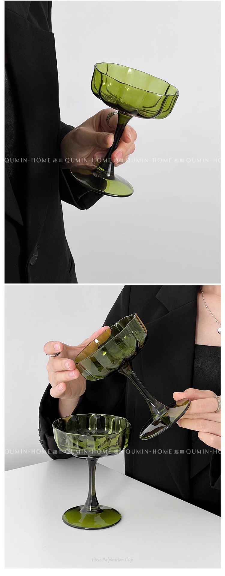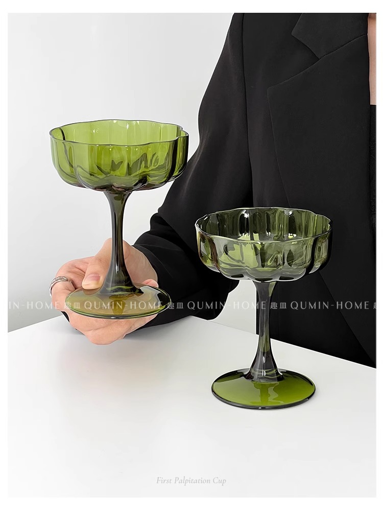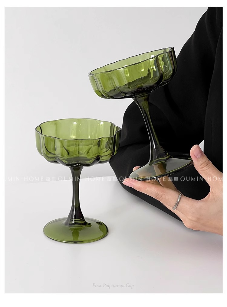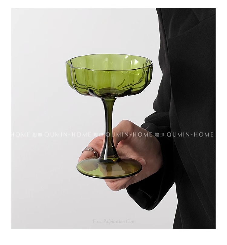 法式复古小众绿色高脚玻璃杯中古香槟杯果酒杯子家用宴会热红酒杯