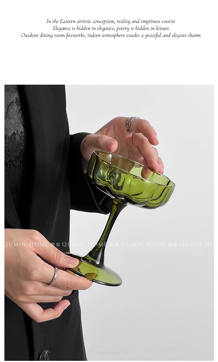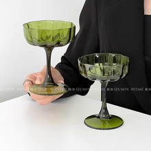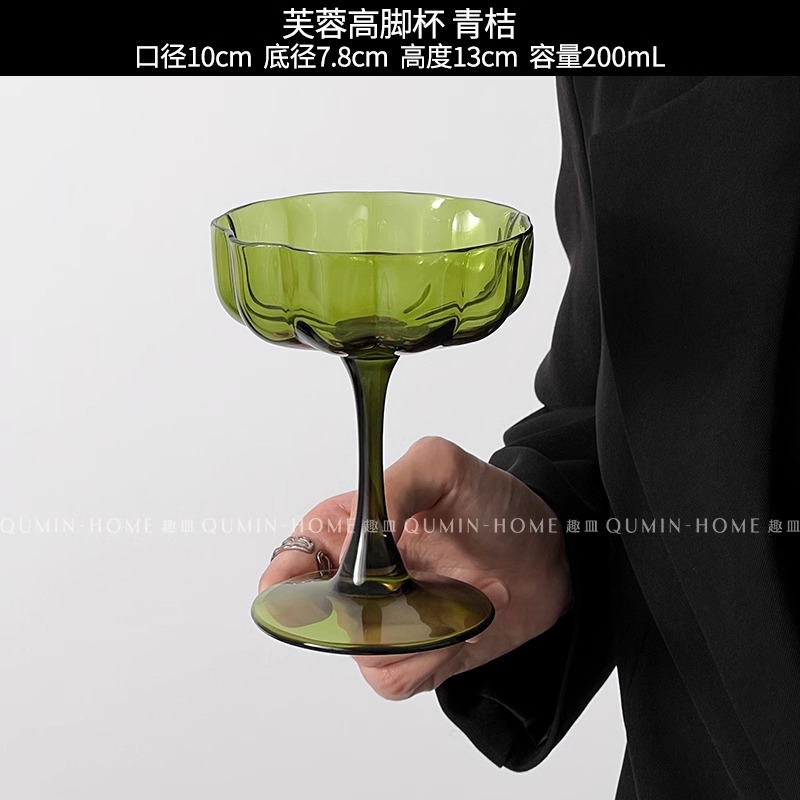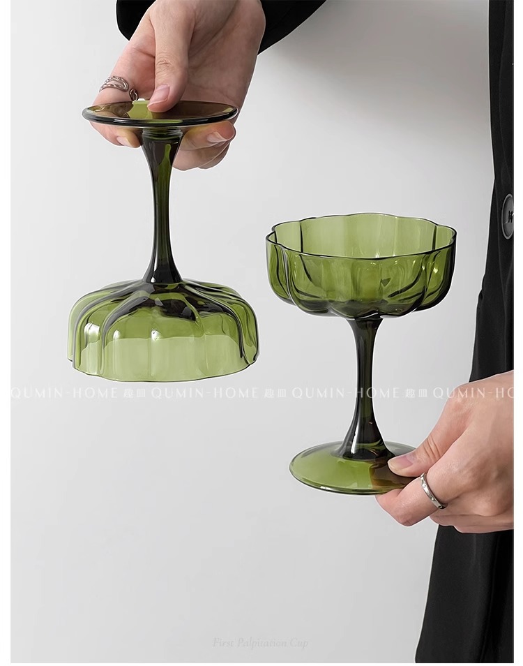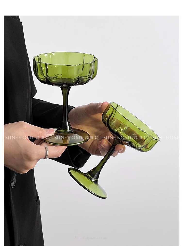 法式复古小众绿色高脚玻璃杯中古香槟杯果酒杯子家用宴会热红酒杯