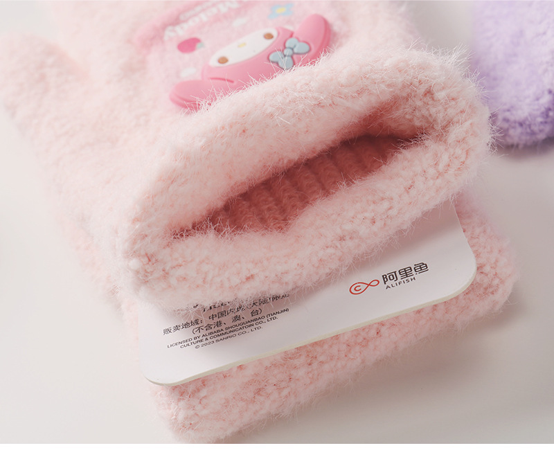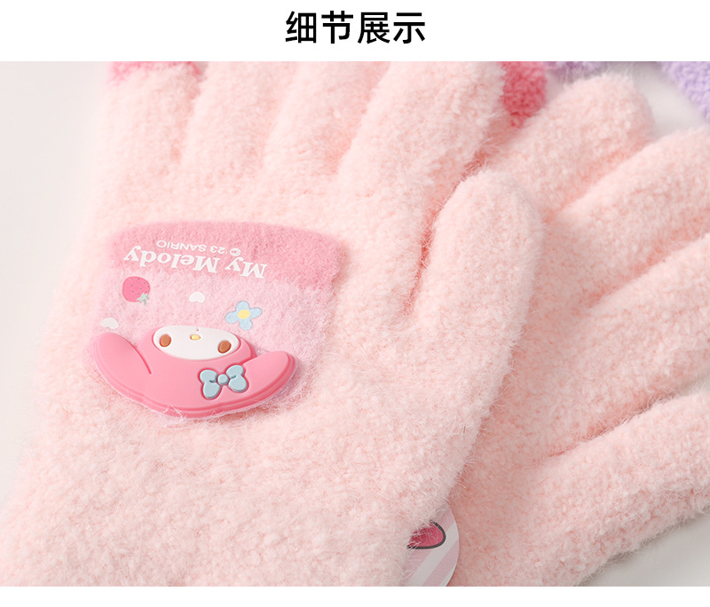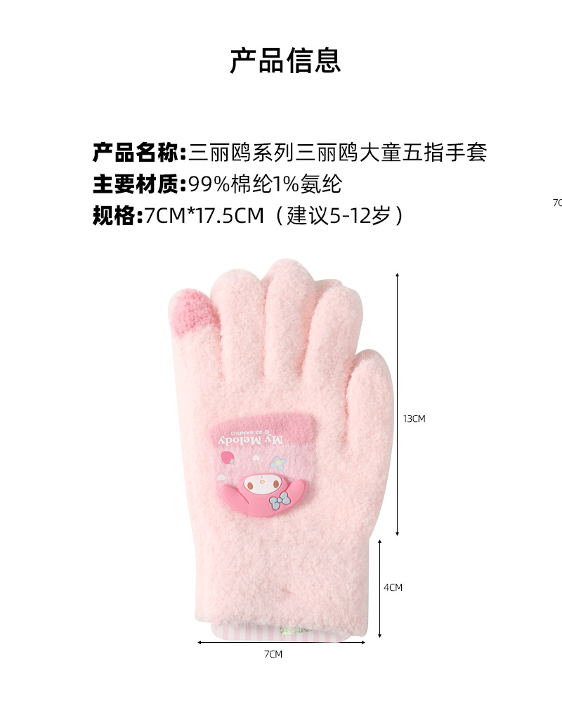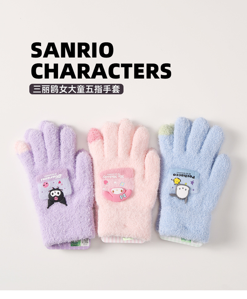 산리오 정품 공인 귀여운 만화 따뜻한 사각형 로고 여성 나이 많은 어린이 다섯 손가락 냉장 겨울 손 가드 meilti스토어 가기