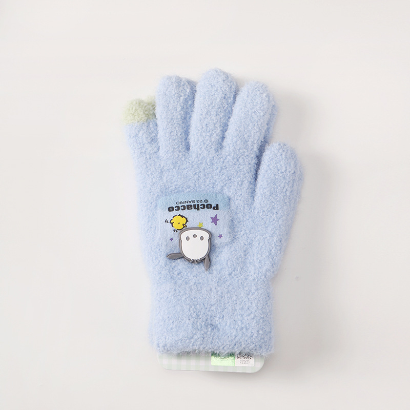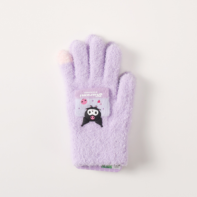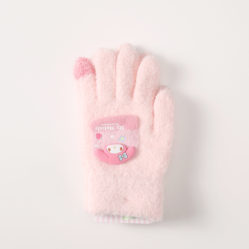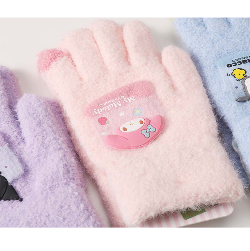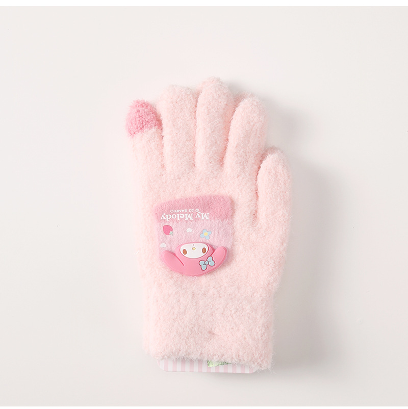 산리오 정품 공인 귀여운 만화 따뜻한 사각형 로고 여성 나이 많은 어린이 다섯 손가락 냉장 겨울 손 가드 meilti
