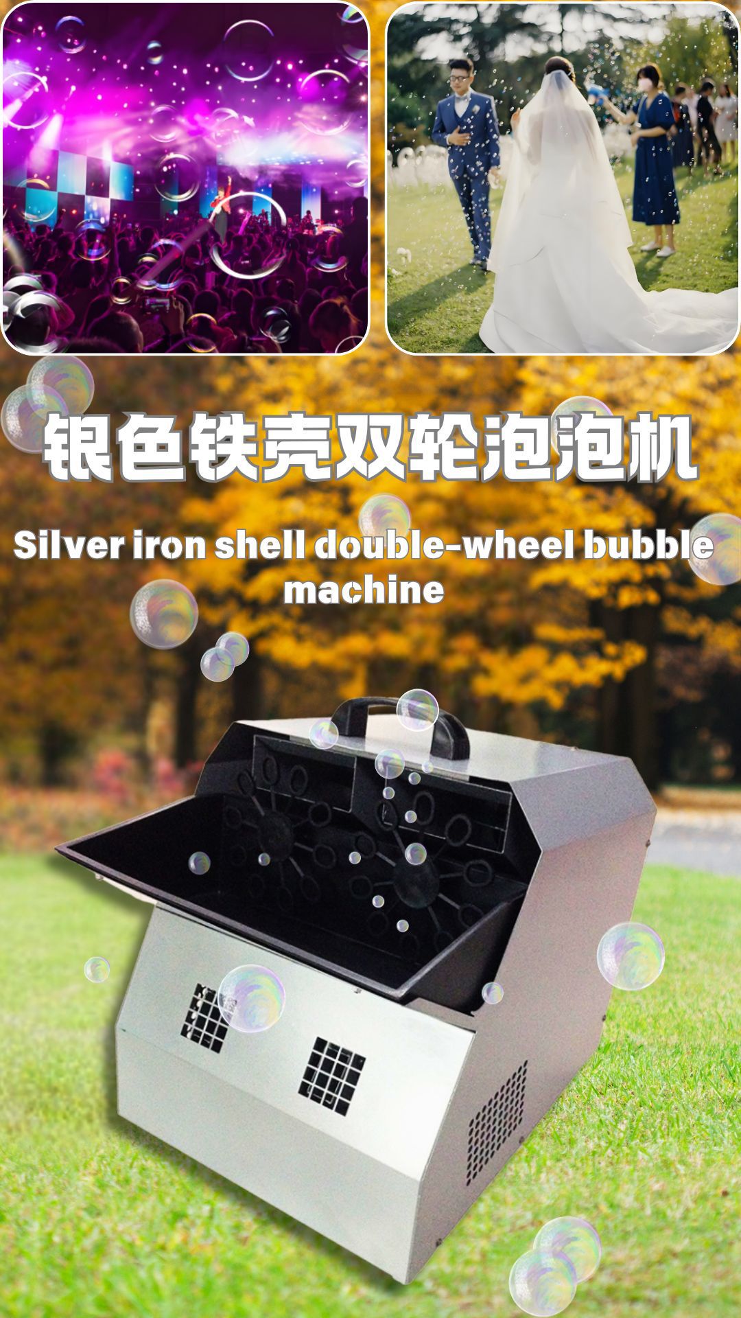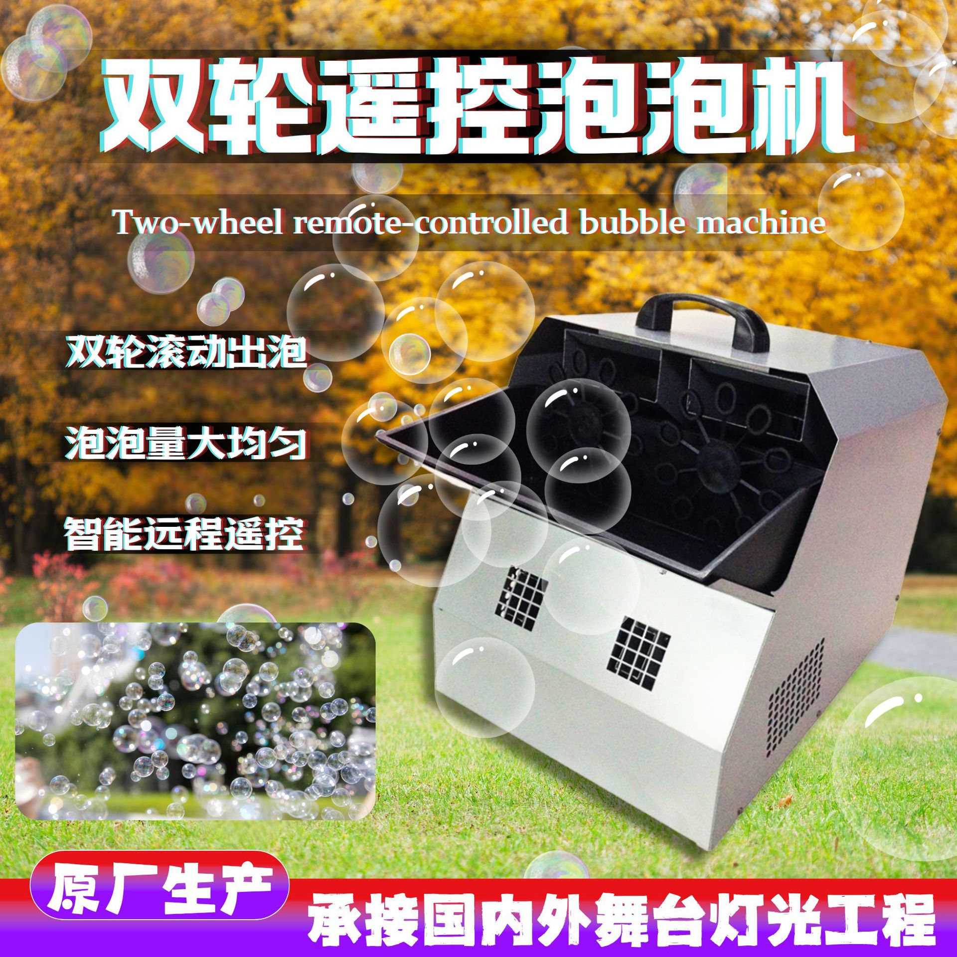 완전 자동 이중 휠 무대 버블 머신, 유치원 결혼식 분위기 연출, 상업용 대형 원격 제어 철제 버블 머신