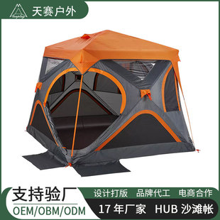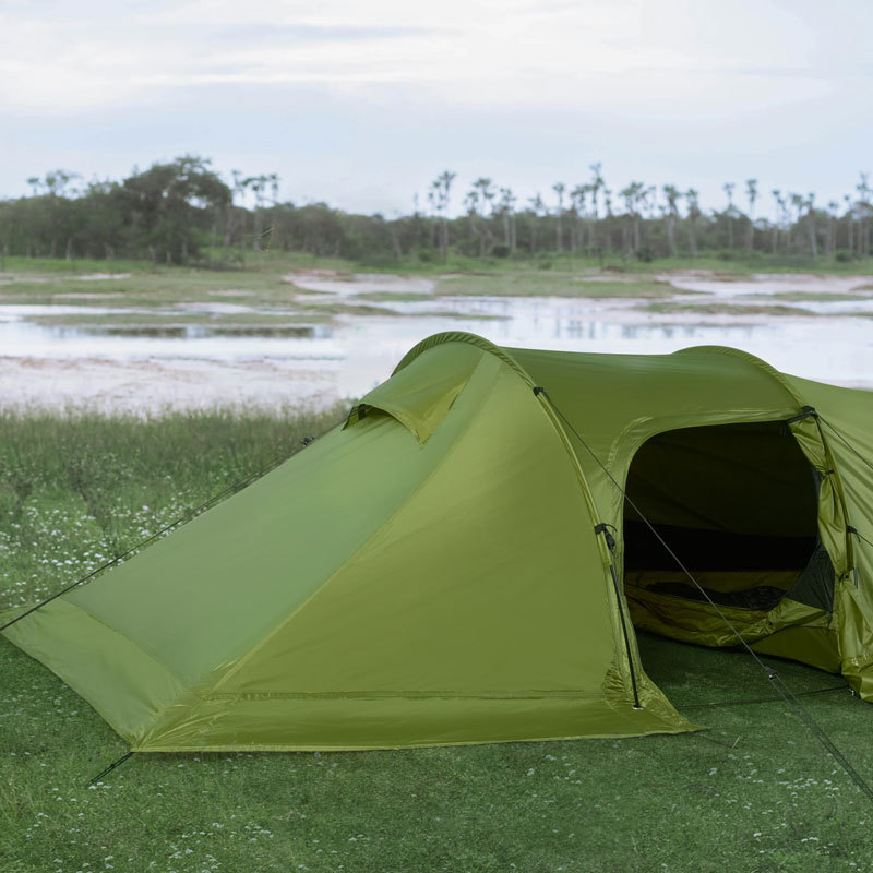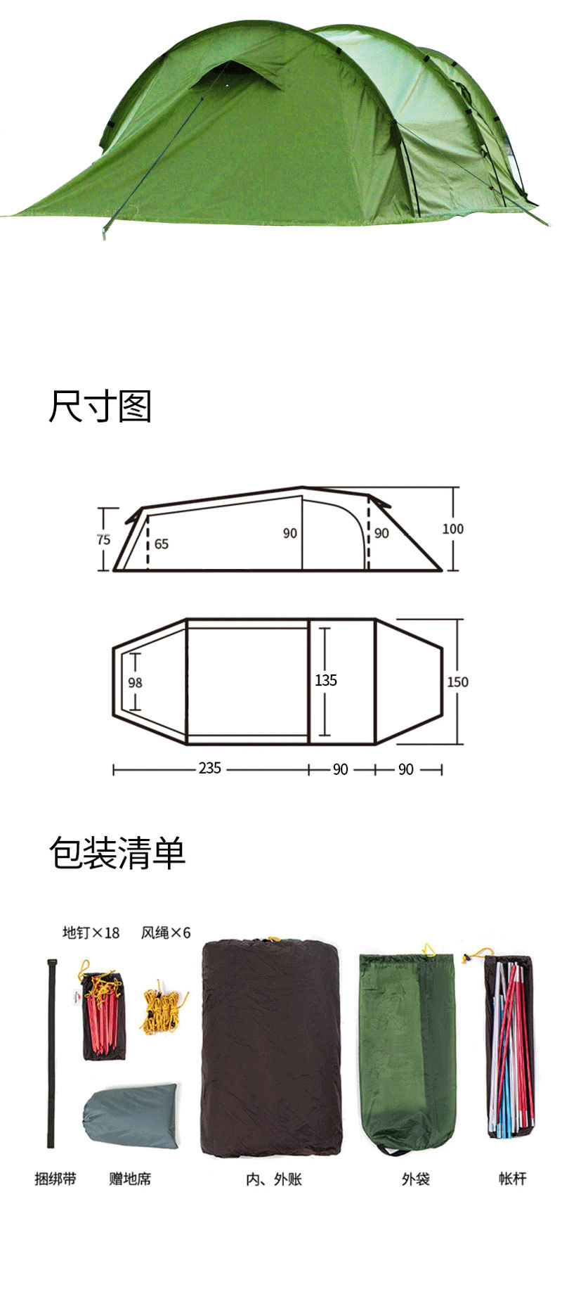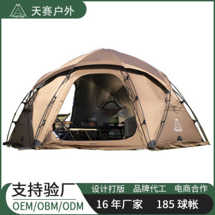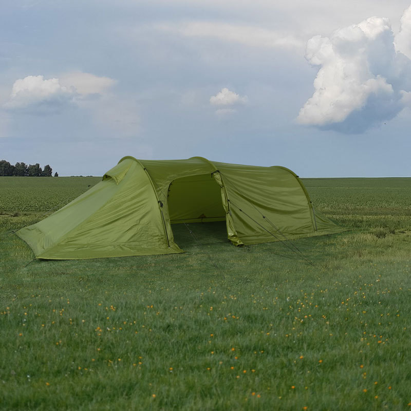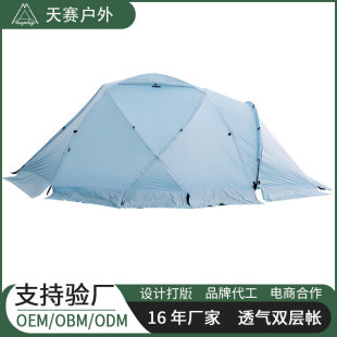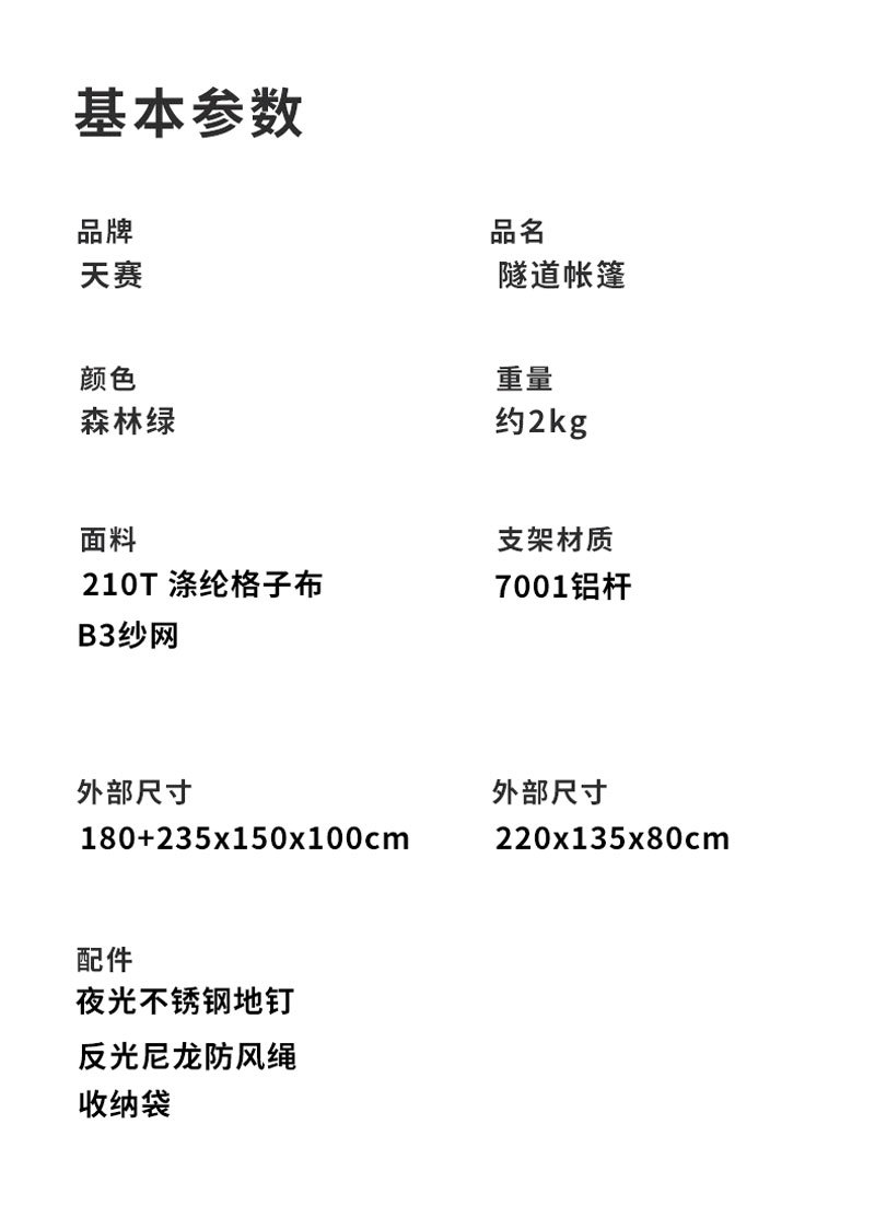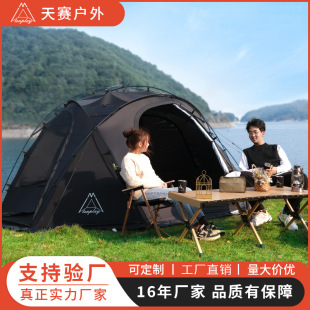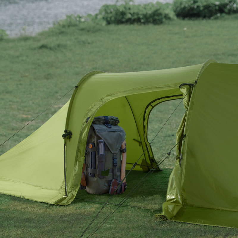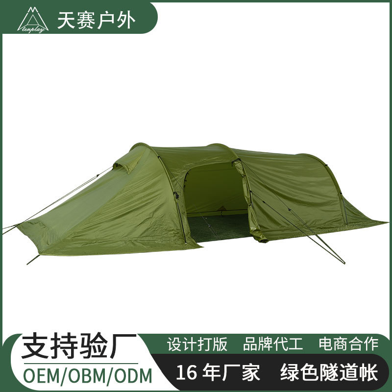 【닝보 현지】터널형 텐트 1룸1거실 210T 폴리에스터 격자무늬 천 이중층 3-4인용 캠핑 터널형 텐트
