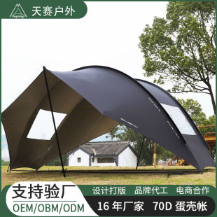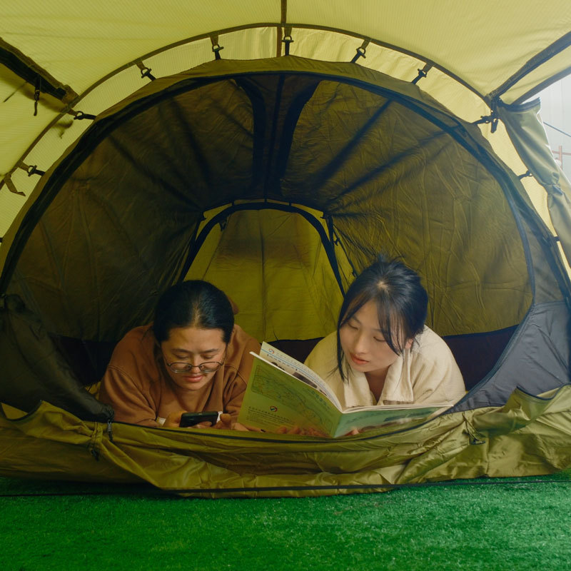 【닝보 현지】터널형 텐트 1룸1거실 210T 폴리에스터 격자무늬 천 이중층 3-4인용 캠핑 터널형 텐트스토어 가기