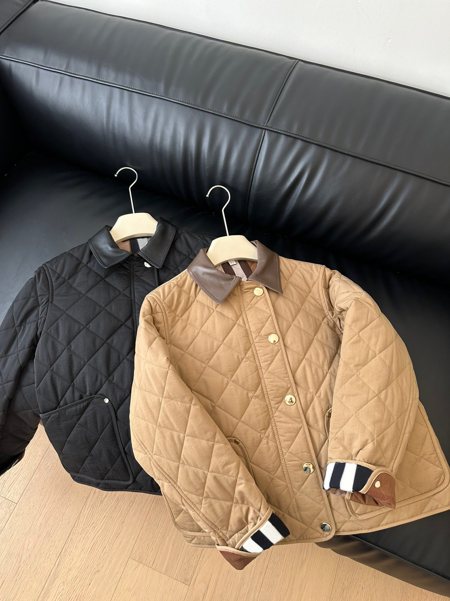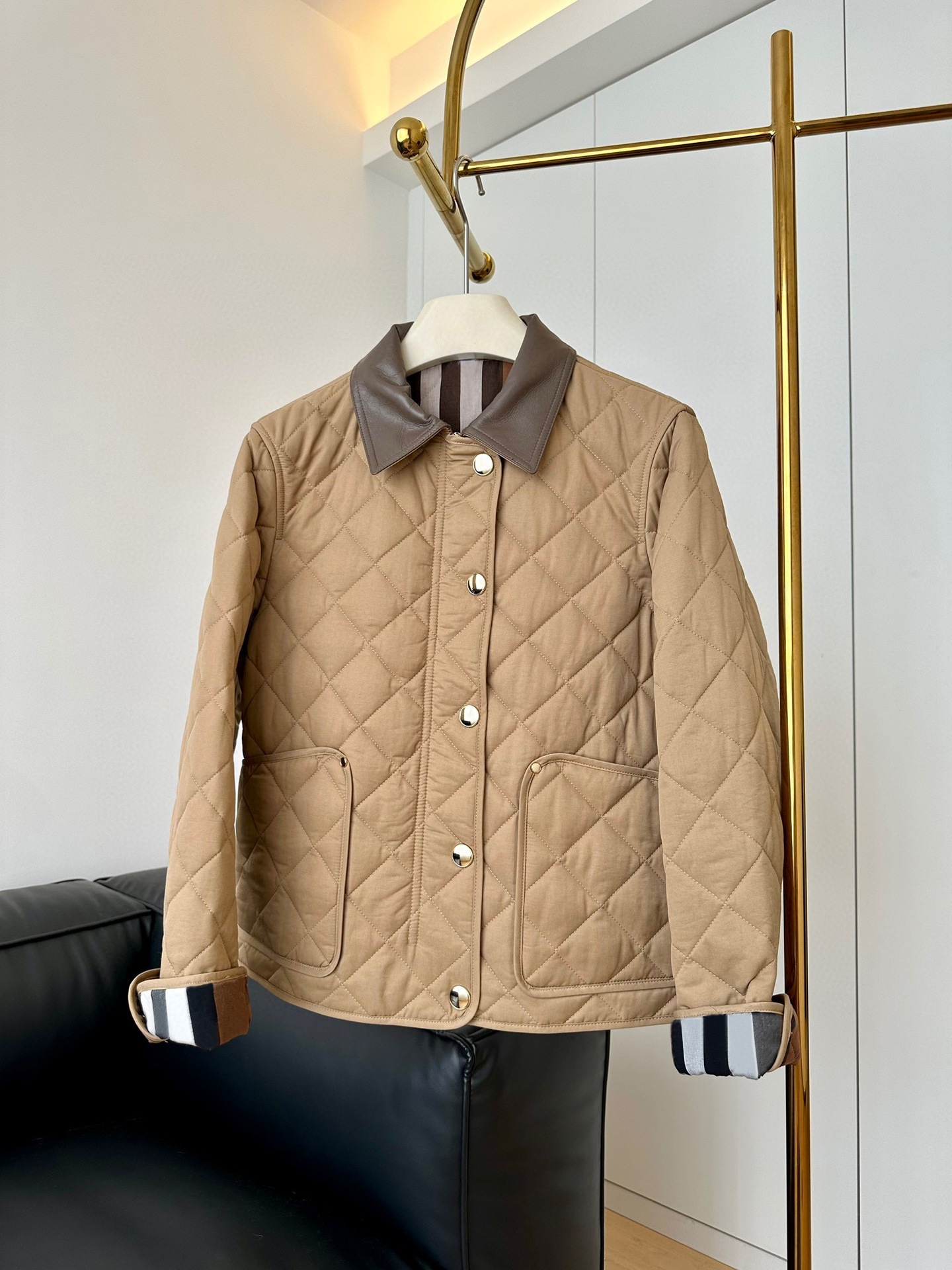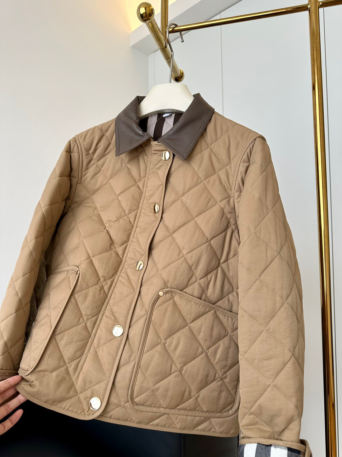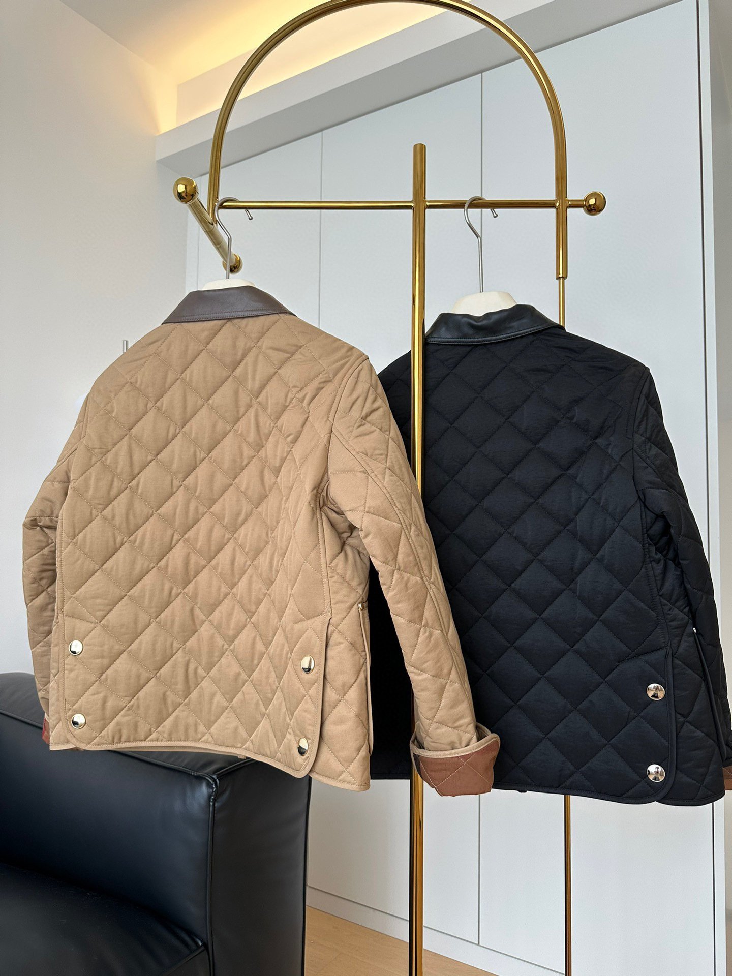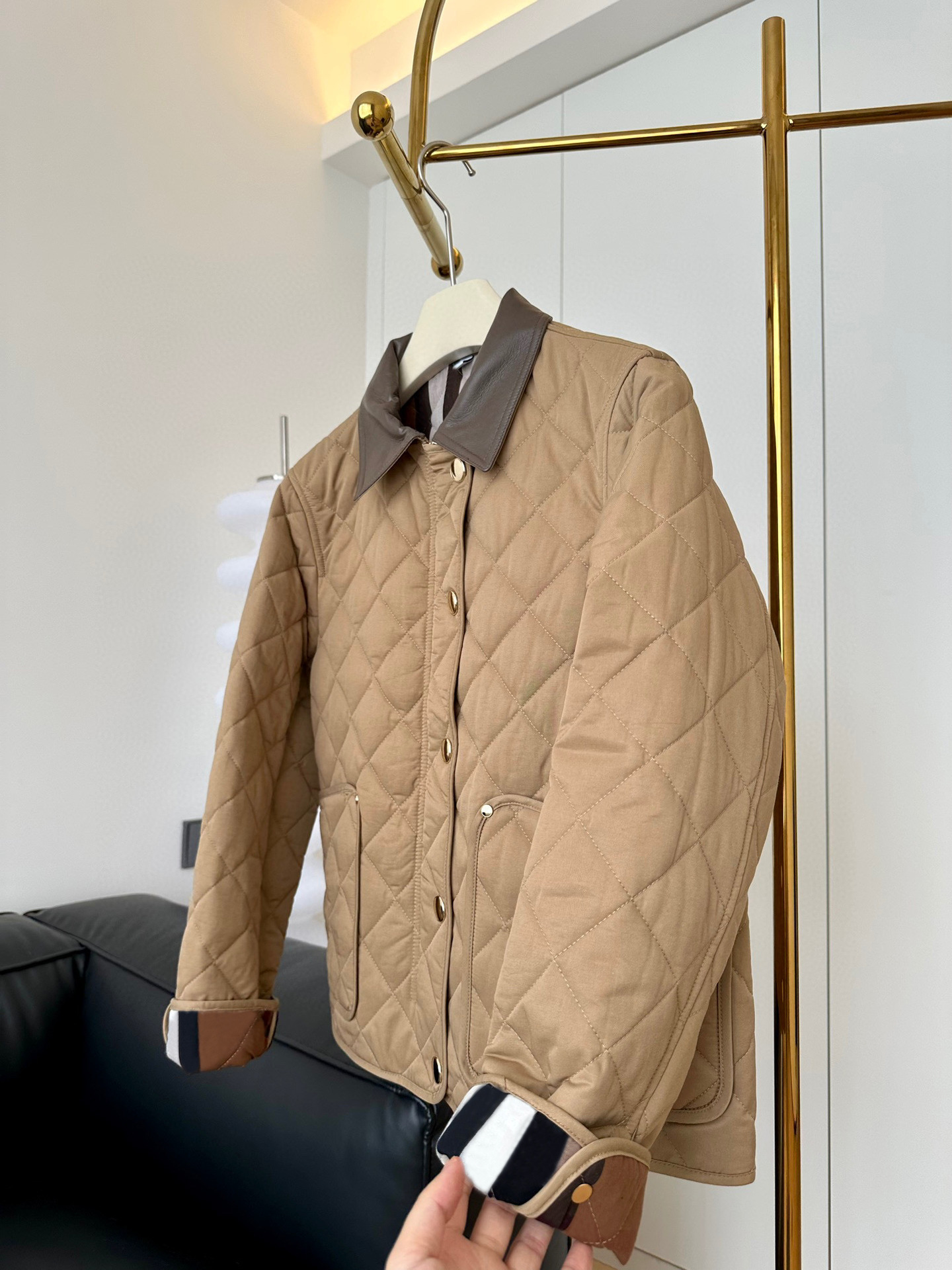유럽풍 여성복 가을 겨울 신상품 다이아몬드 가죽 칼라 체크무늬 재킷 패딩 코트스토어 가기