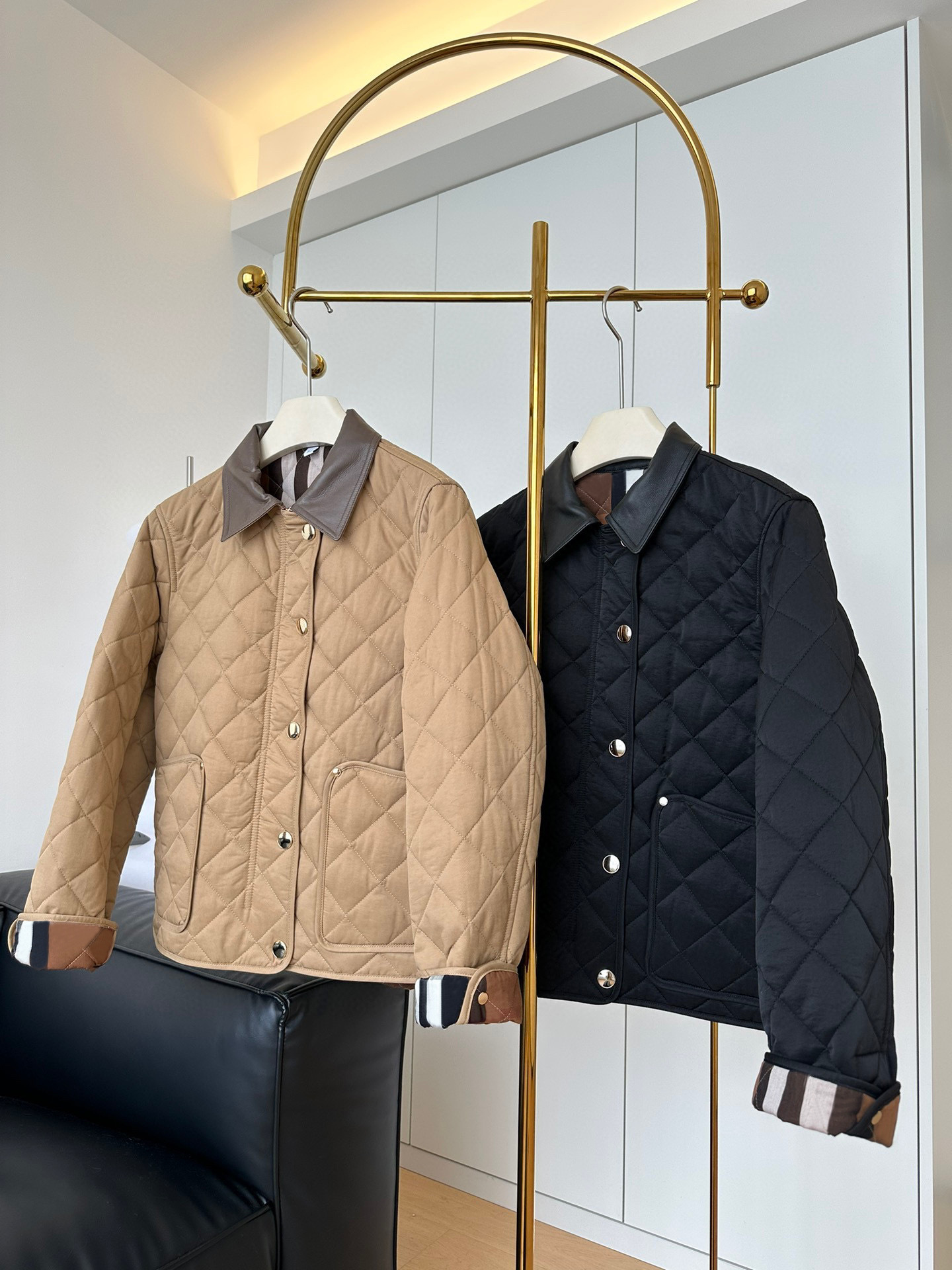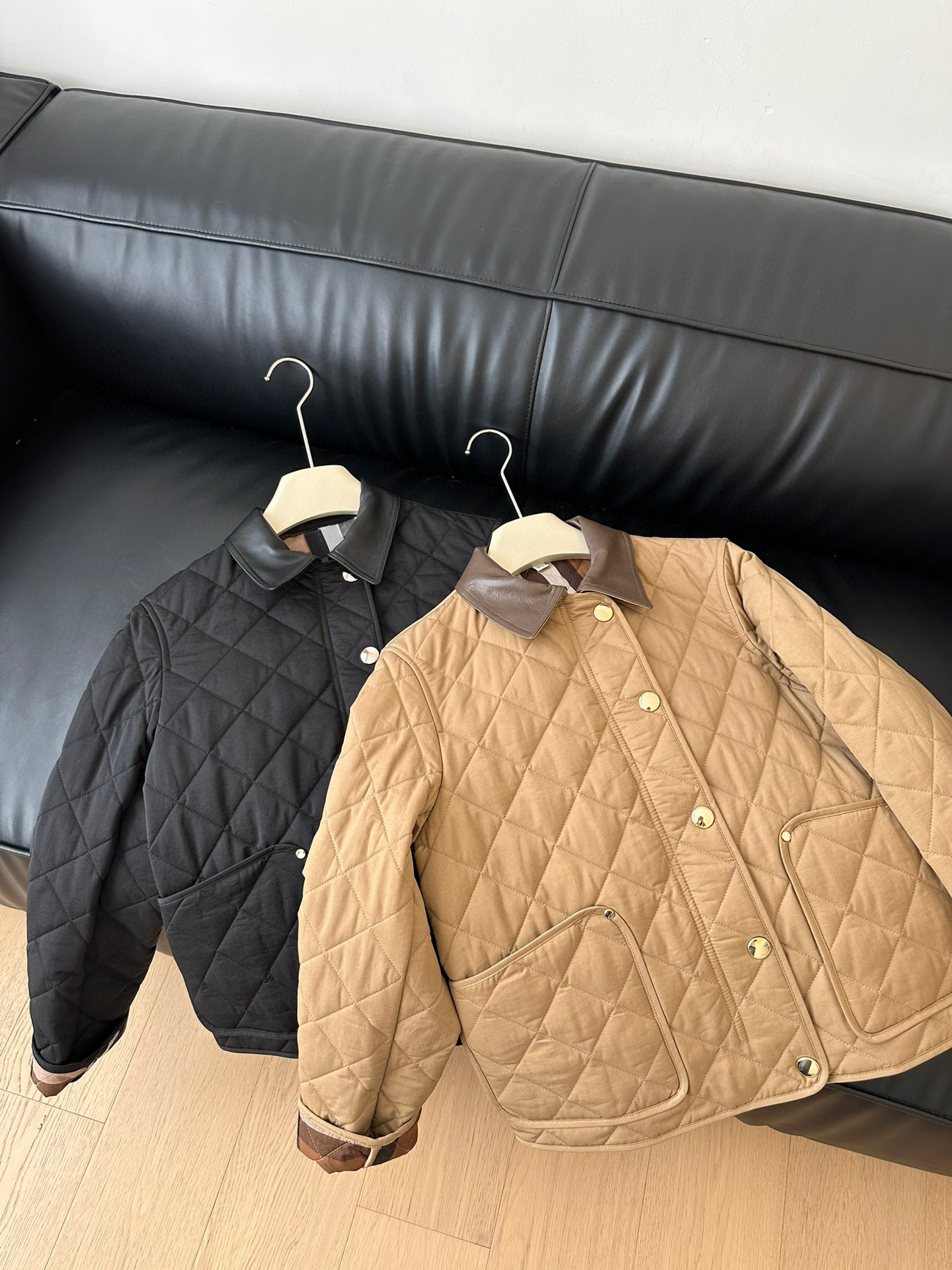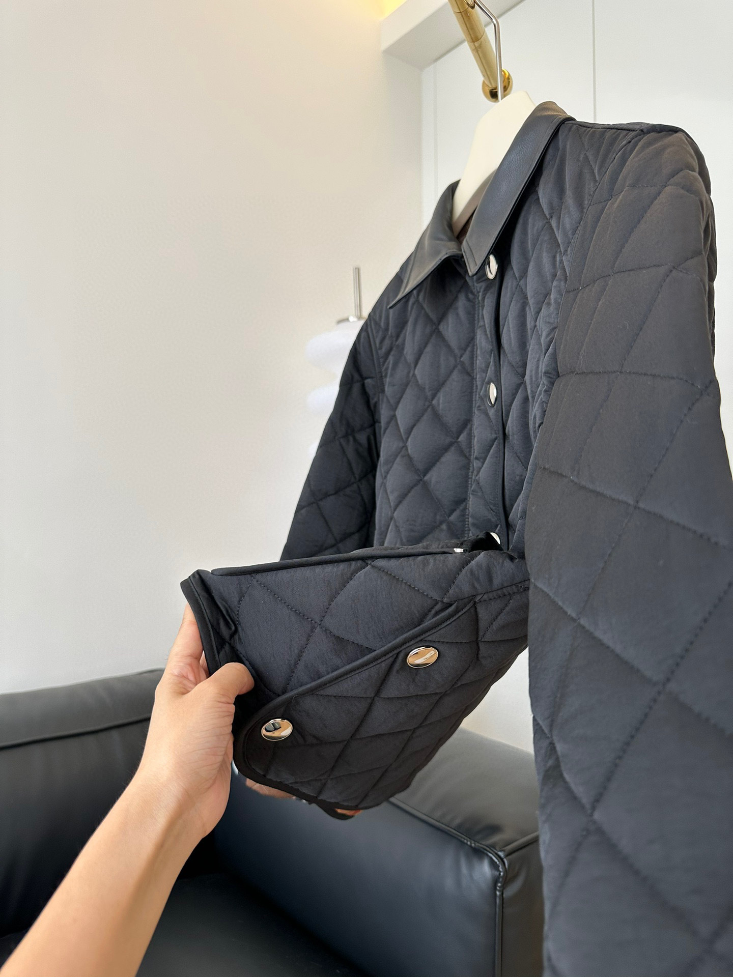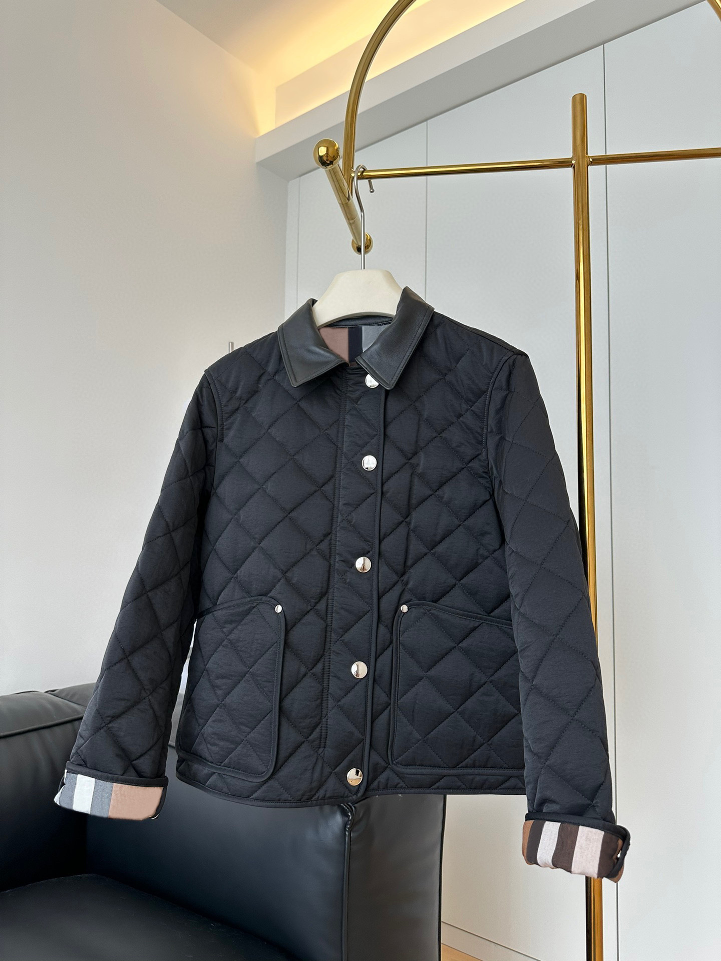 유럽풍 여성복 가을 겨울 신상품 다이아몬드 가죽 칼라 체크무늬 재킷 패딩 코트스토어 가기