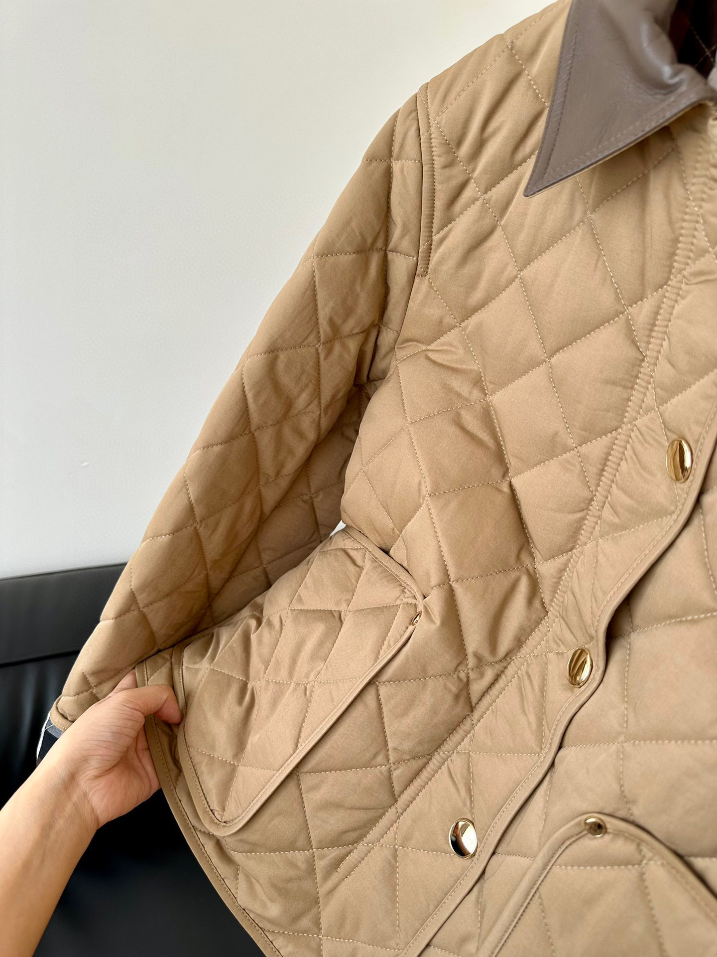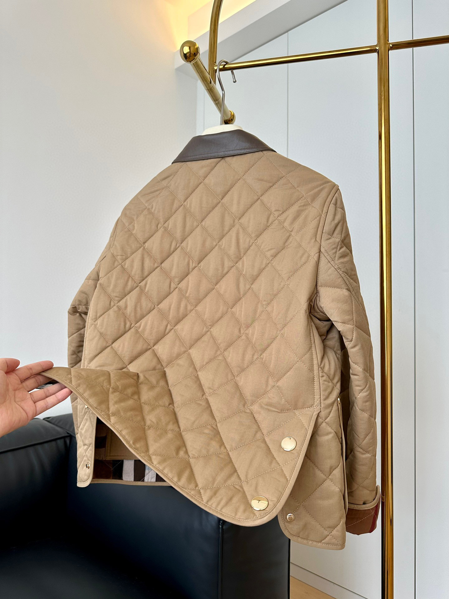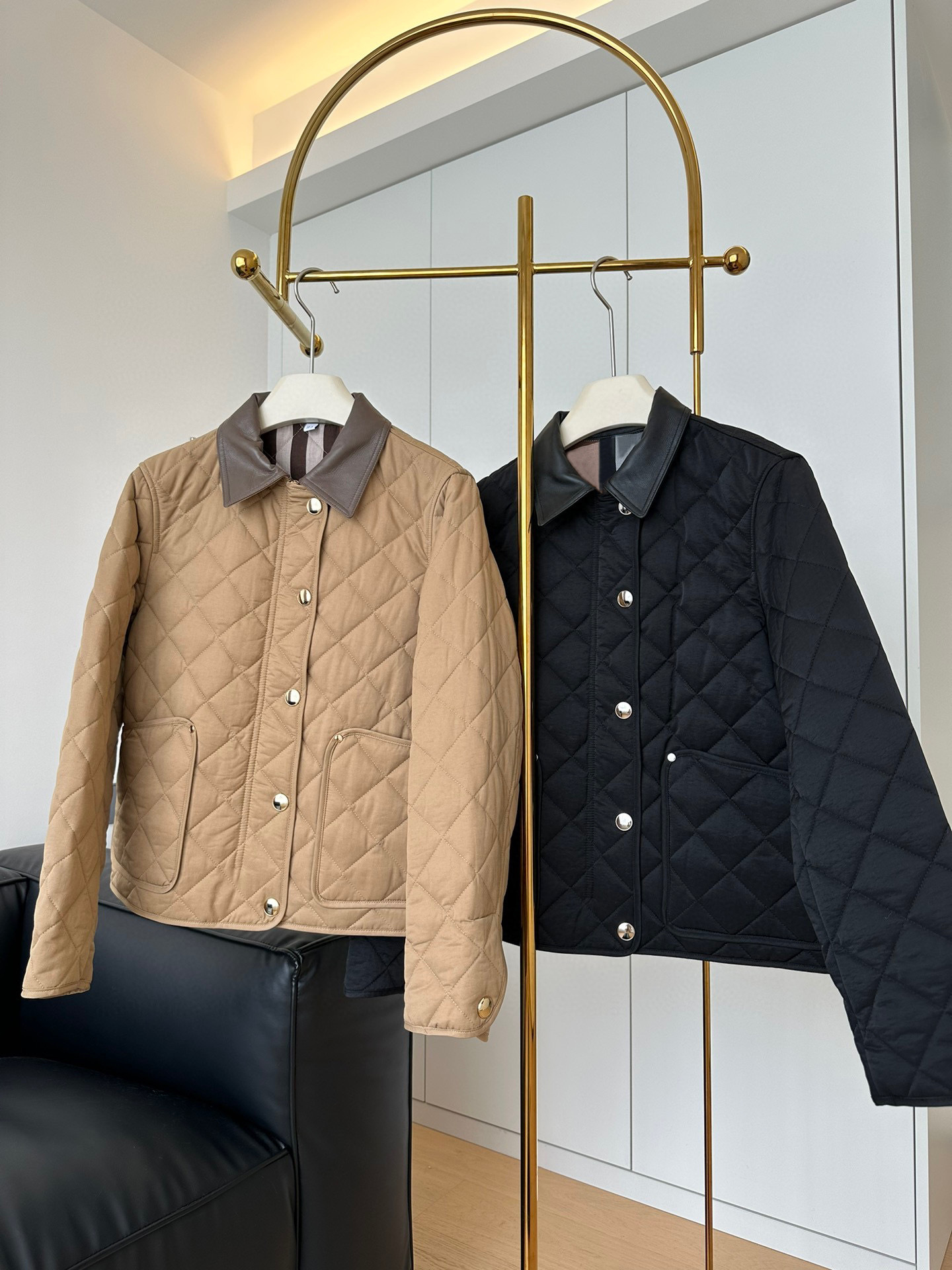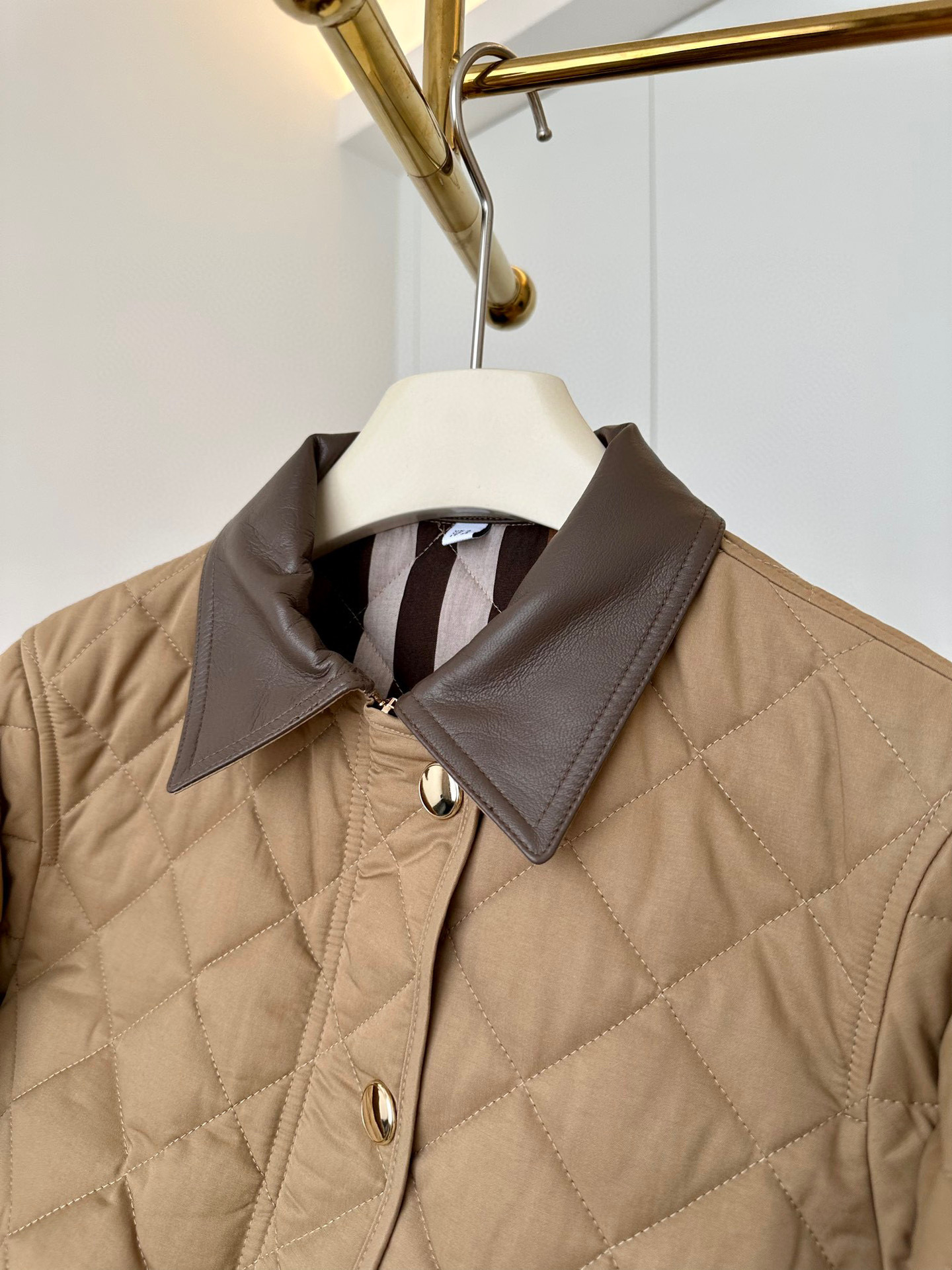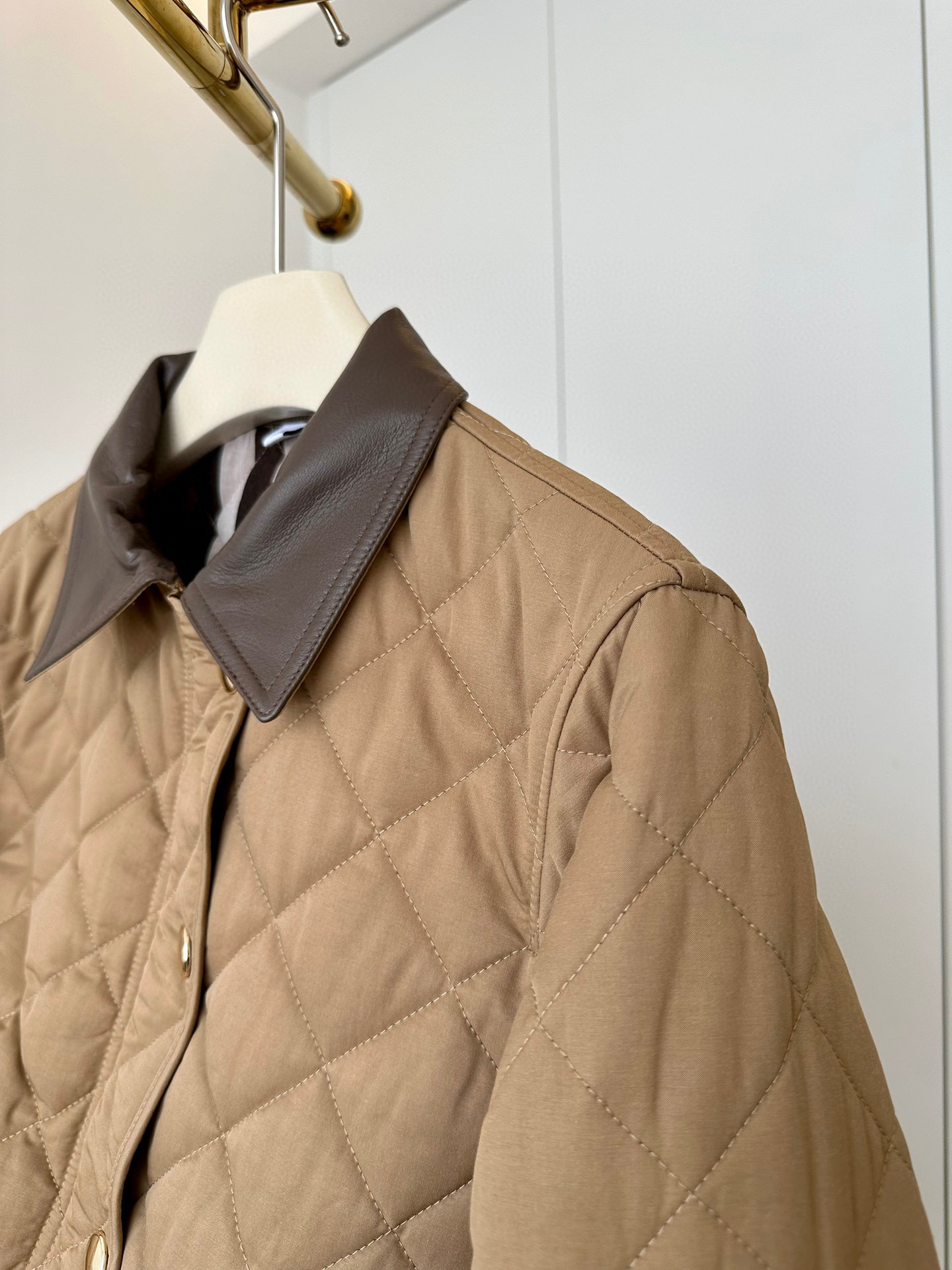 유럽풍 여성복 가을 겨울 신상품 다이아몬드 가죽 칼라 체크무늬 재킷 패딩 코트스토어 가기