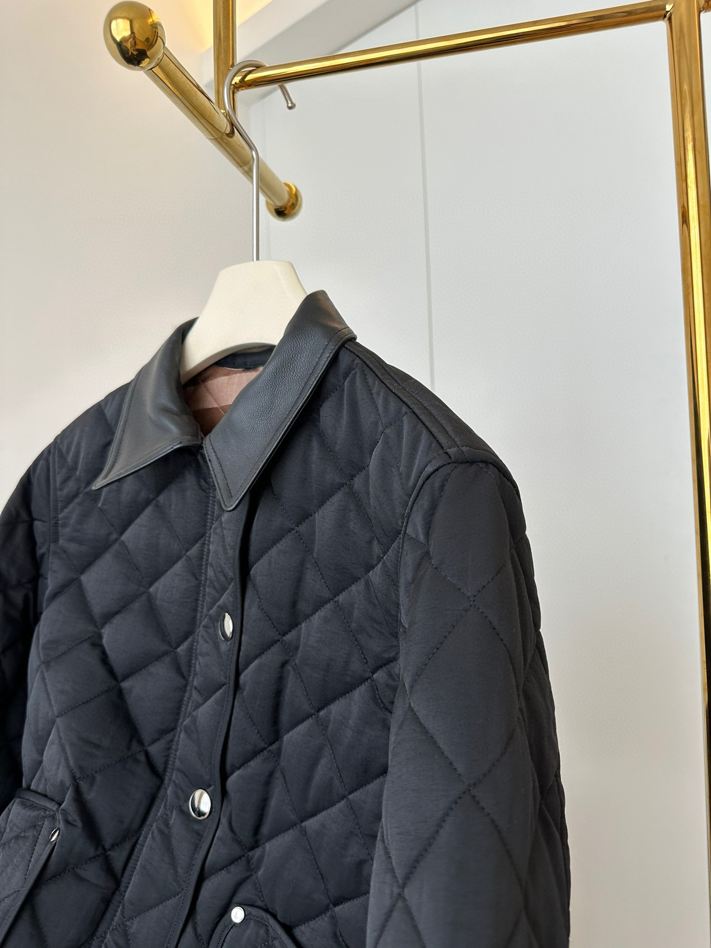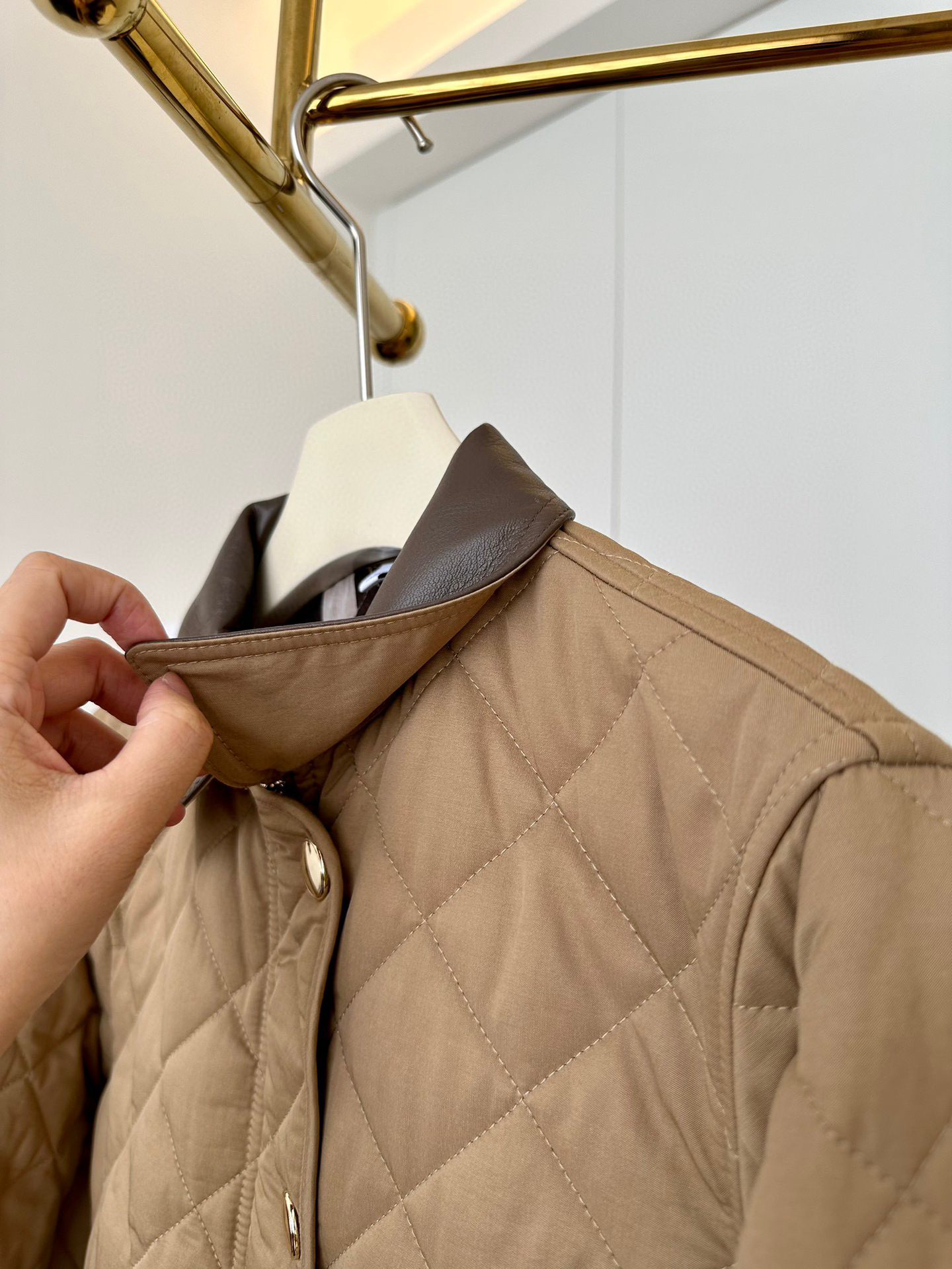 유럽풍 여성복 가을 겨울 신상품 다이아몬드 가죽 칼라 체크무늬 재킷 패딩 코트
