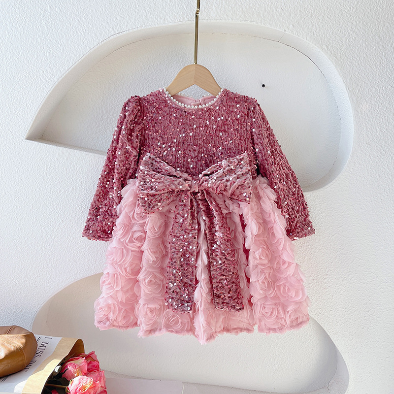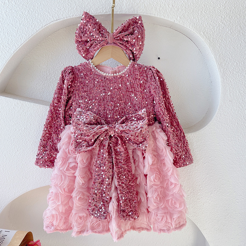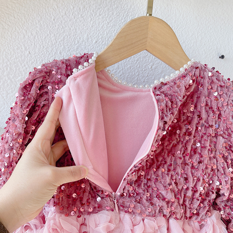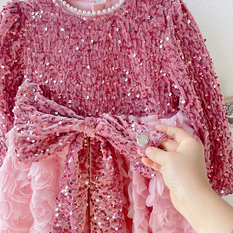 소녀 서양식 기모 원피스 2023 겨울 어린이 장미 공주 원피스 소녀의 새 원피스스토어 가기