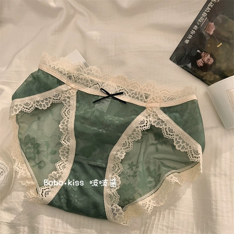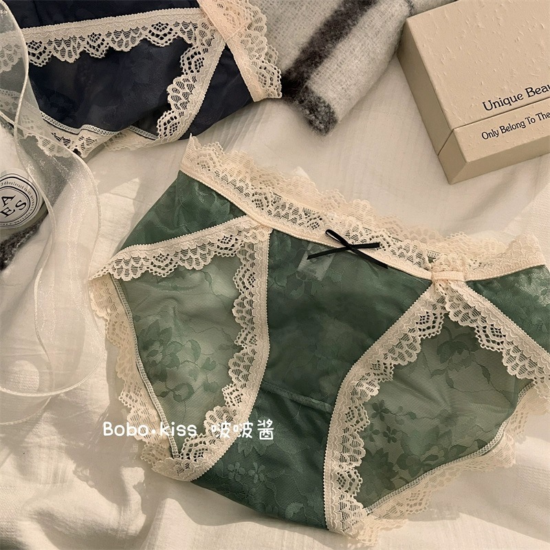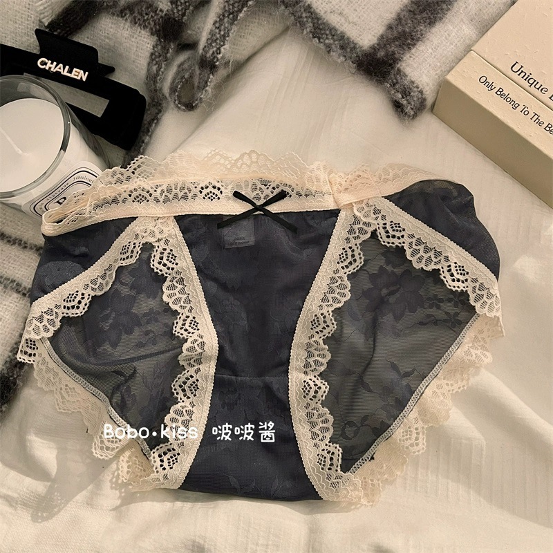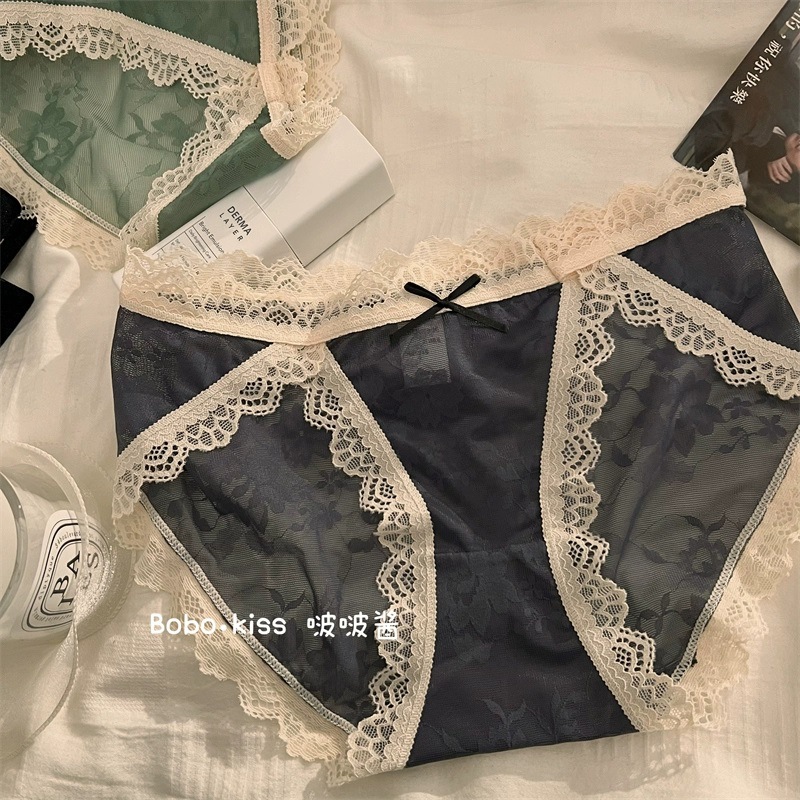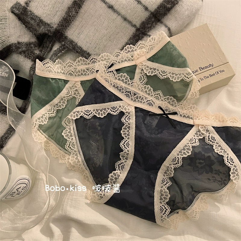 프랑스 스타일의 섹시한 높은 슬릿 레이스 속옷 소녀를위한 달콤한 순수한 낮은 허리 엉덩이 감싼 코튼 가랑이 여성용 브리프스토어 가기