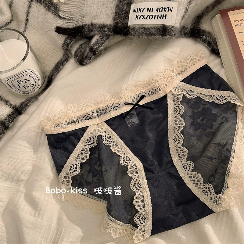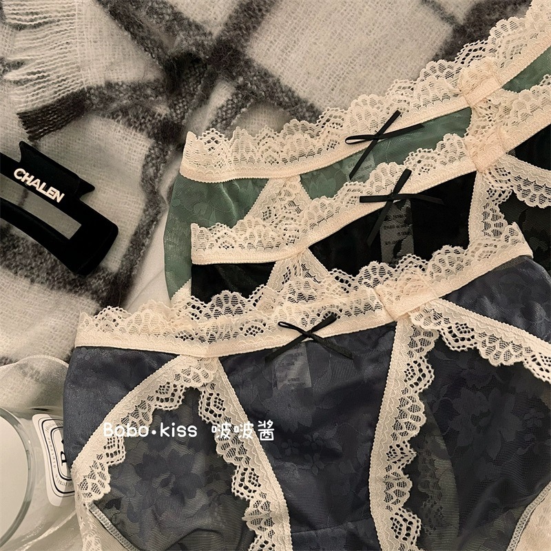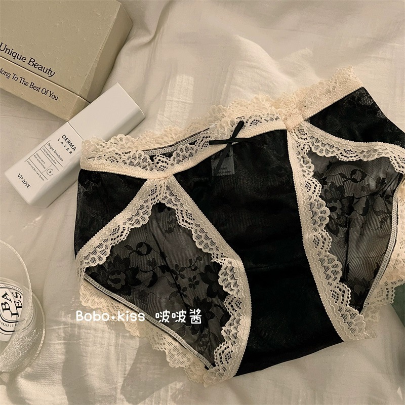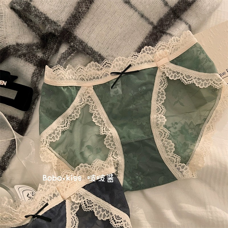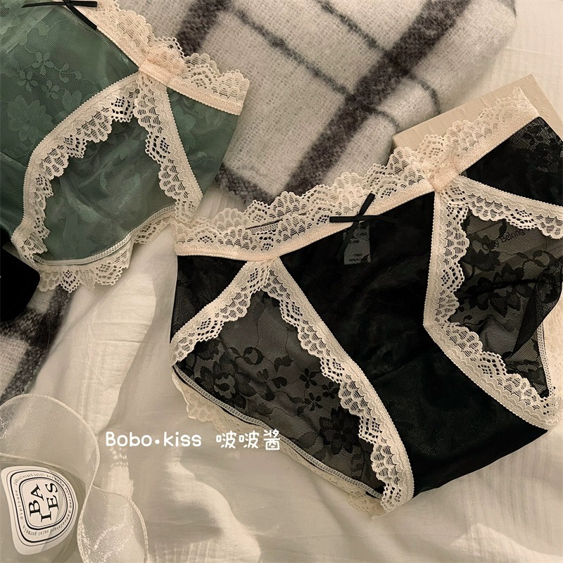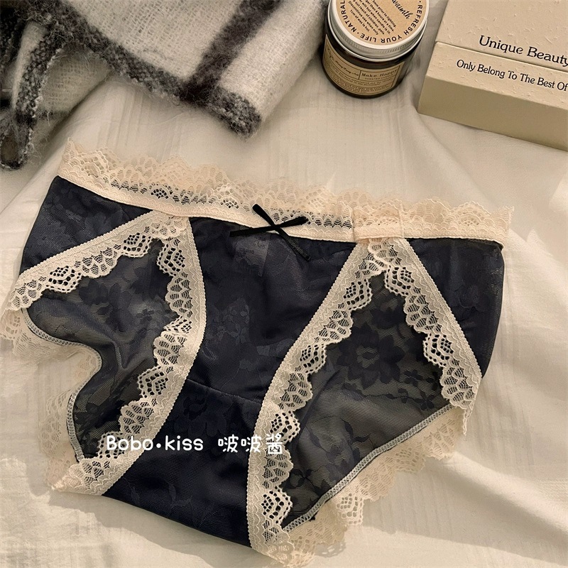 프랑스 스타일의 섹시한 높은 슬릿 레이스 속옷 소녀를위한 달콤한 순수한 낮은 허리 엉덩이 감싼 코튼 가랑이 여성용 브리프스토어 가기