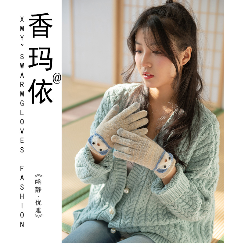 모직 장갑 여성의 겨울 따뜻한 방한식 터치 스크린 겨울 여학생 자전거 타기 타기 한국 스타일스토어 가기