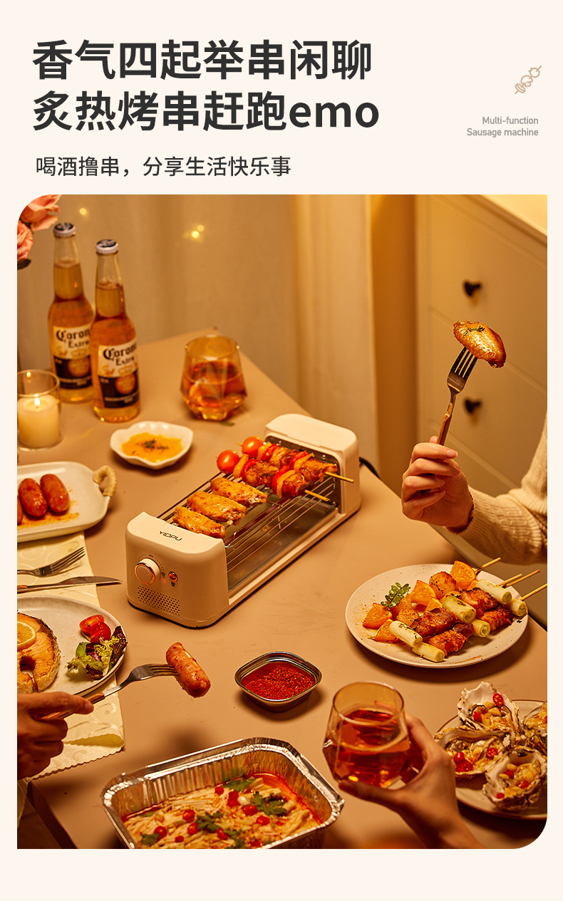 이데푸 자동 소형 가정용 소시지 구이기 핫도그 기계 기숙사 다기능 바베큐 기기 스마트