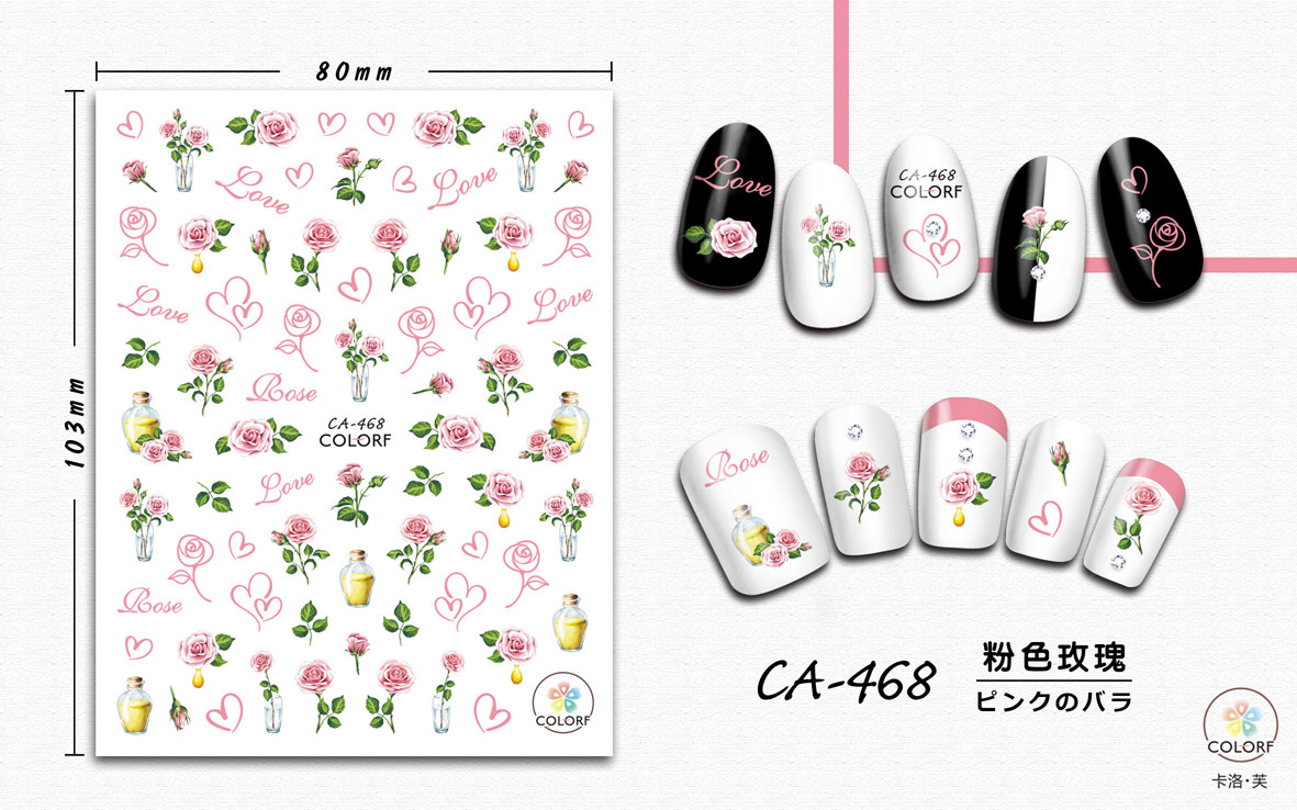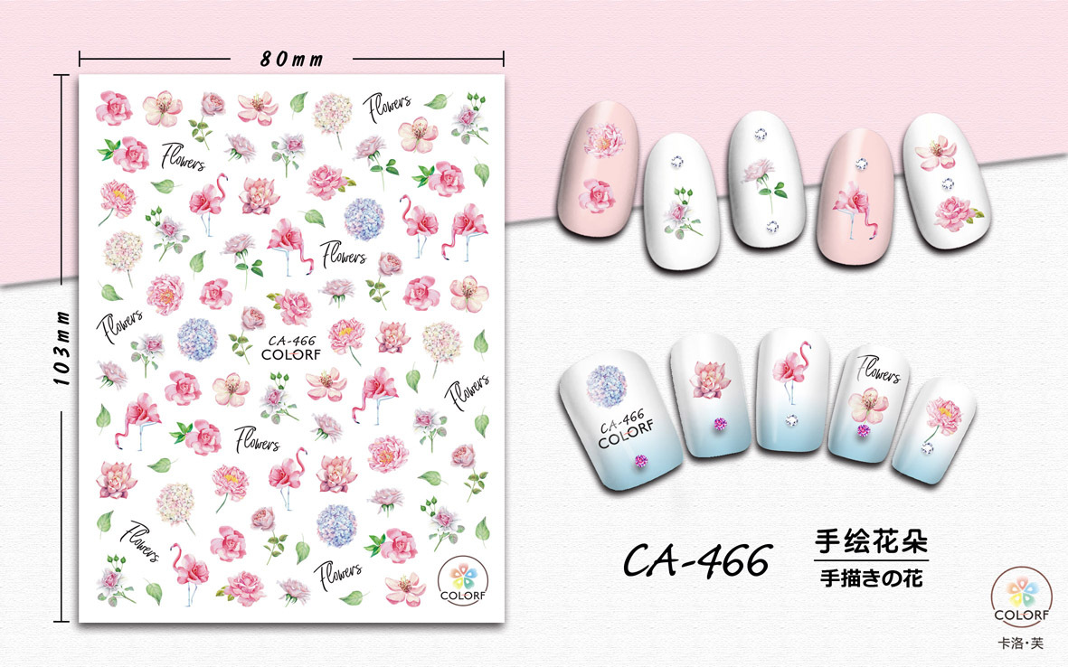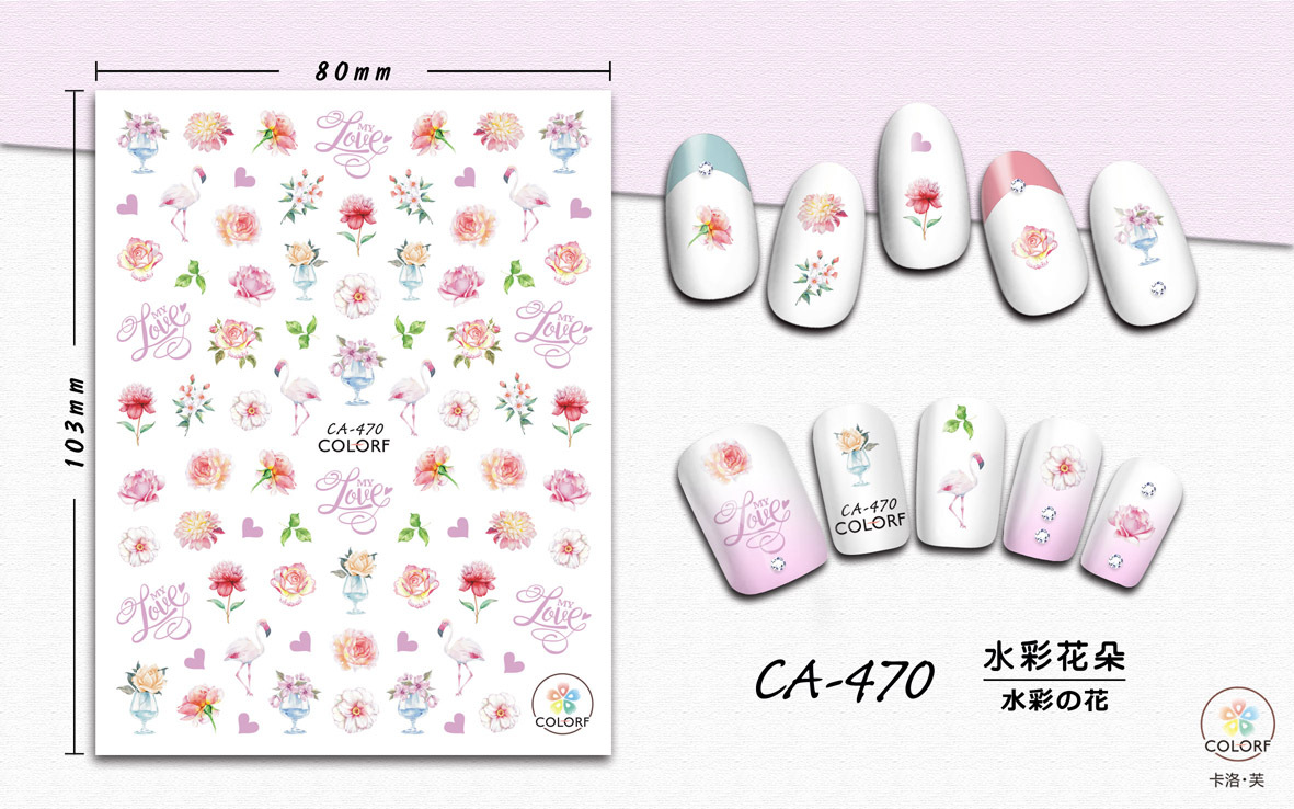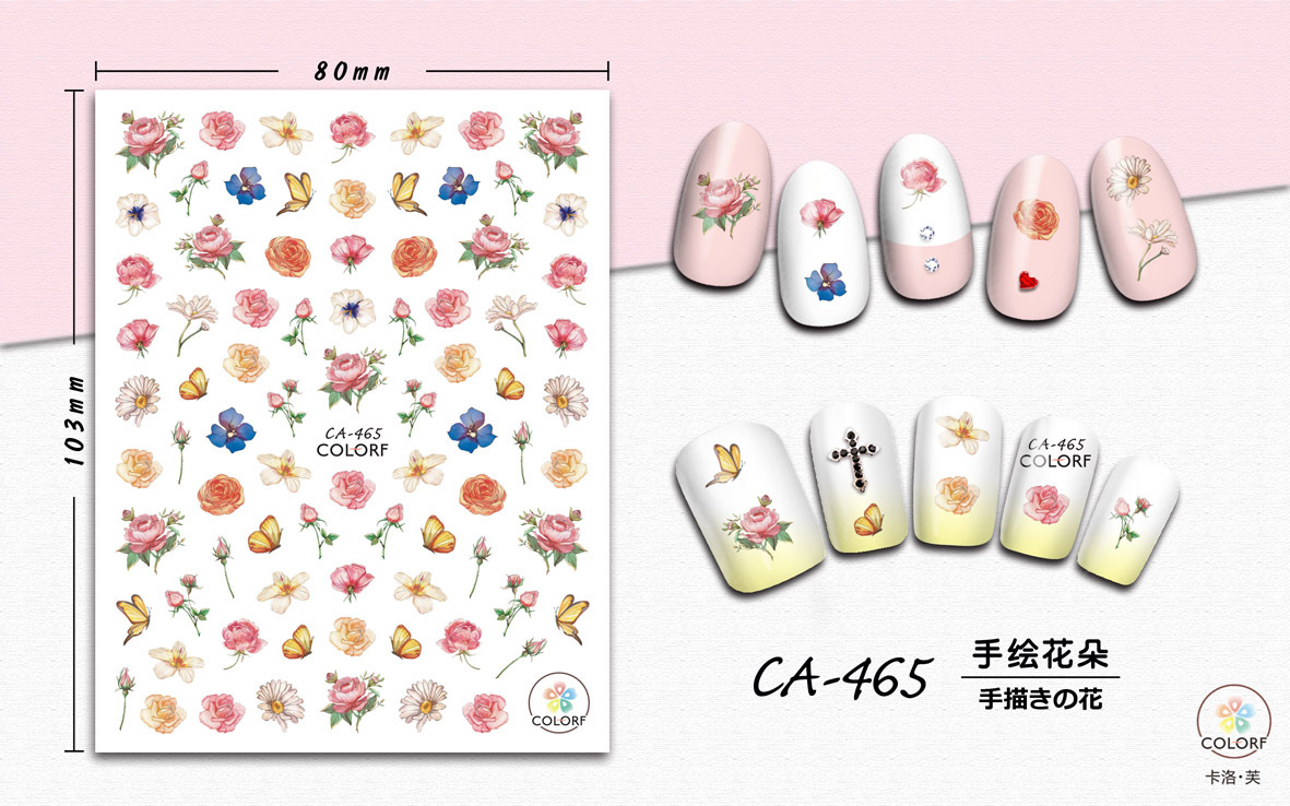 국경 간 무역 폭발 CA 시뮬레이션 네일 스티커 꽃 수채화 데이지 핑크 장미 뜨거운 도매 네일 스티커스토어 가기
