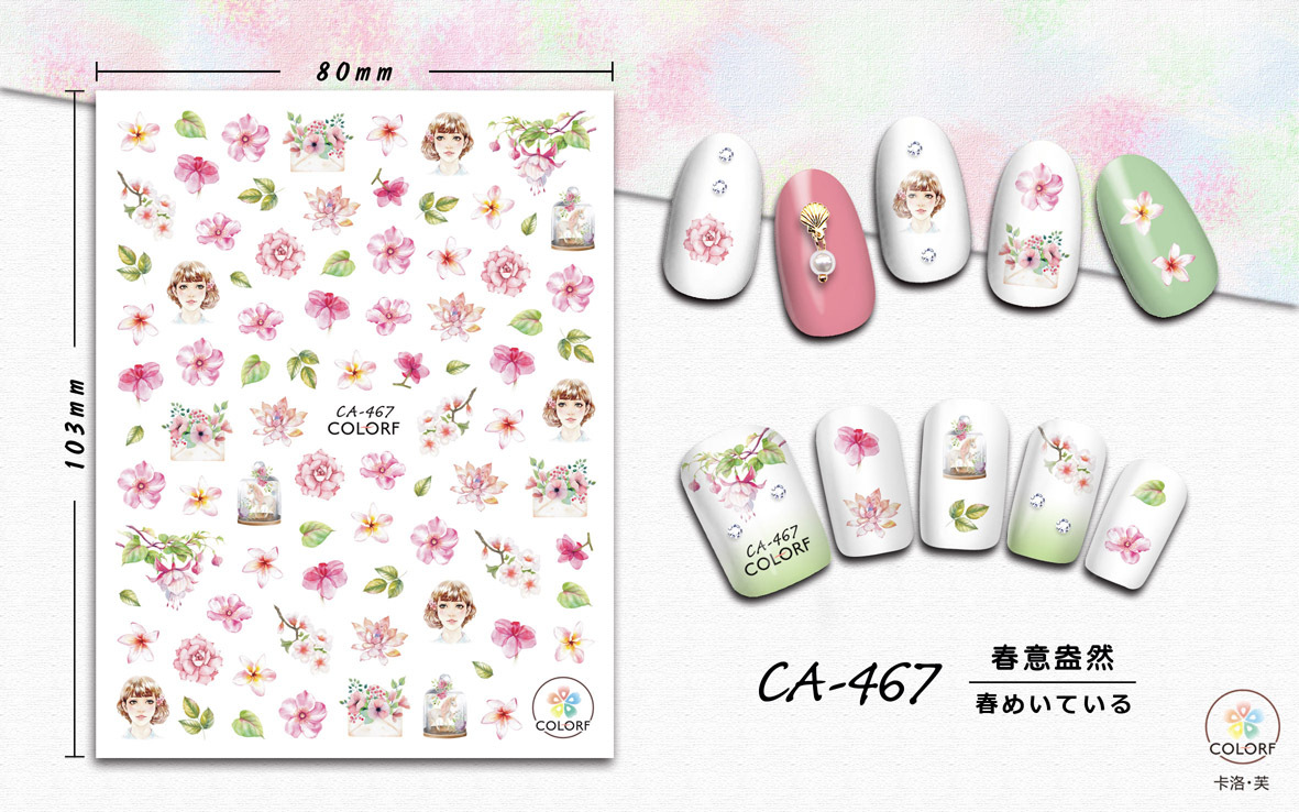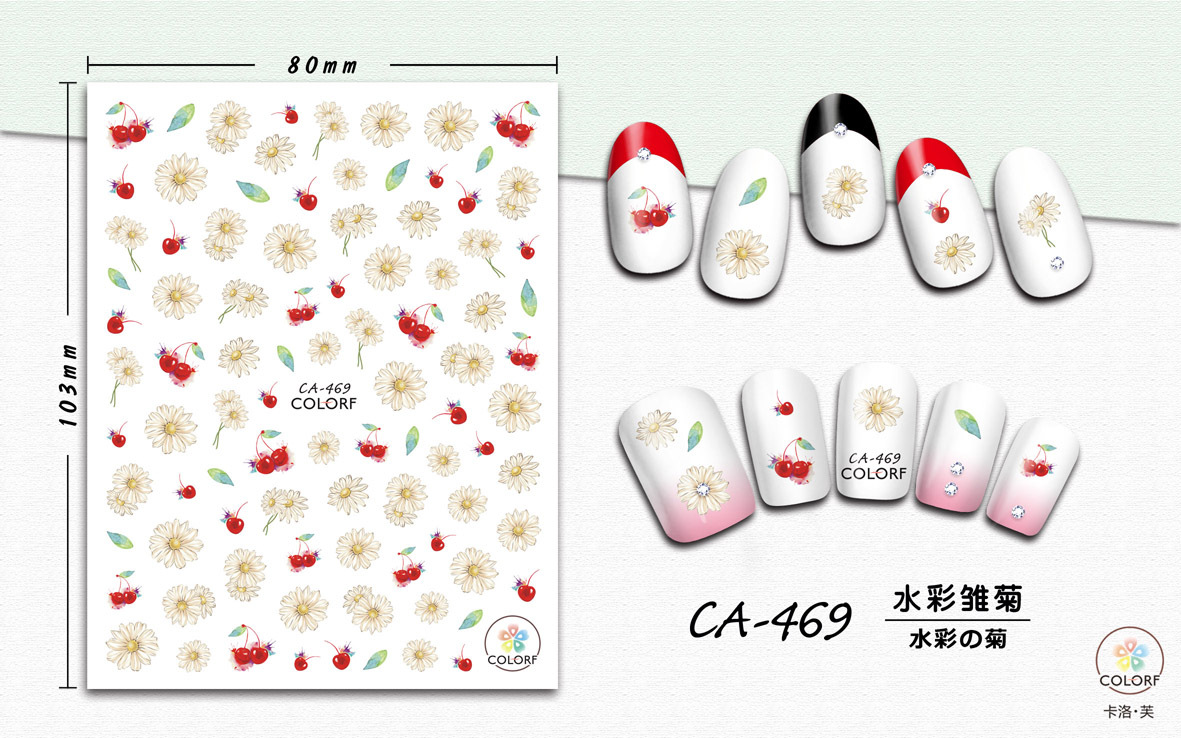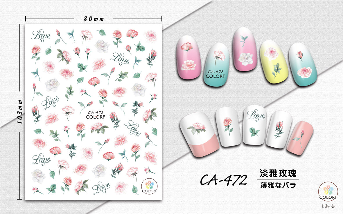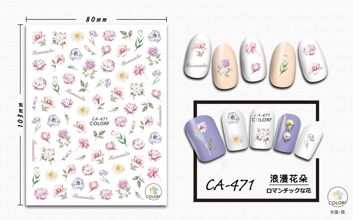 국경 간 무역 폭발 CA 시뮬레이션 네일 스티커 꽃 수채화 데이지 핑크 장미 뜨거운 도매 네일 스티커스토어 가기