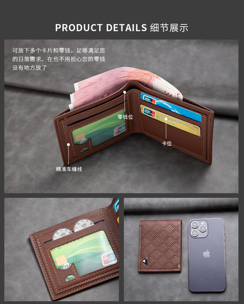 유럽과 미국의 국경 카드 가방 도매 남성 체크 지갑 초박형 2023 새로운 은행 카드 세트 남자의 짧은 지갑스토어 가기