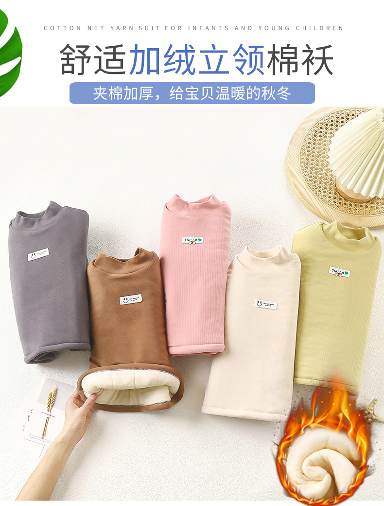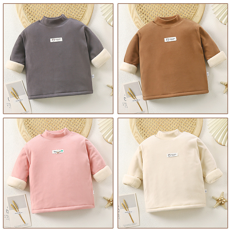 남아 여아 하프 터틀넥 보온 이너웨어 가을 겨울 2025 신상 아동용 벨벳 탑 유행 아동복스토어 가기