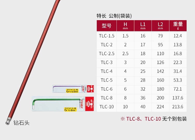 정품 일본 EIGHT Bailey 수입 컬러 단일 Allen 렌치 확장 긴 긴 다이아몬드 헤드 TLC-2.5
