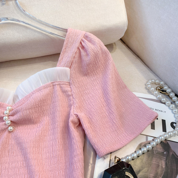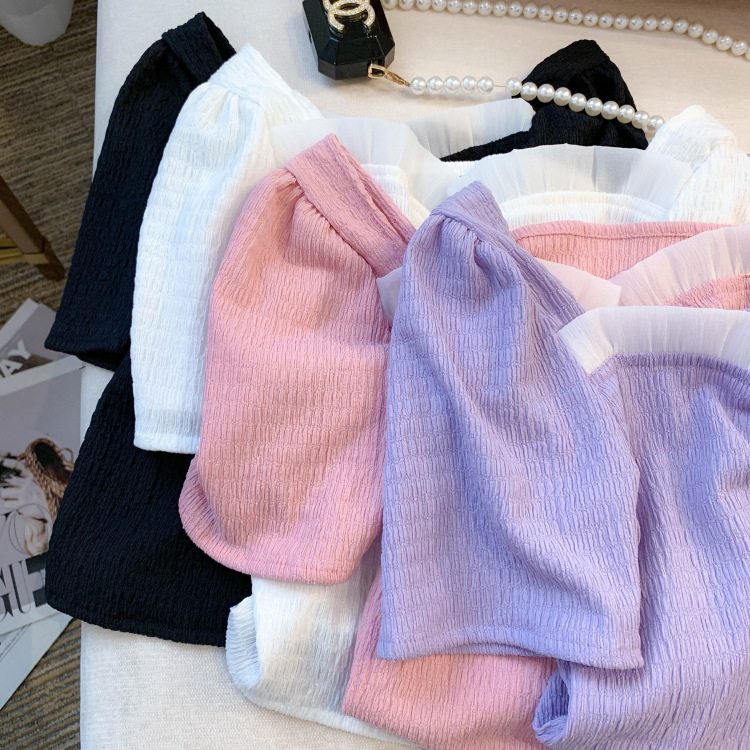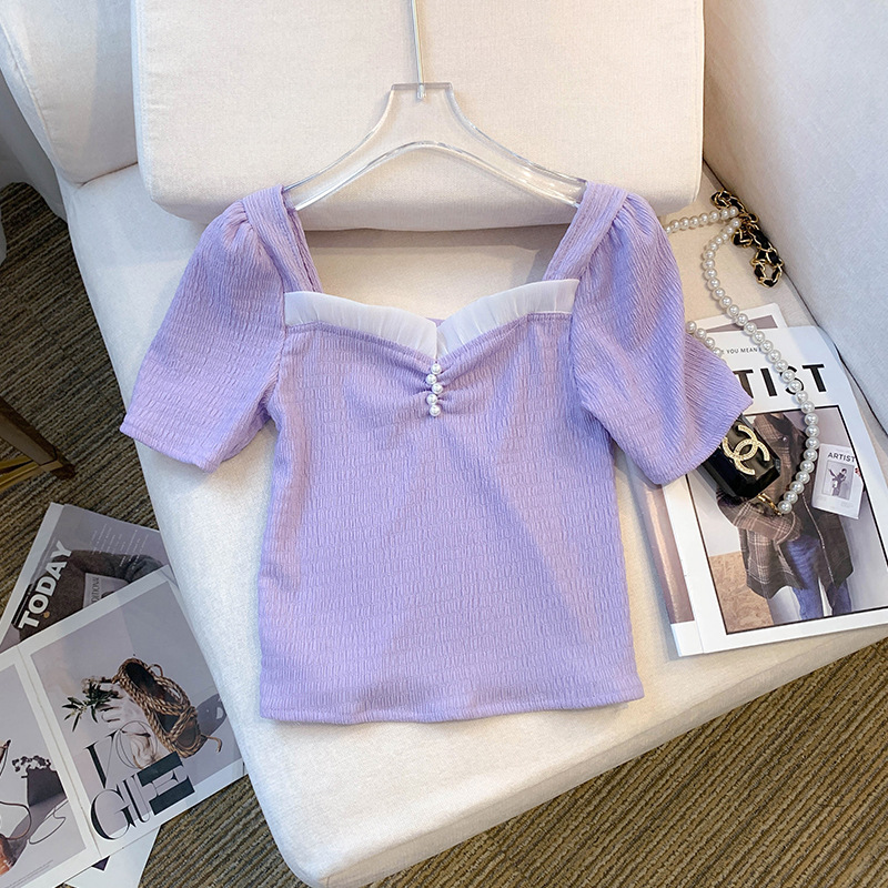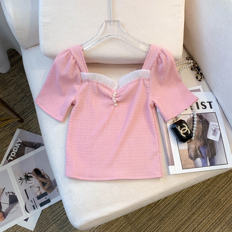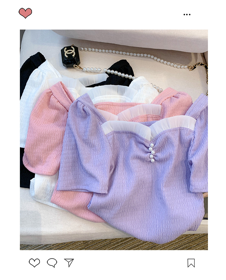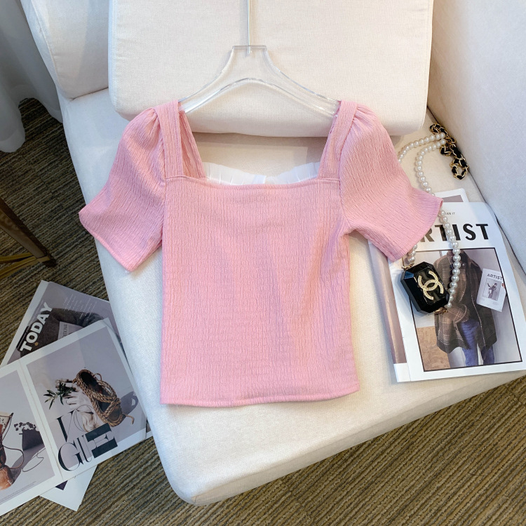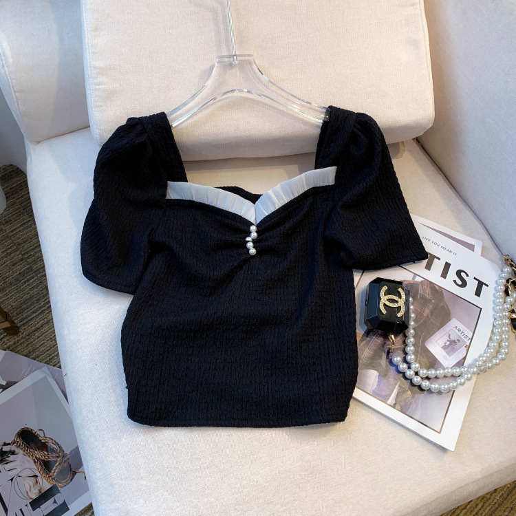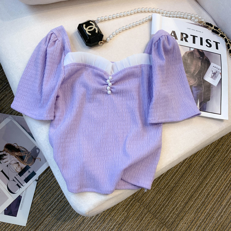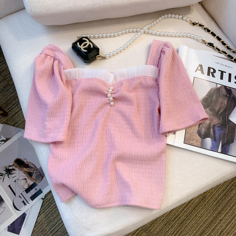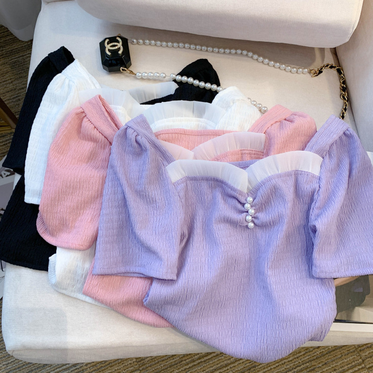 실제 촬영 재고 여름 새로운 인 디자인 짧은 셔츠 쉬폰 셔츠 상단 달콤한 작은 셔츠 여성용스토어 가기