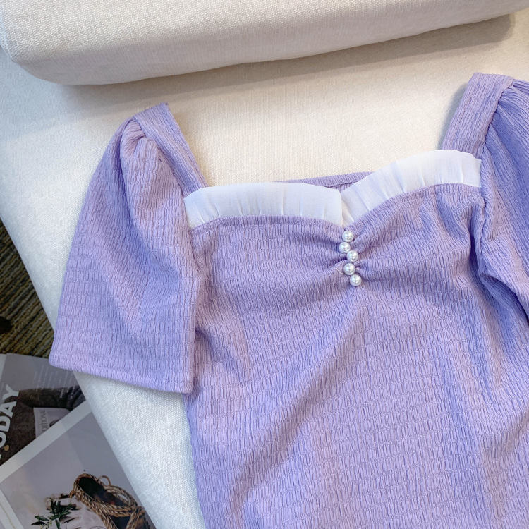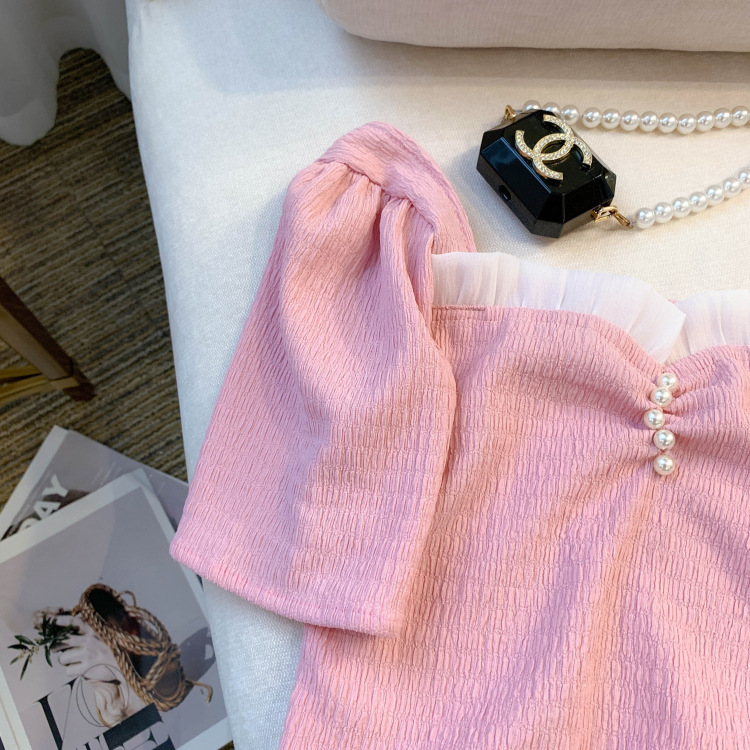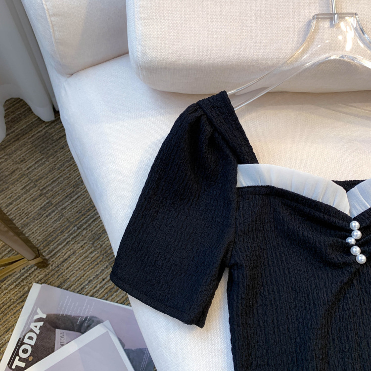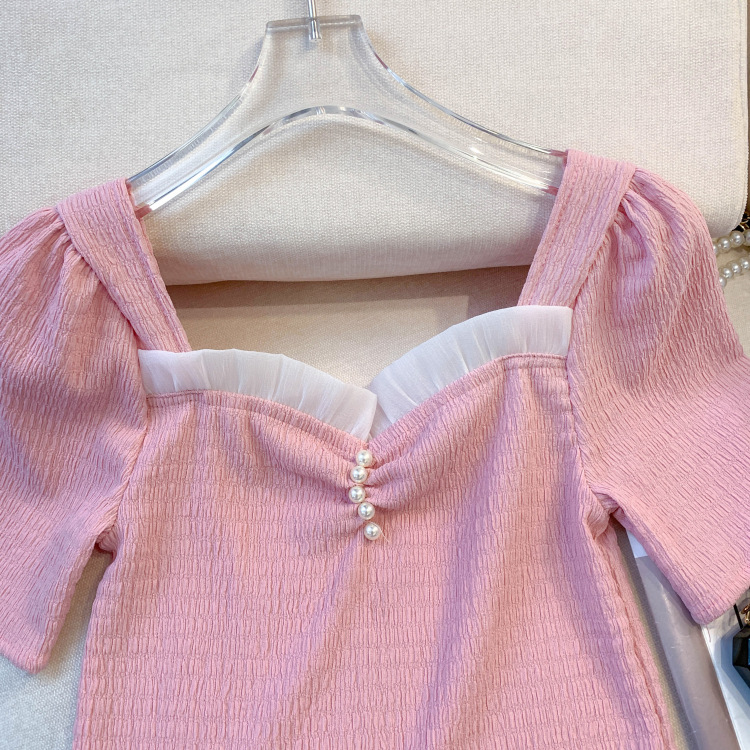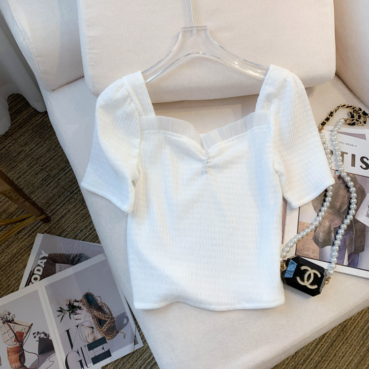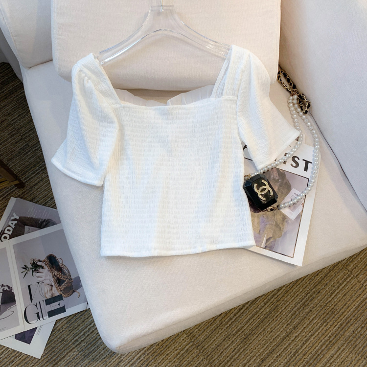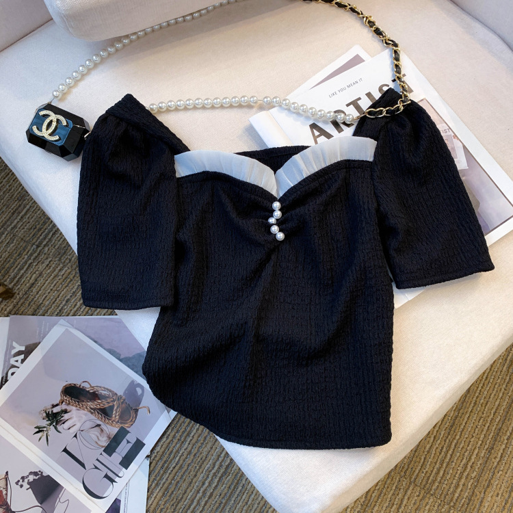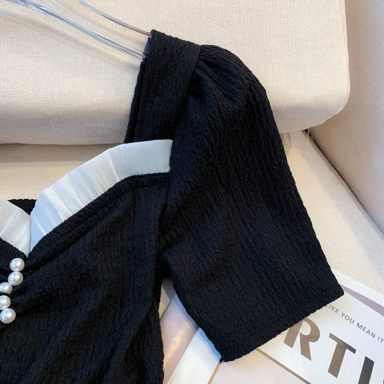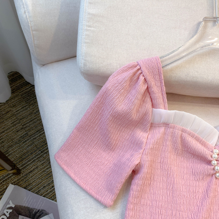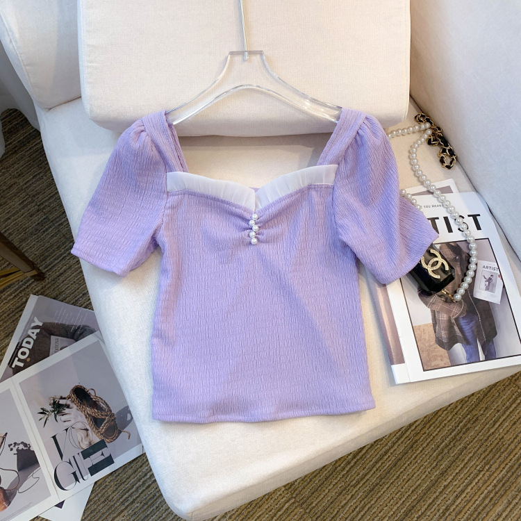실제 촬영 재고 여름 새로운 인 디자인 짧은 셔츠 쉬폰 셔츠 상단 달콤한 작은 셔츠 여성용스토어 가기