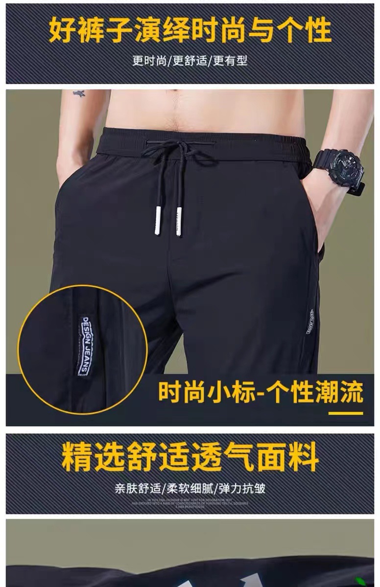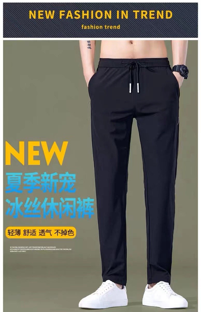남성용 여름 캐주얼 바지 2026 얇은 신축성 있는 스트레이트 핏 슬림 통기성 트렌디 브랜드 속건 스포츠 롱 팬츠 봄스토어 가기