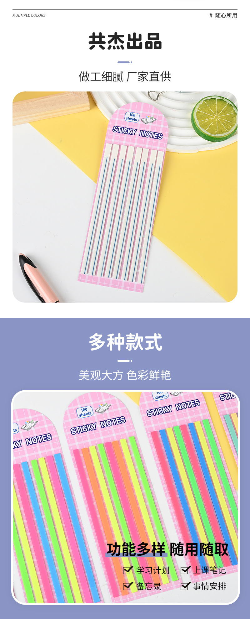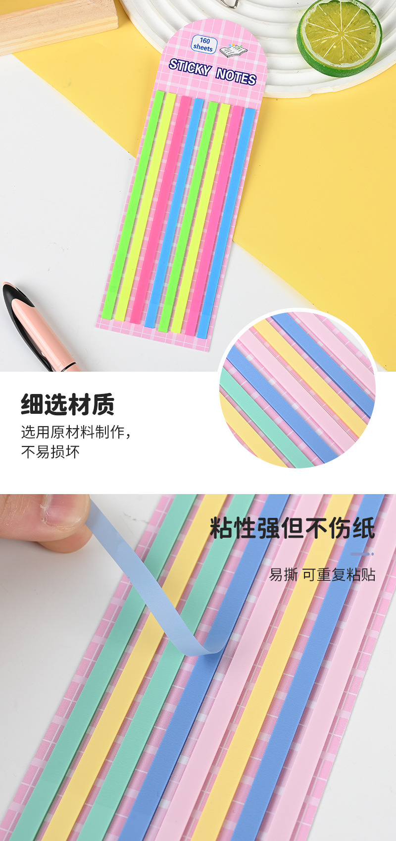 컬러 형광 정밀 포스트잇 노트 분류 라벨 스티커 학생 키 라벨 스티커 투명 PET 스트립 인덱스 스티커