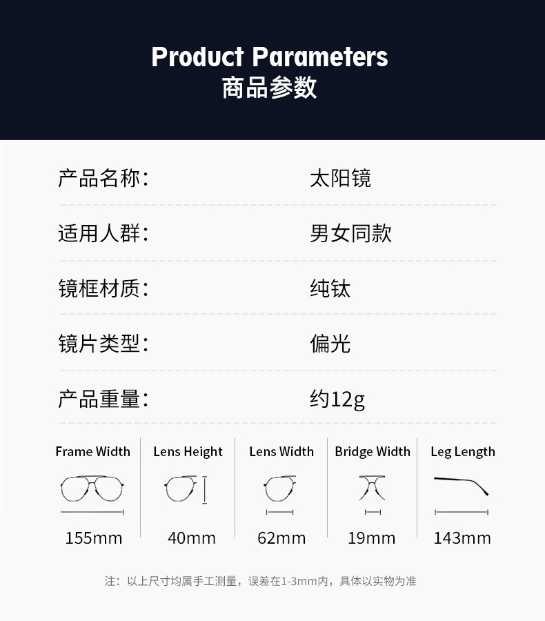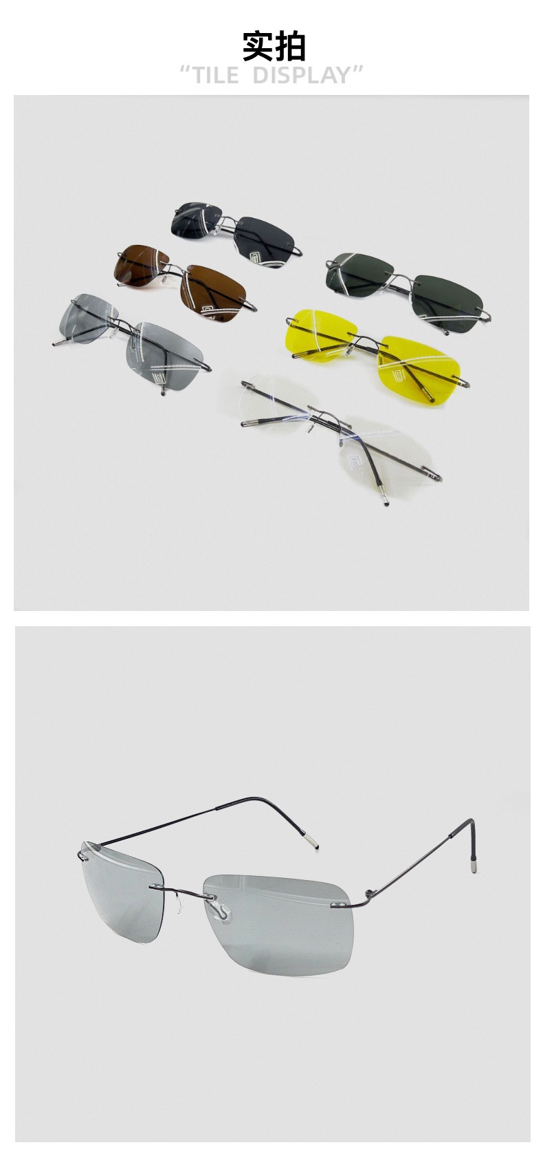 프레임리스 사각 편광 야간 투시경 야외용 TAC 안경 UV400 선글라스 단정한 스타일 선글라스 차양