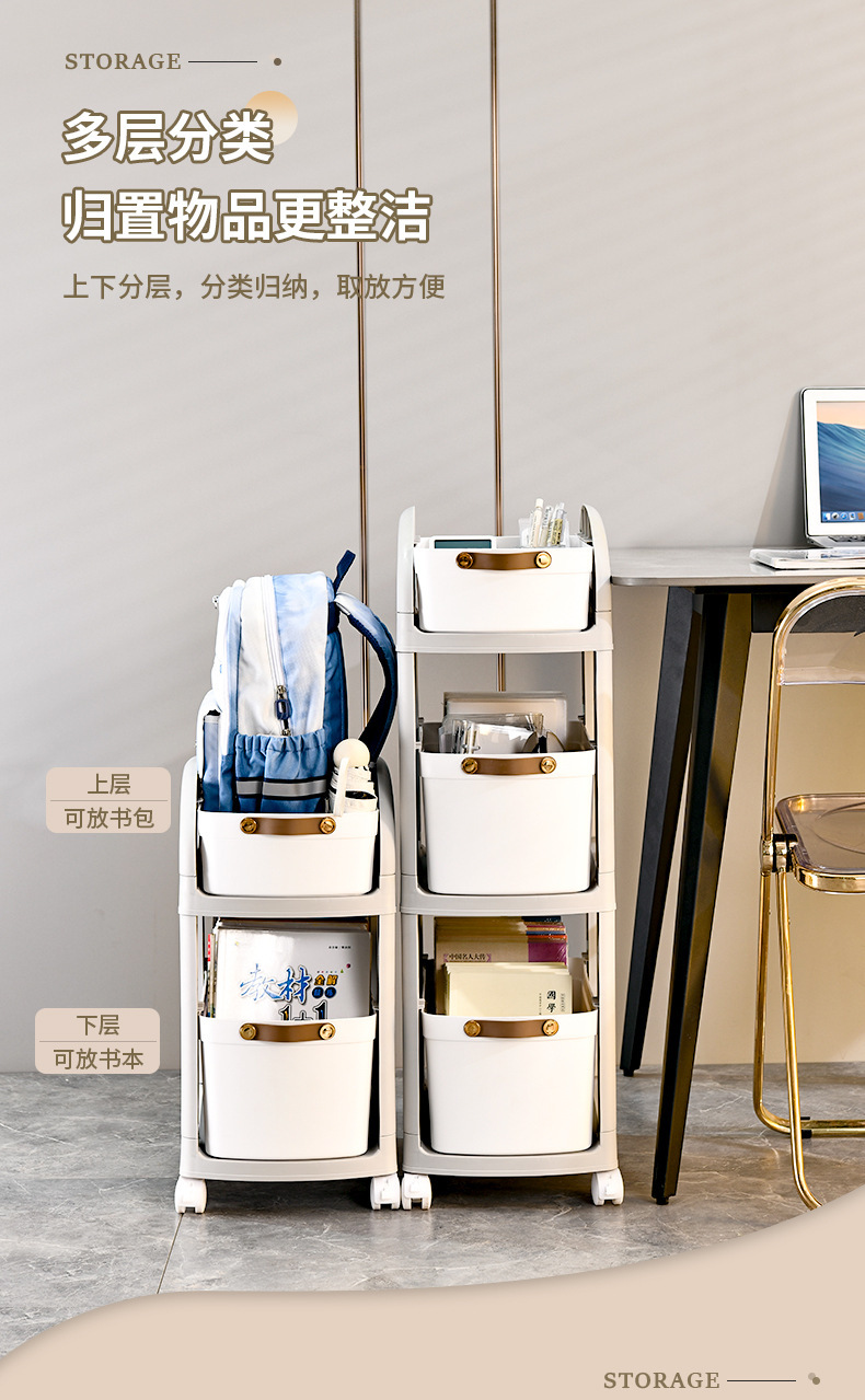 스토리지 랙 가정용 간단한 어린이 주방 바닥 보관 랙 스쿨 백 트롤리 이동식 다층 랙 휠