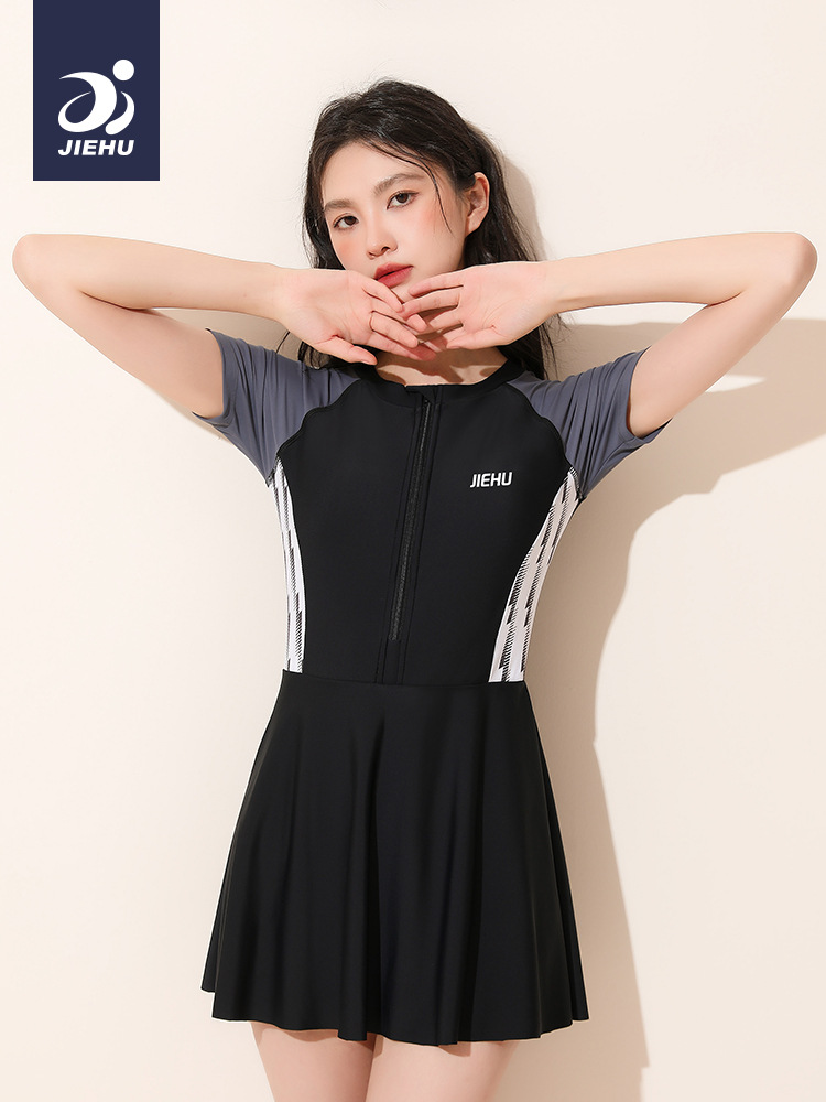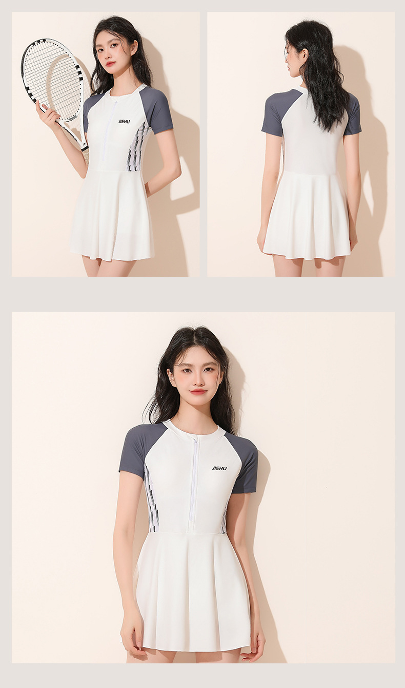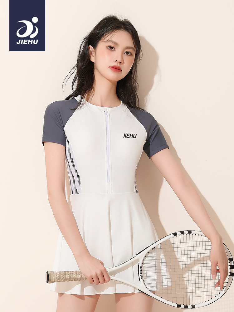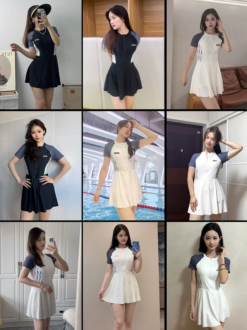 여성 수영복 2026 신상품 온천 여성 수영복 전문 경기용 여성 수영복, 단정한 디자인으로 몸매를 가려주고 날씬해 보이는 원피스 스커트형 수영복