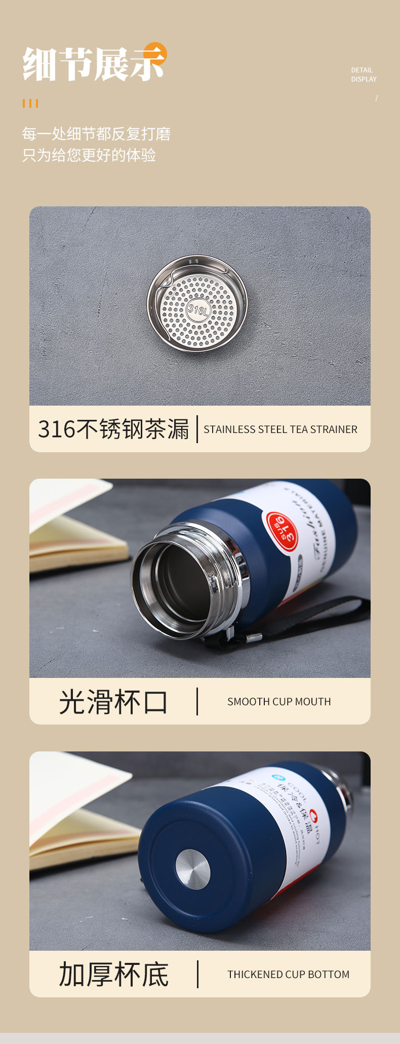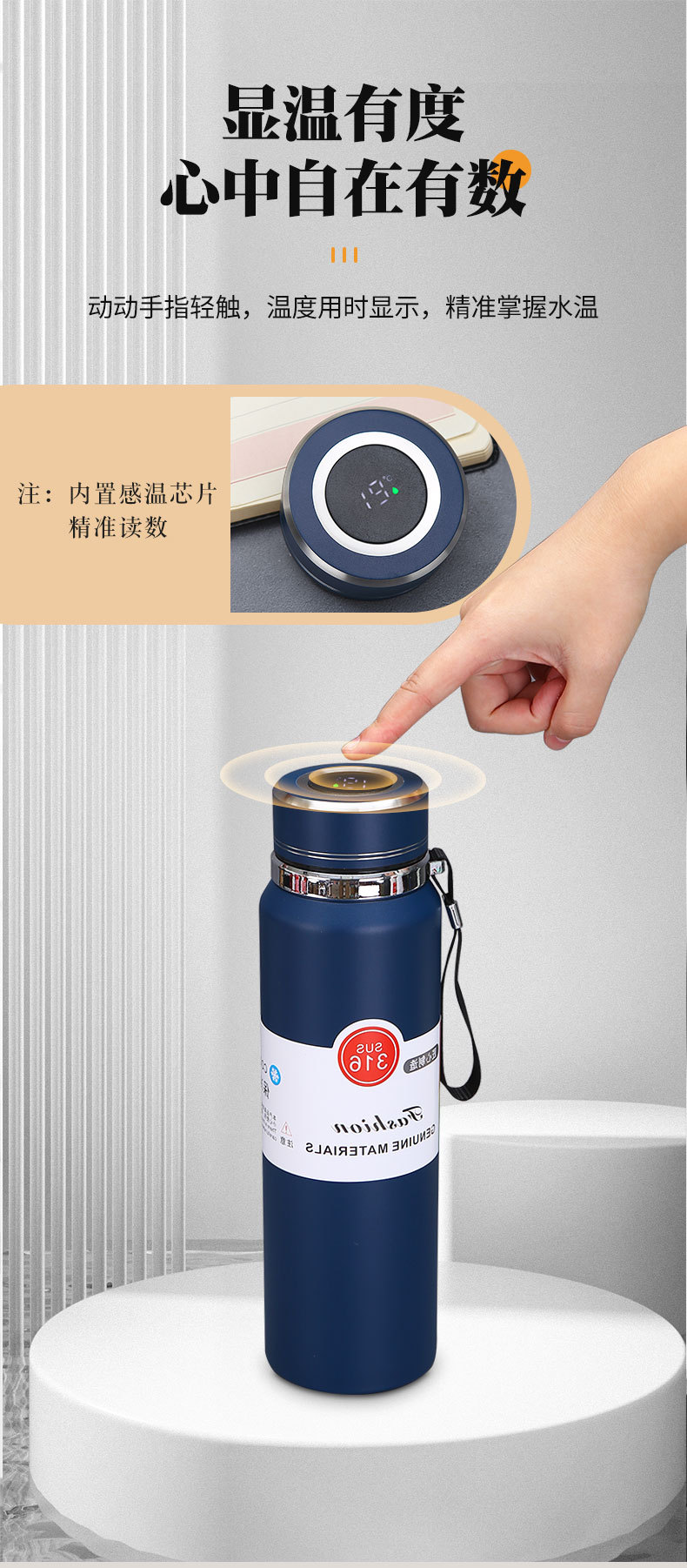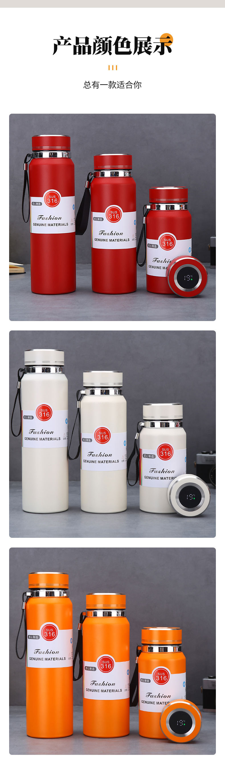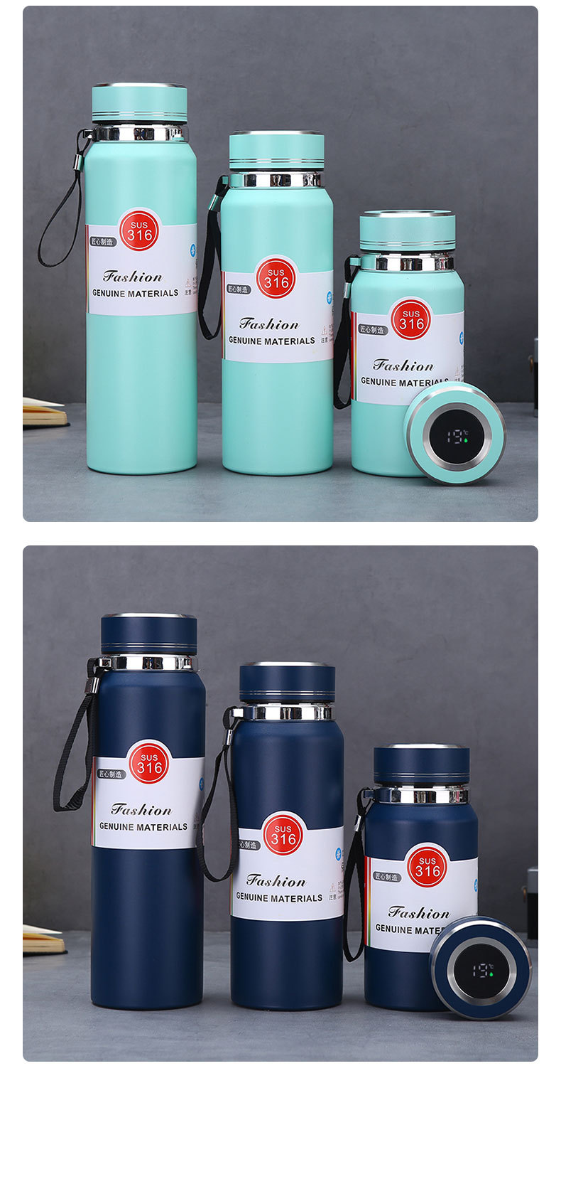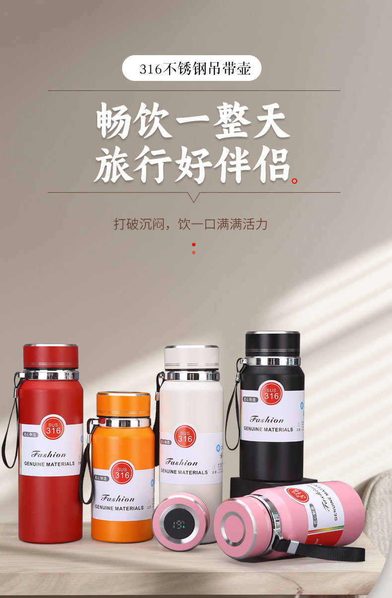 대용량 316 스테인레스 스틸 스마트 보온병 컵 차 파티션 태양 냄비 야외 휴대용 등산 스포츠 주전자스토어 가기