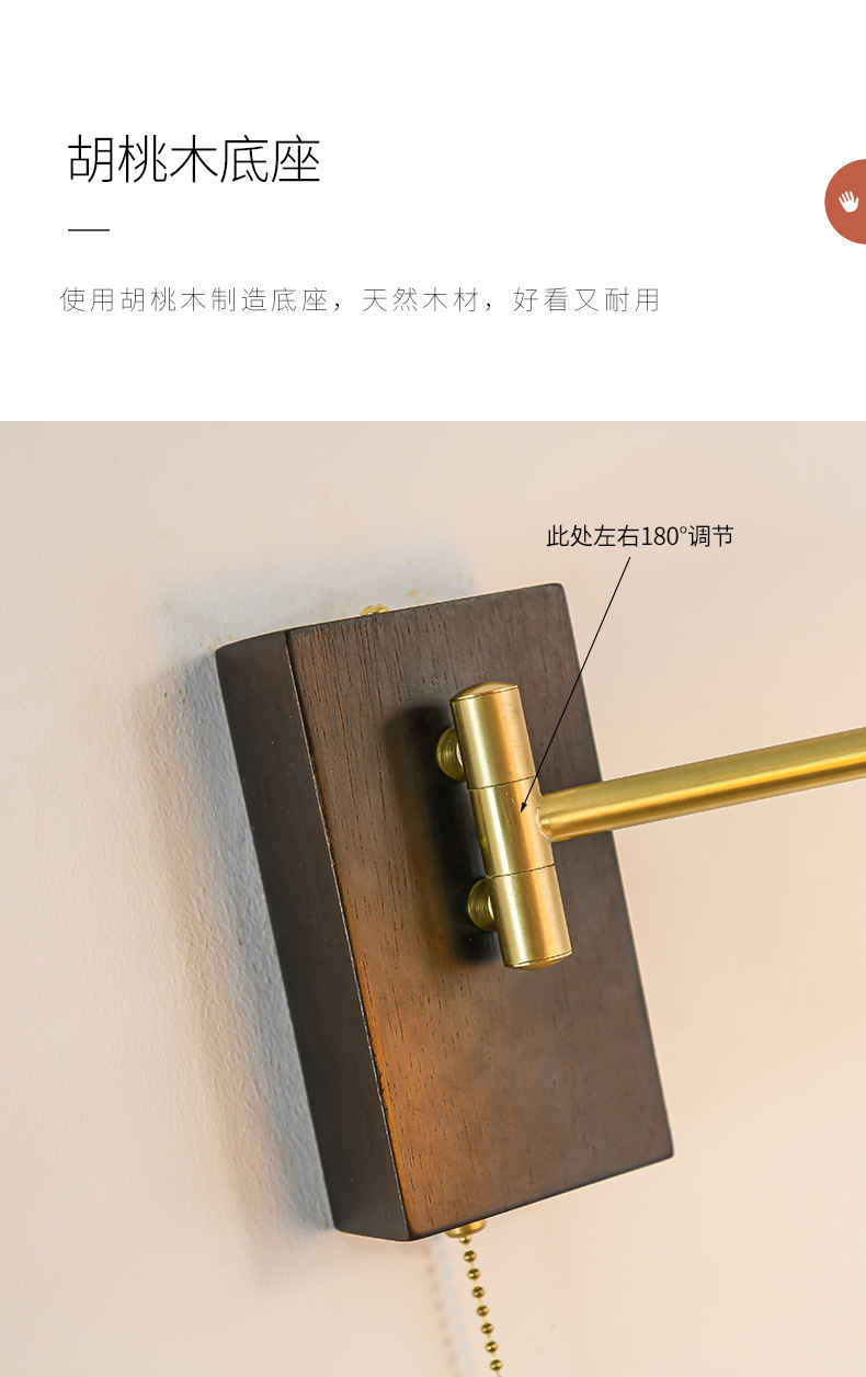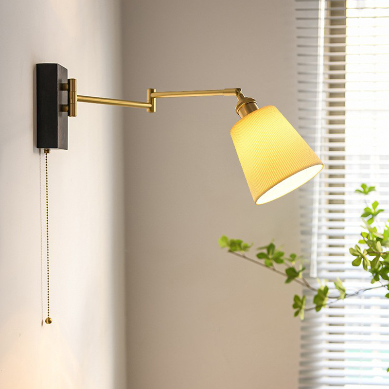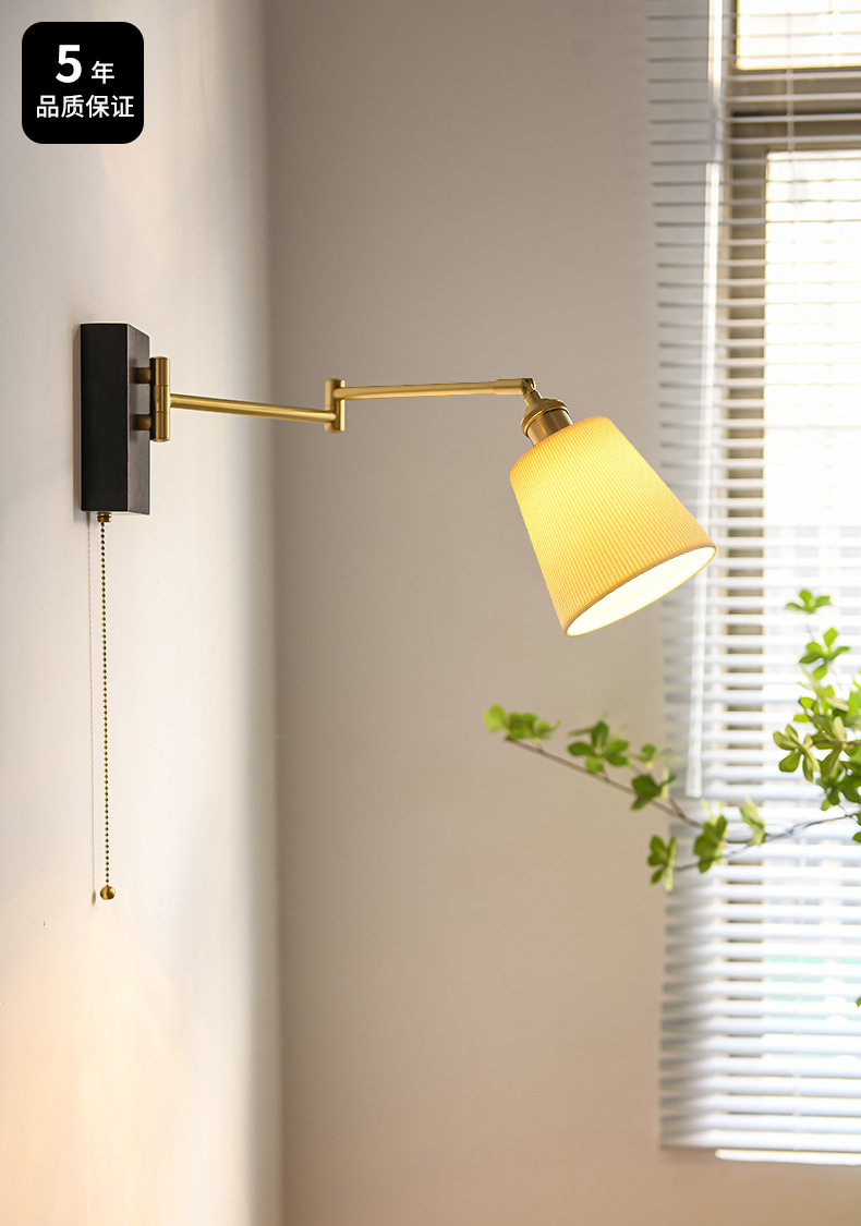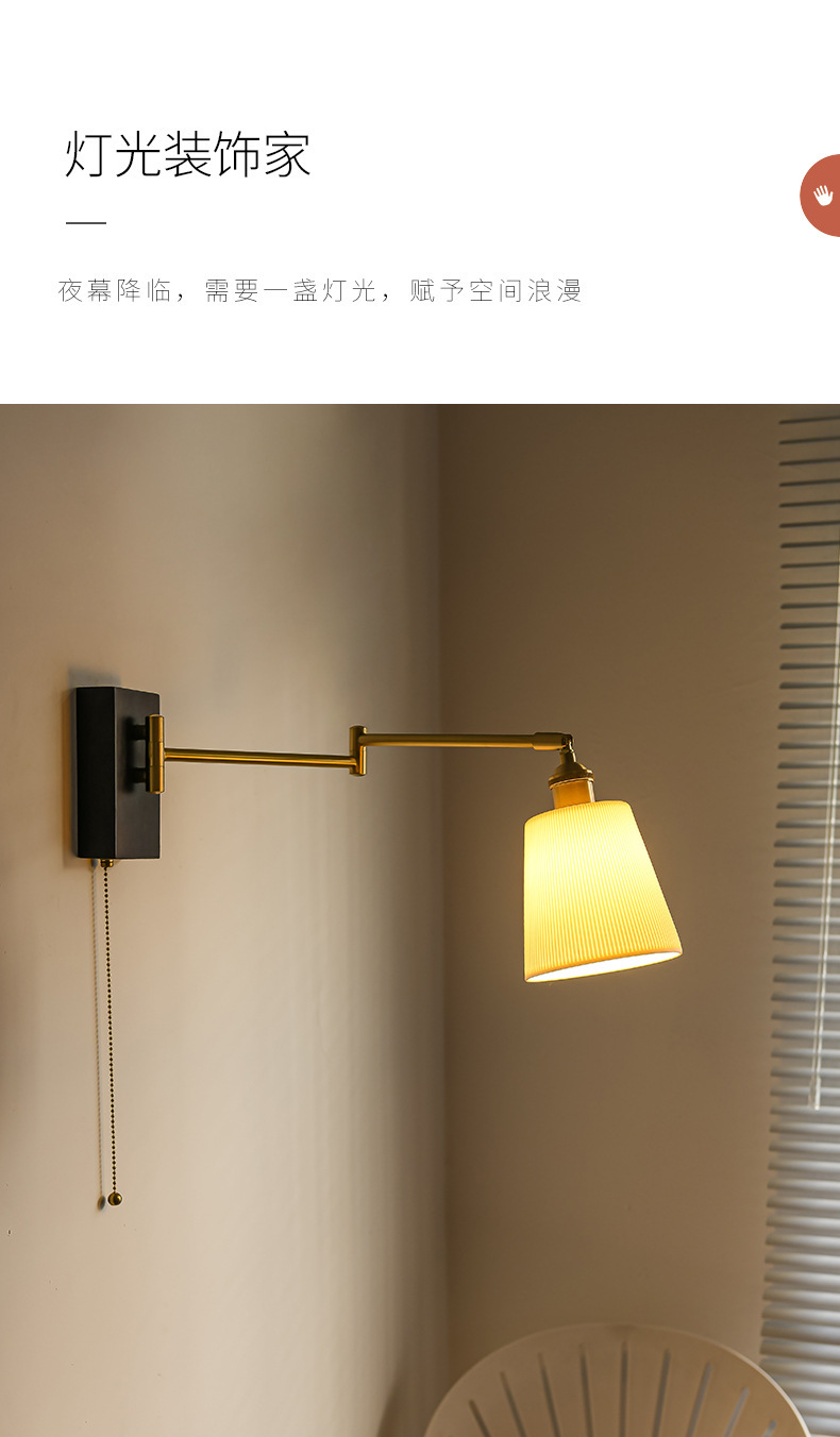 공장 북유럽 호두 침대 옆 벽 램프 일본 복고풍 창조적 인 세라믹 연구 침실 움직일 수있는 개폐식 벽 램프