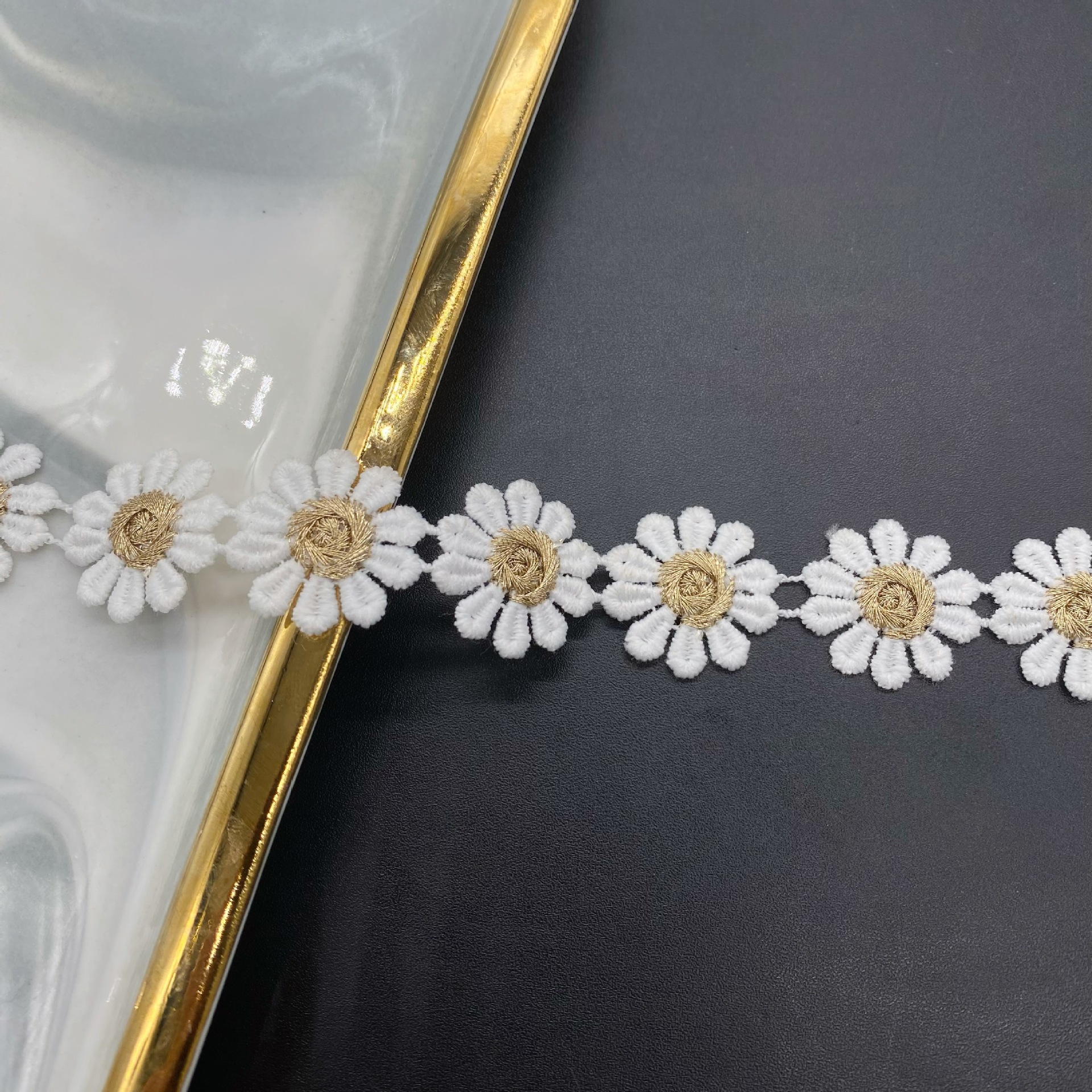 골드 스레드 레이스 쇄골 체인 보석 액세서리 diy 컷 2 색 꽃 자수 바코드 레이스