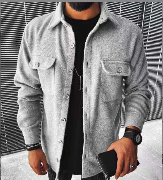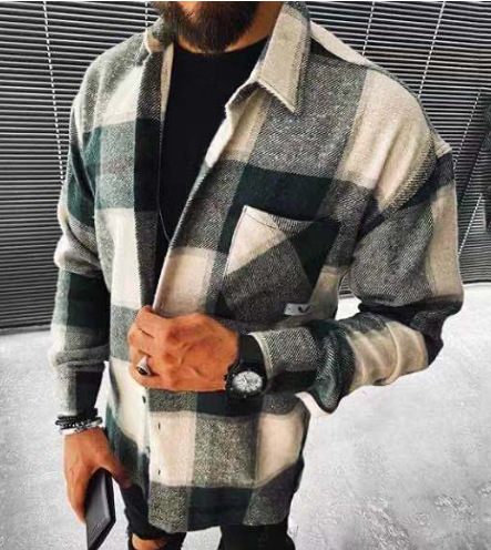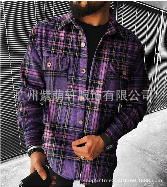 2023 가을과 겨울 국경 간 남자의 새로운 아마존 새로운 남성 셔츠 체크 무늬 포켓 긴 소매 셔츠