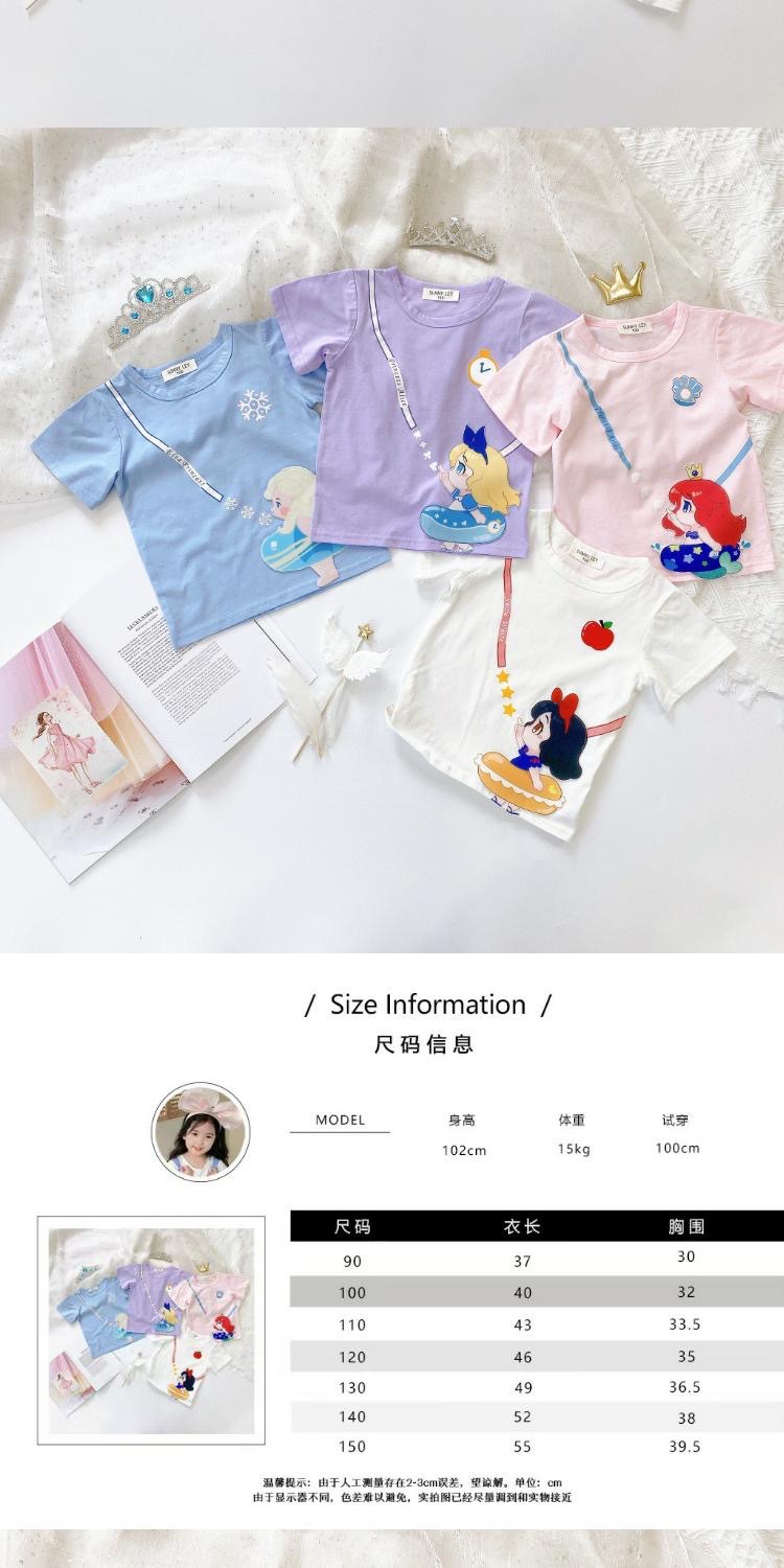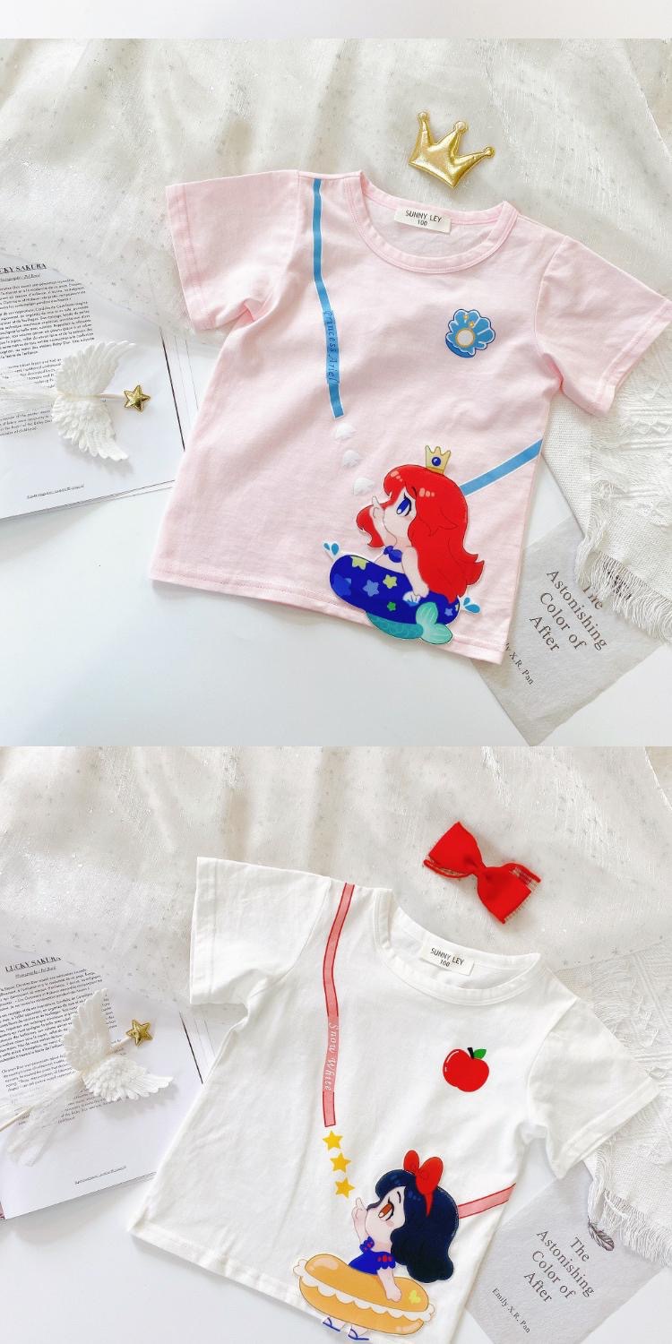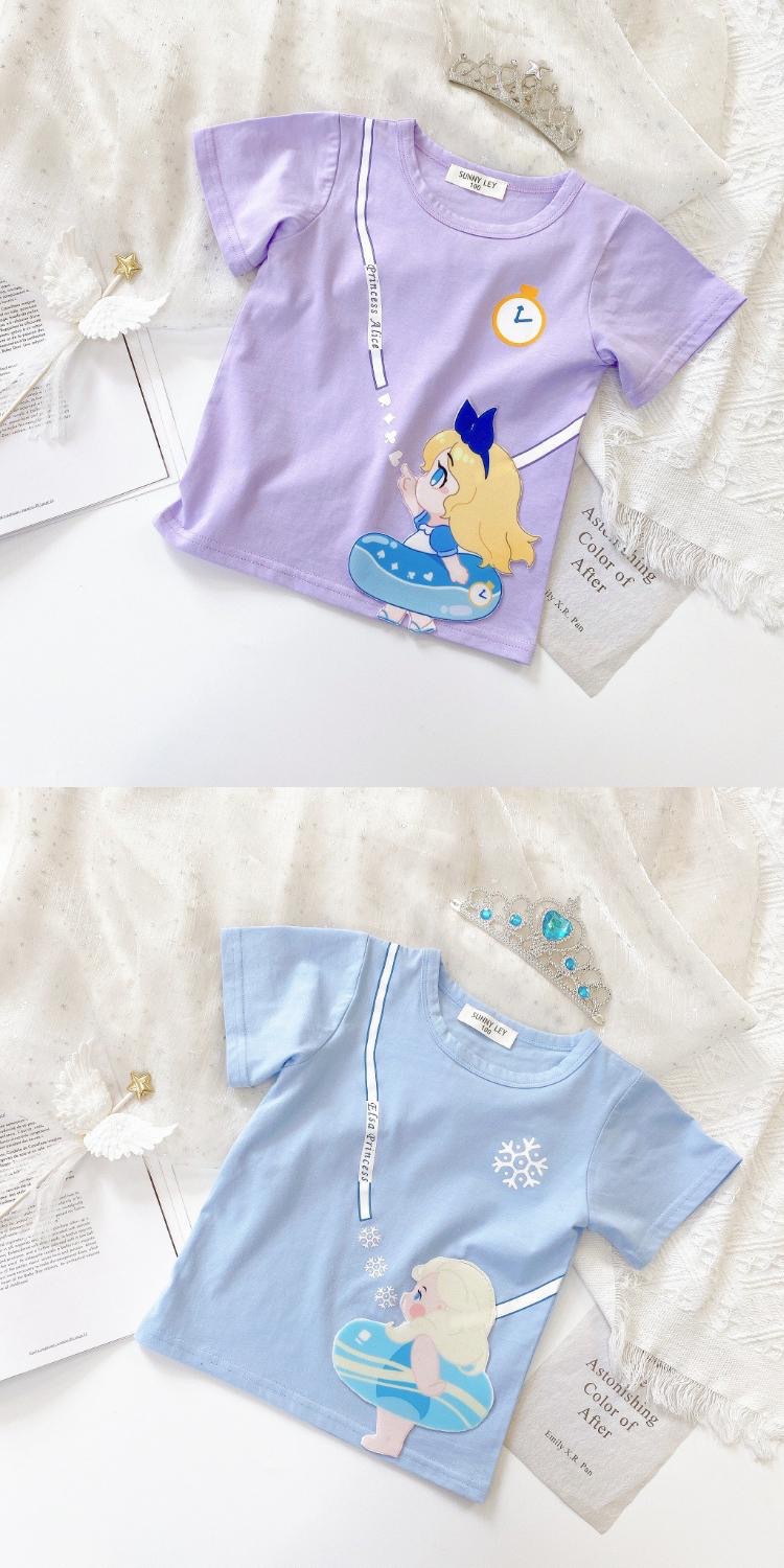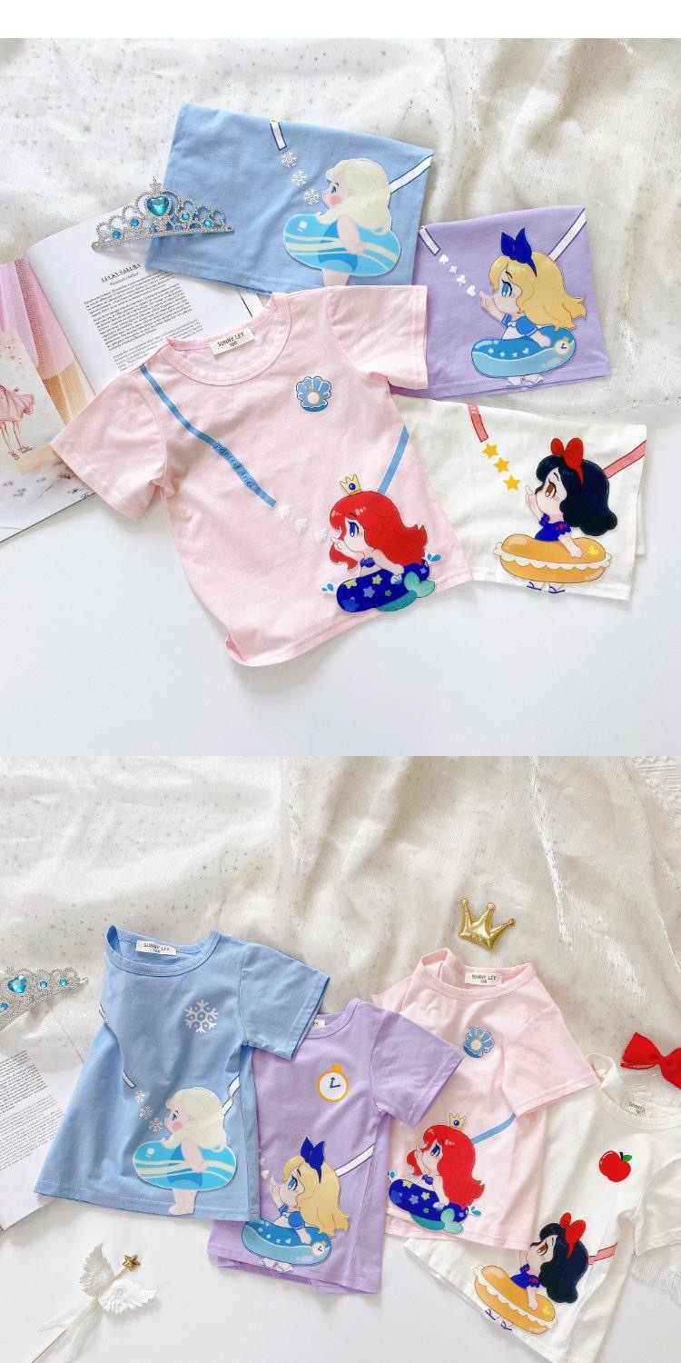 새로운 다채로운 공주 귀여운 만화 인쇄 캐주얼 느슨한 통기성 반팔 라운드 넥 티셔츠 소녀 한국 스타일 여름스토어 가기