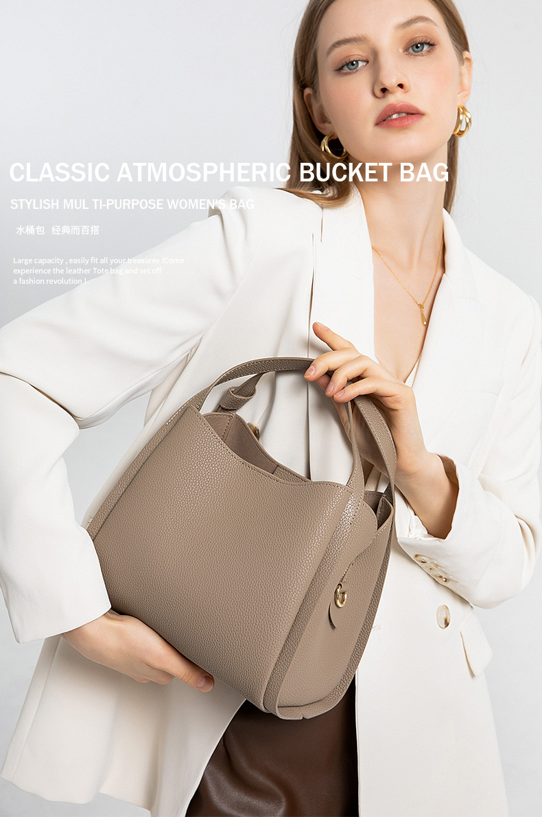 真皮女包手提包包女2024新款高级感大容量通勤包女水桶包斜挎包女