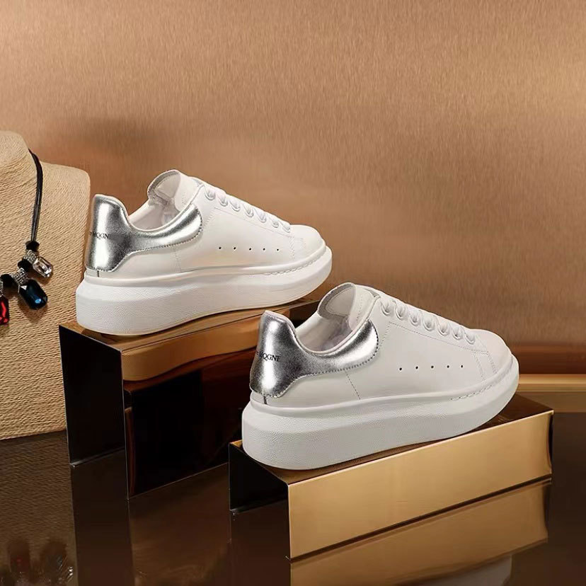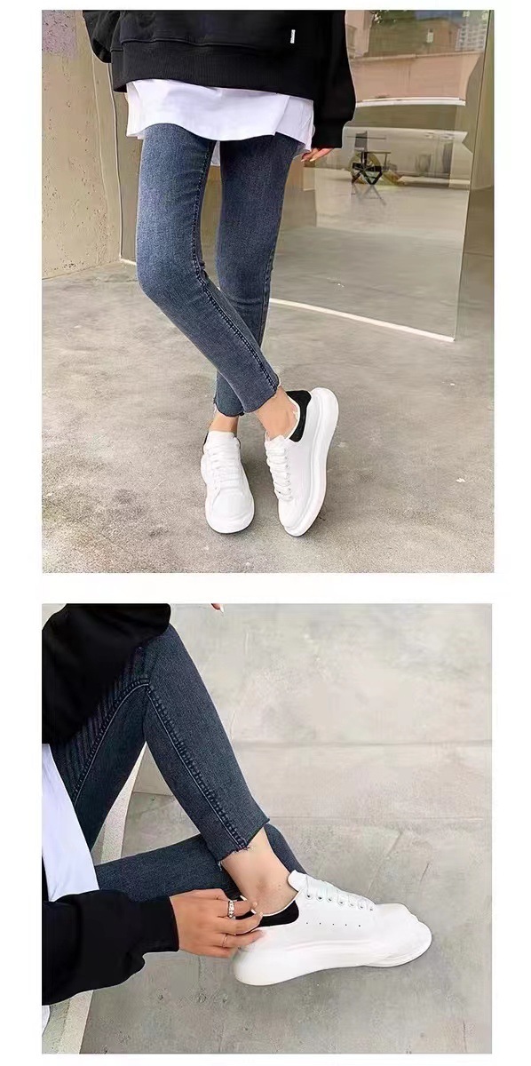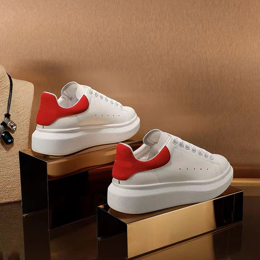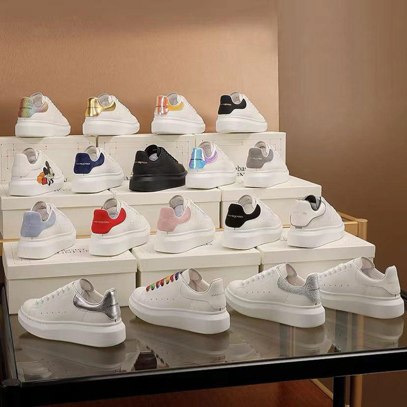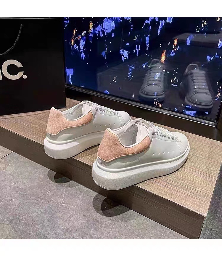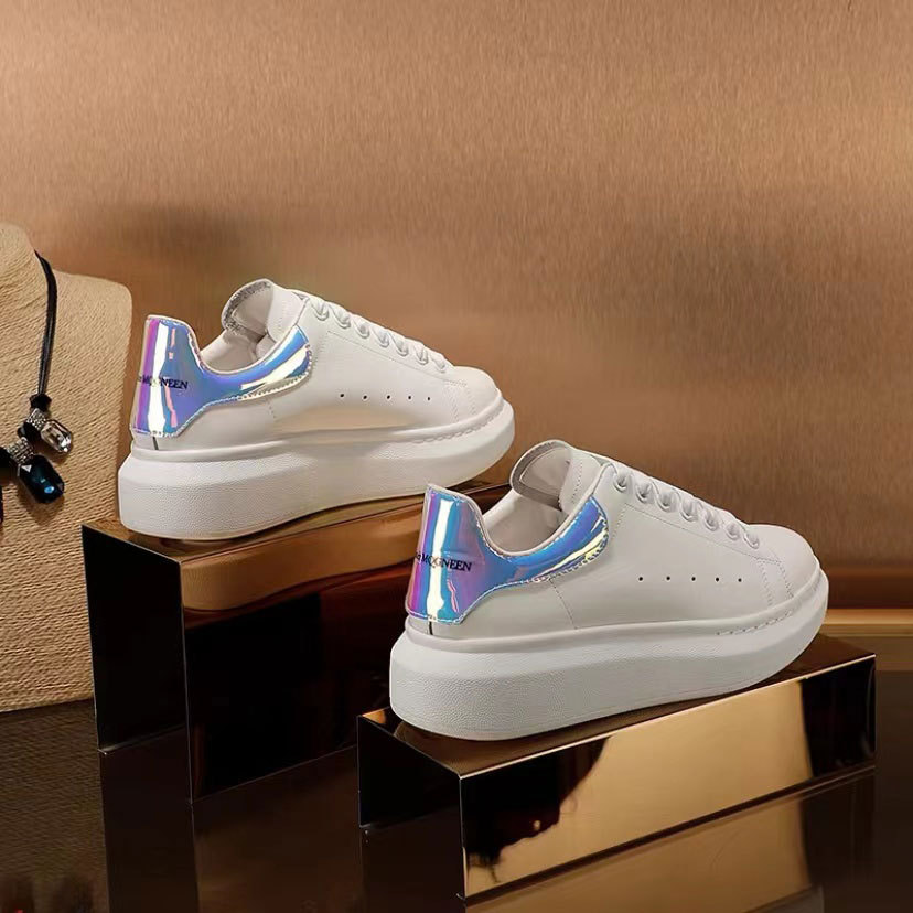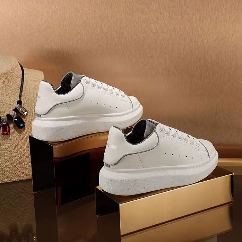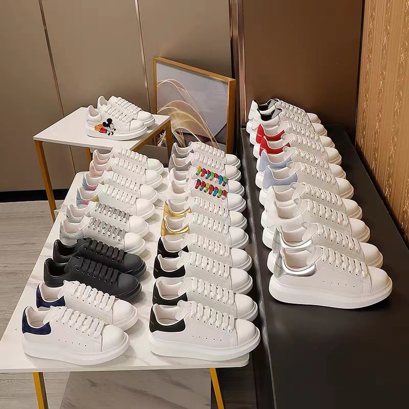 여성을위한 McQueen 흰색 신발 2023 새로운 가을 높이 증가 플랫폼 올 매치 캔버스 신발 정품 가죽 캐주얼 커플 보드 신발스토어 가기