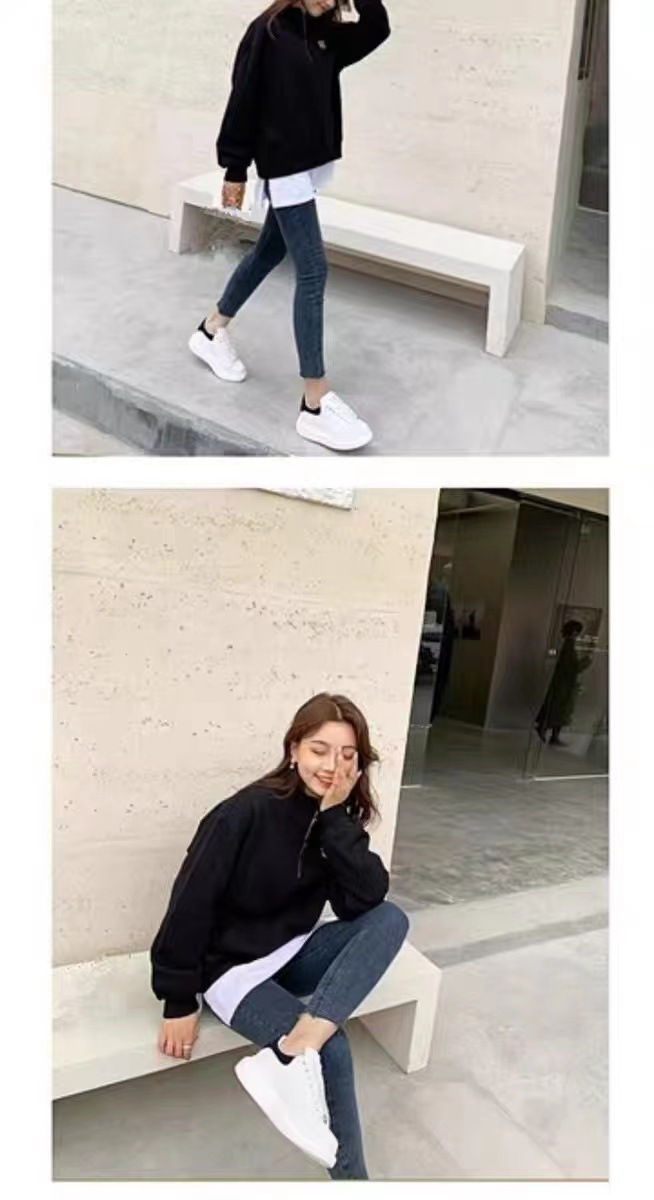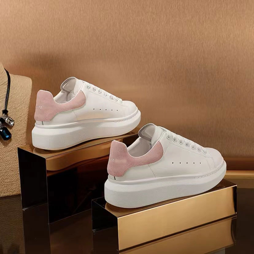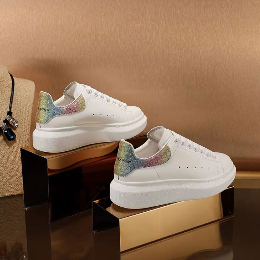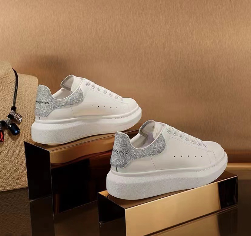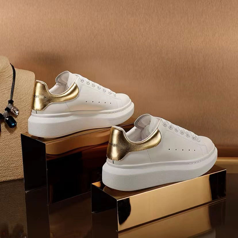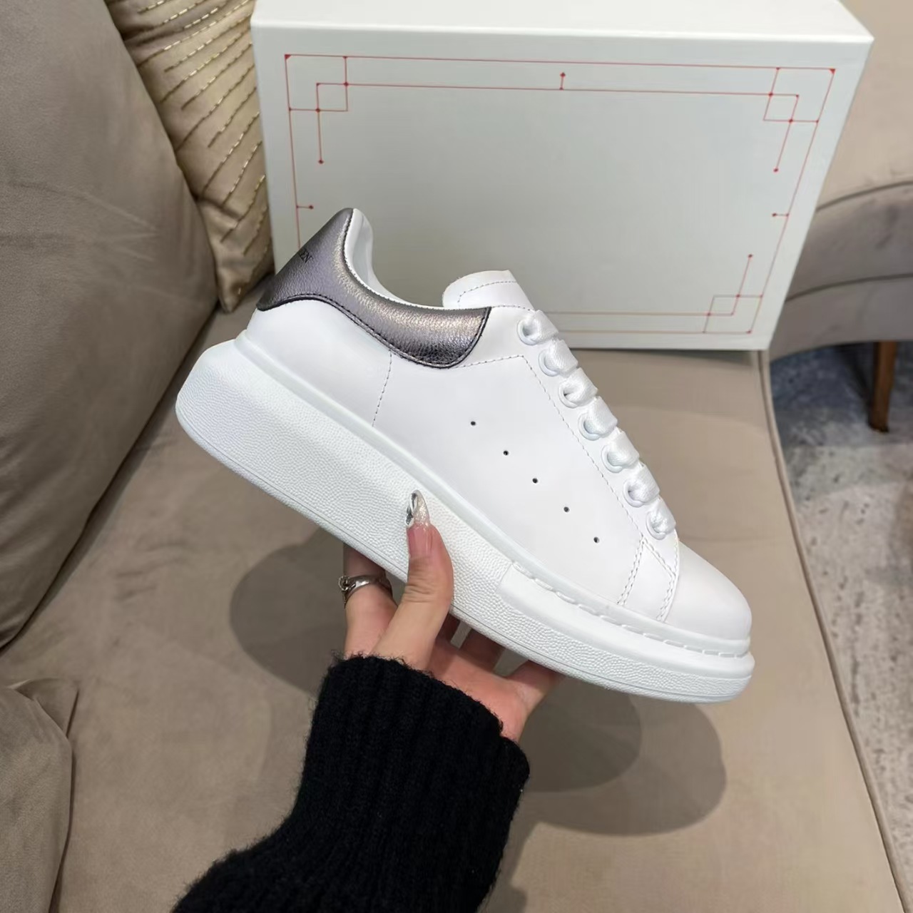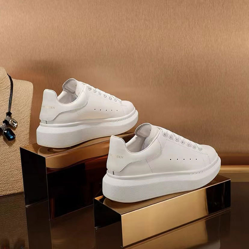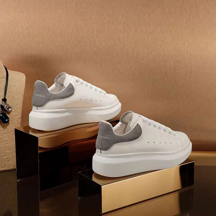 여성을위한 McQueen 흰색 신발 2023 새로운 가을 높이 증가 플랫폼 올 매치 캔버스 신발 정품 가죽 캐주얼 커플 보드 신발스토어 가기