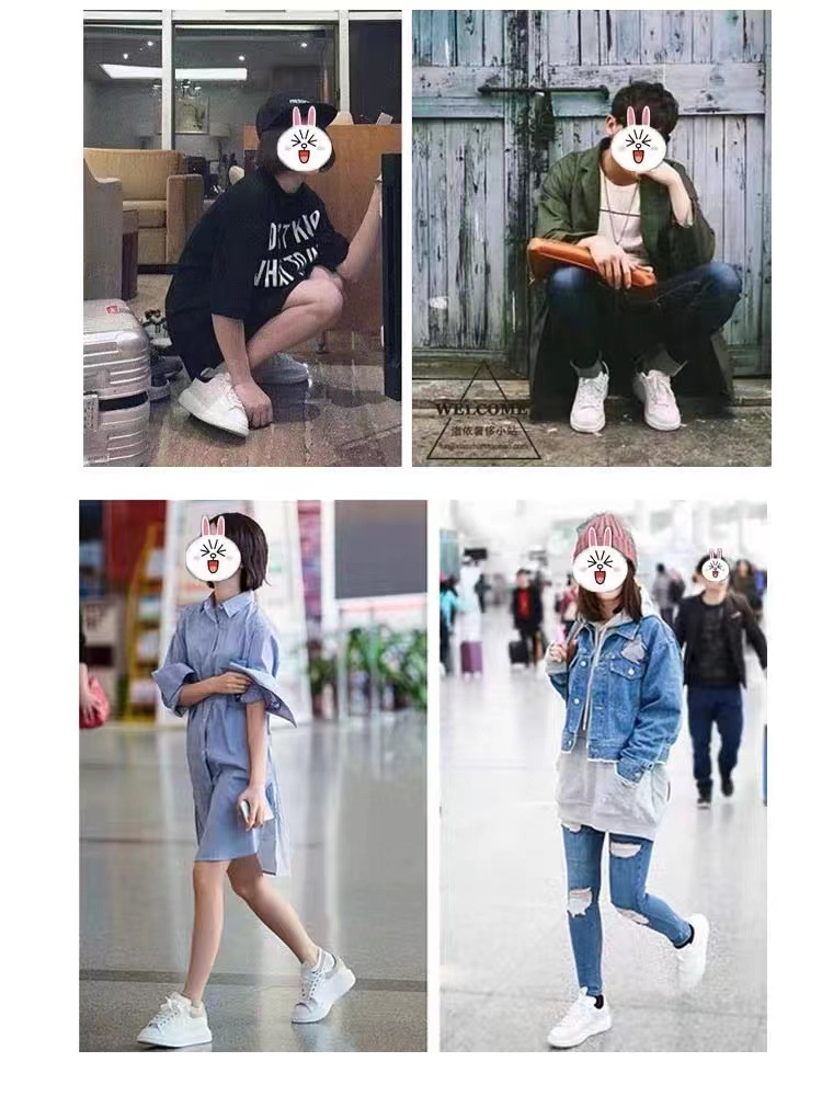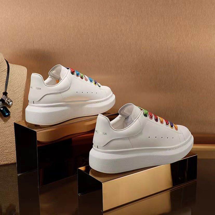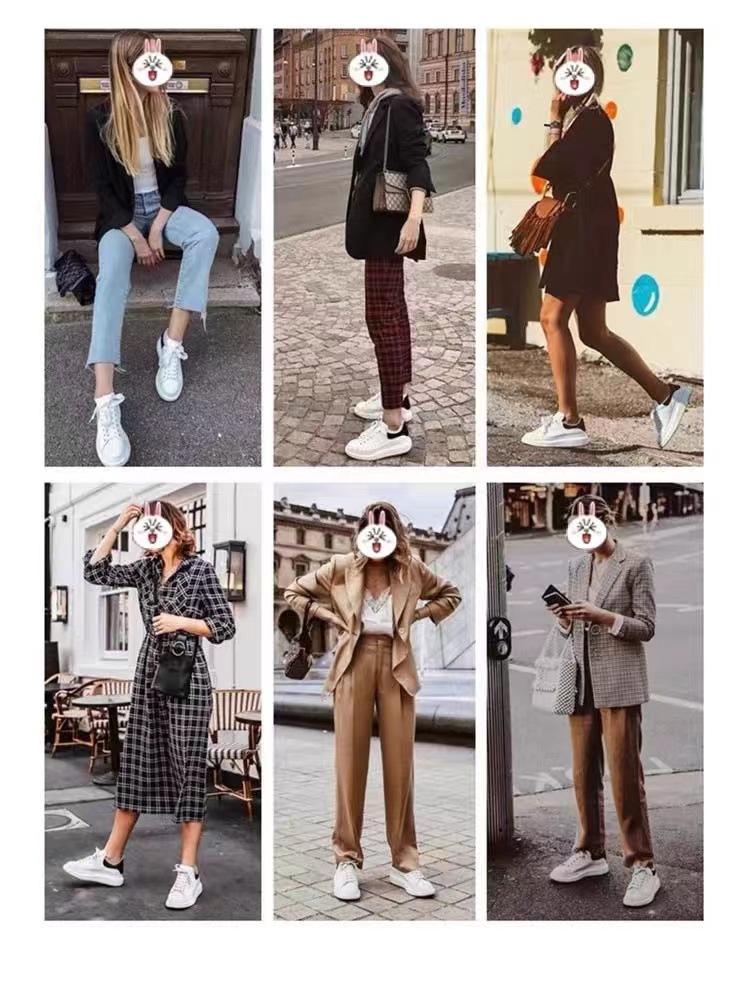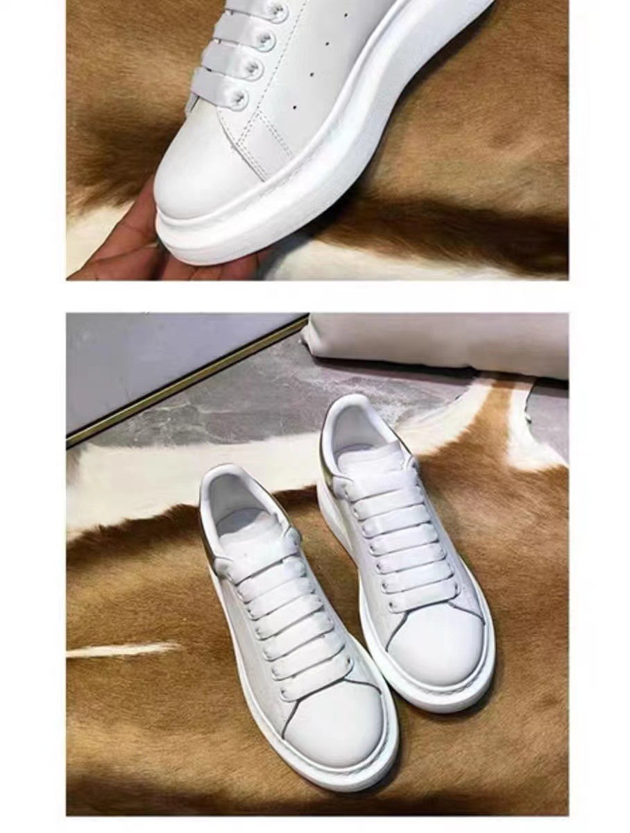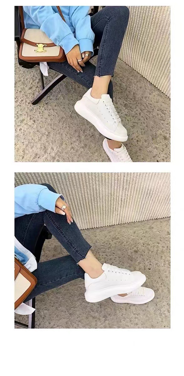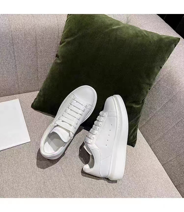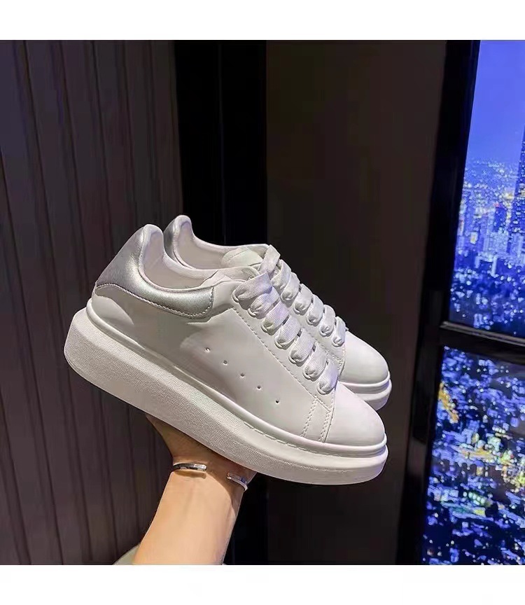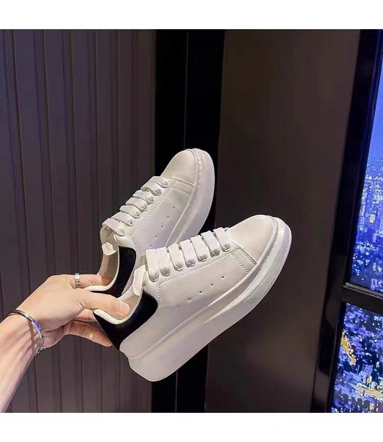 여성을위한 McQueen 흰색 신발 2023 새로운 가을 높이 증가 플랫폼 올 매치 캔버스 신발 정품 가죽 캐주얼 커플 보드 신발