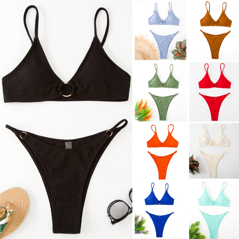 2024 재고 아마존 유럽과 미국의 대외 무역 새로운 뜨거운 섹시한 여성의 단색 분할 비키니 비키니스토어 가기
