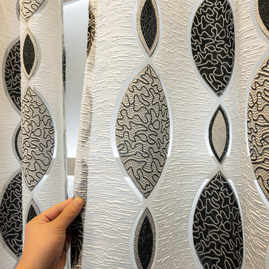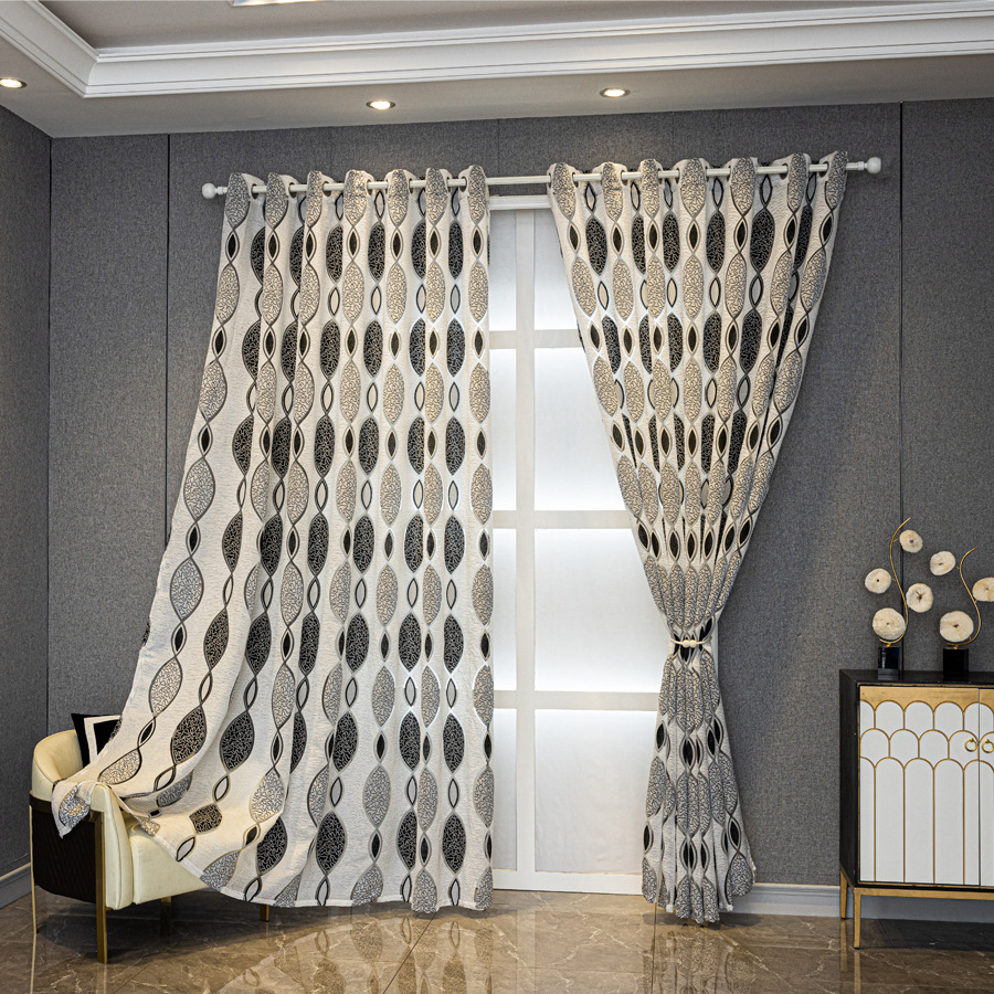 우아한 유럽식 자카드 창 화면 음영 커튼 거실 발코니 빌라 골든 흑백 국경 아마존 AliExpress스토어 가기