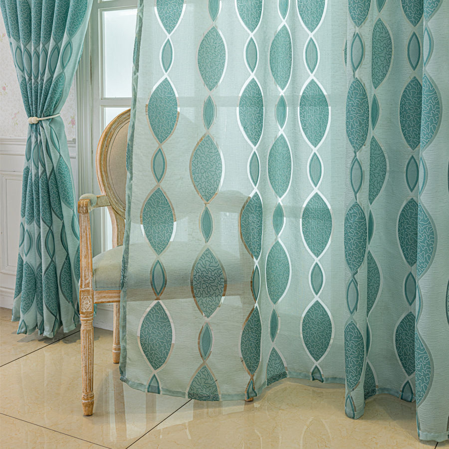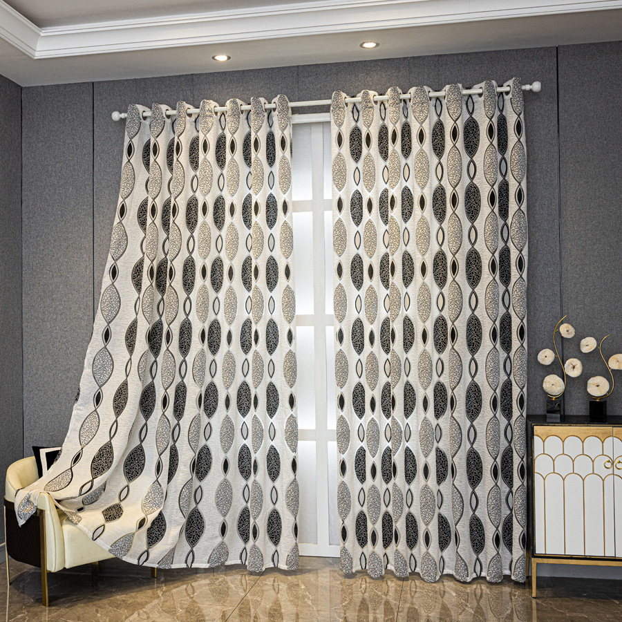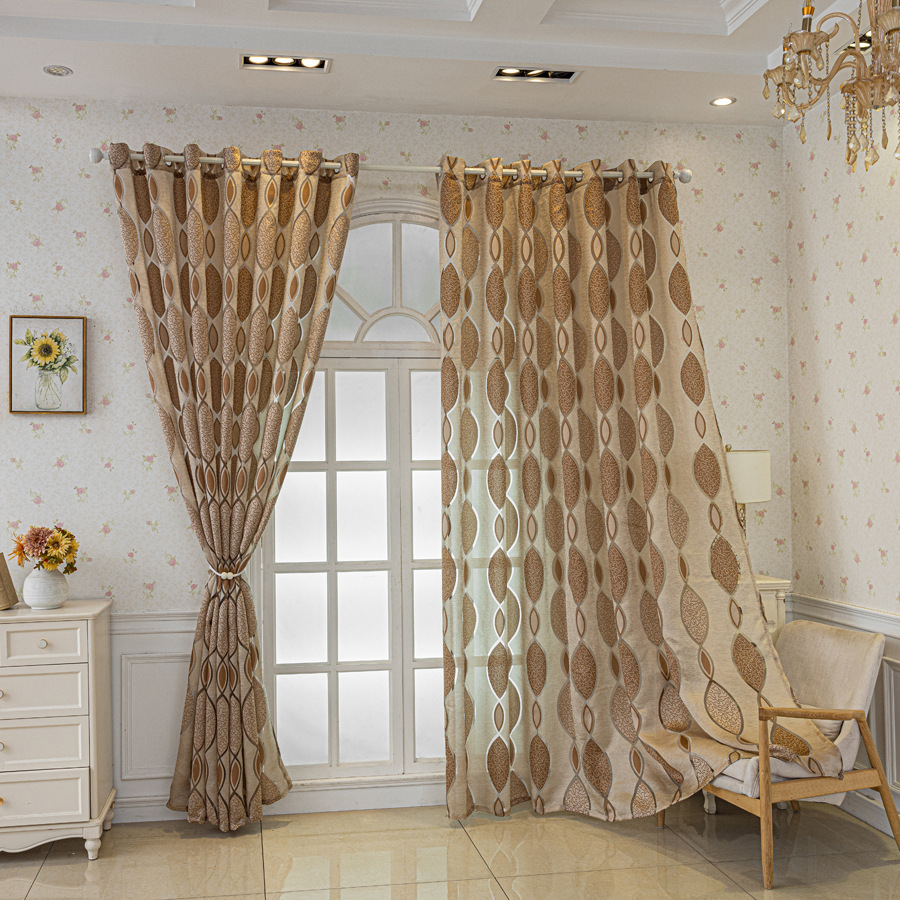 우아한 유럽식 자카드 창 화면 음영 커튼 거실 발코니 빌라 골든 흑백 국경 아마존 AliExpress