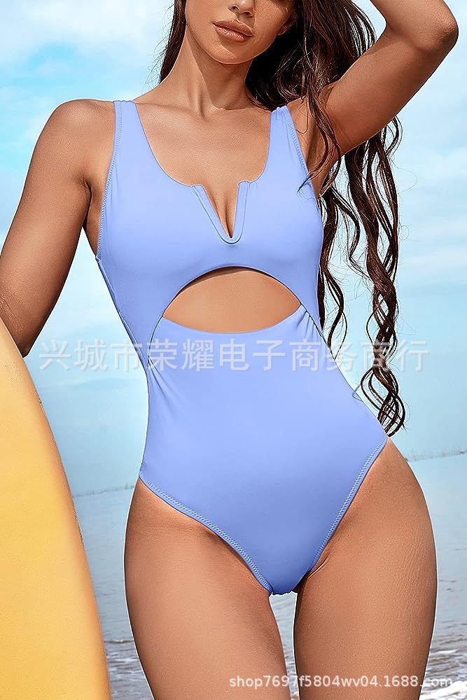 유럽 및 미국 스타일의 여성용 원피스 수영복, 제조업체 도매, 섹시한 스트랩 디자인, 유럽 및 미국 스타일, 해변, 여름, 가볍고 통기성 좋음스토어 가기