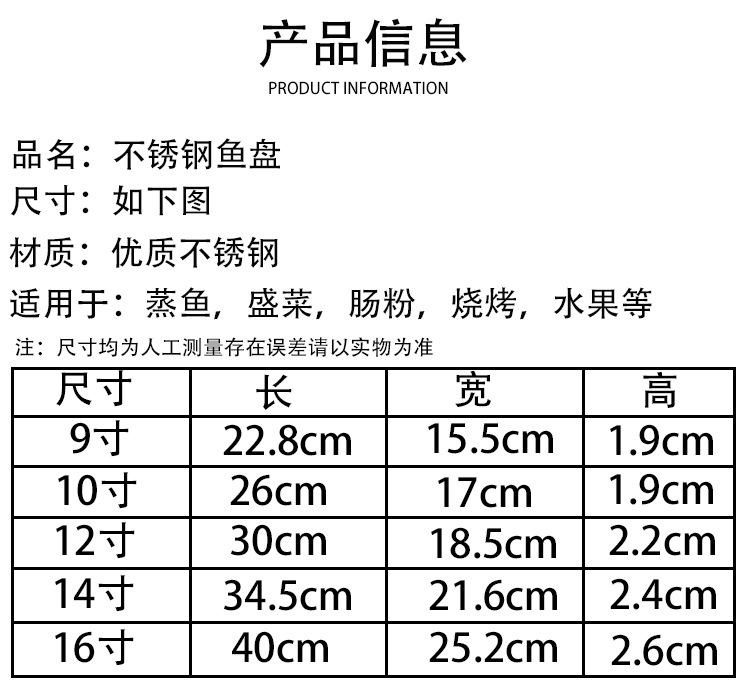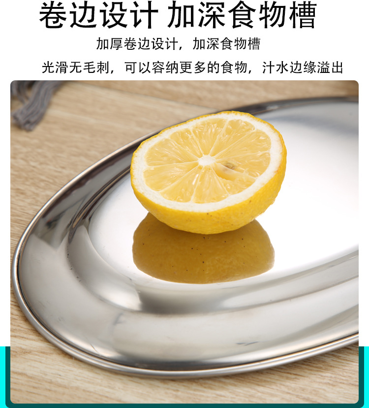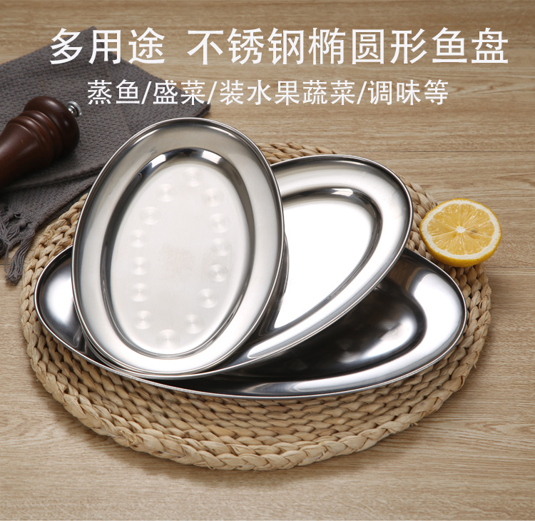 스테인레스 스틸 접시 두꺼운 달걀 모양의 접시 가정용 찐 생선 접시 타원형 접시 상업 요리 소시지 플레이트 바베큐 플레이트