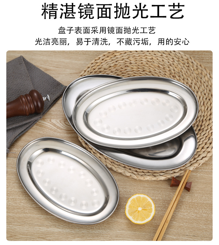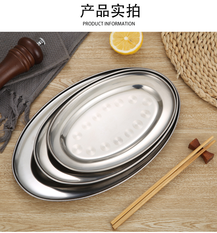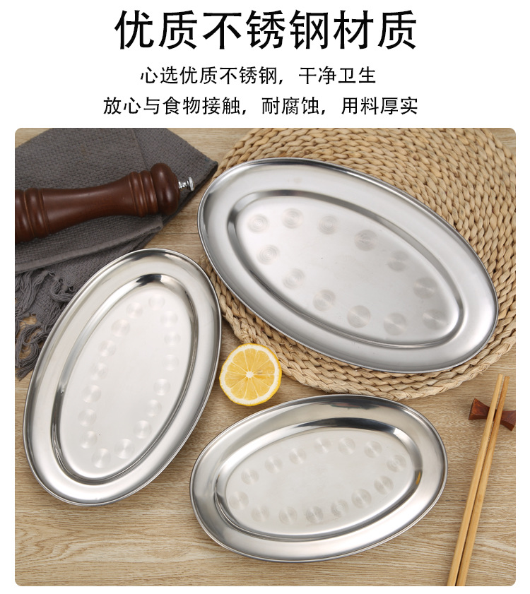 스테인레스 스틸 접시 두꺼운 달걀 모양의 접시 가정용 찐 생선 접시 타원형 접시 상업 요리 소시지 플레이트 바베큐 플레이트스토어 가기