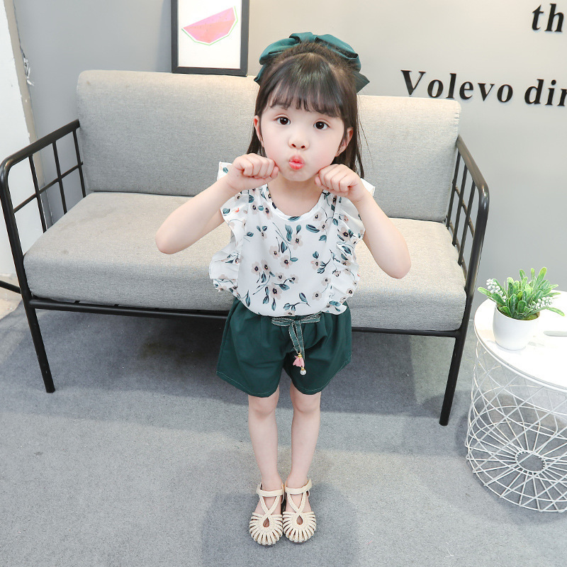 여성 아기 꽃 한국 세트 Doloko 대외 무역 여름 작은 신선한 소녀 외국 스타일 2 1-5 세의 직접 배치