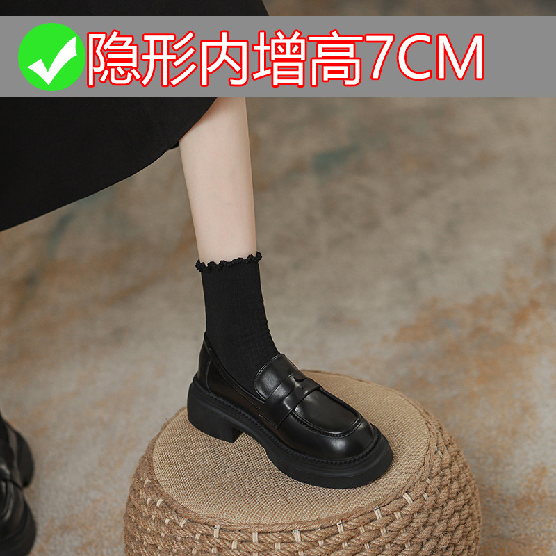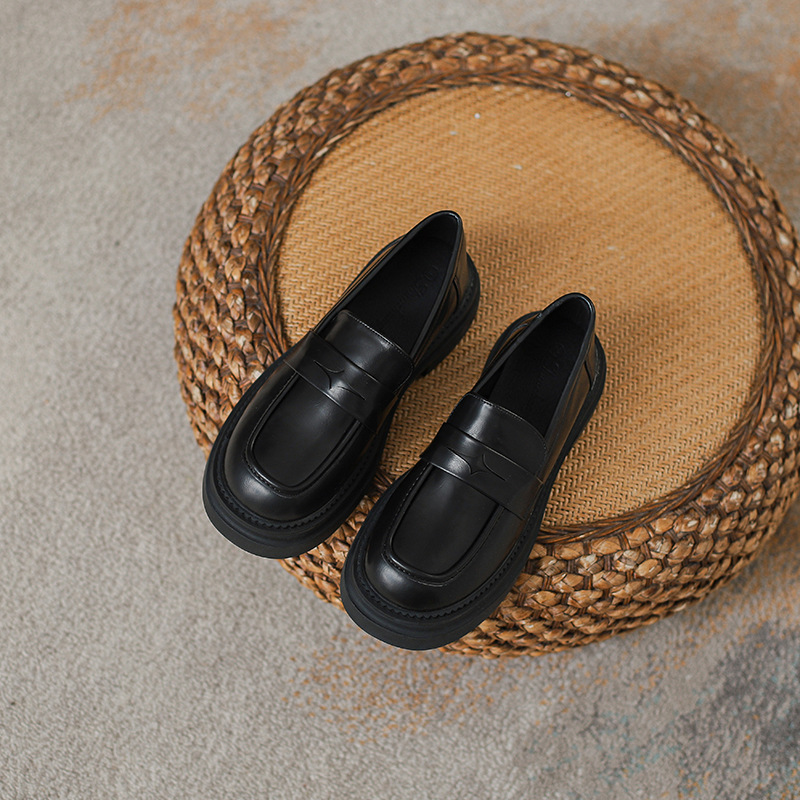즉시 배송 가능 ~ 2024년 영국 스타일 복고풍 컬러 두꺼운 밑창 게으른 로퍼 여성용 작은 가죽 신발스토어 가기