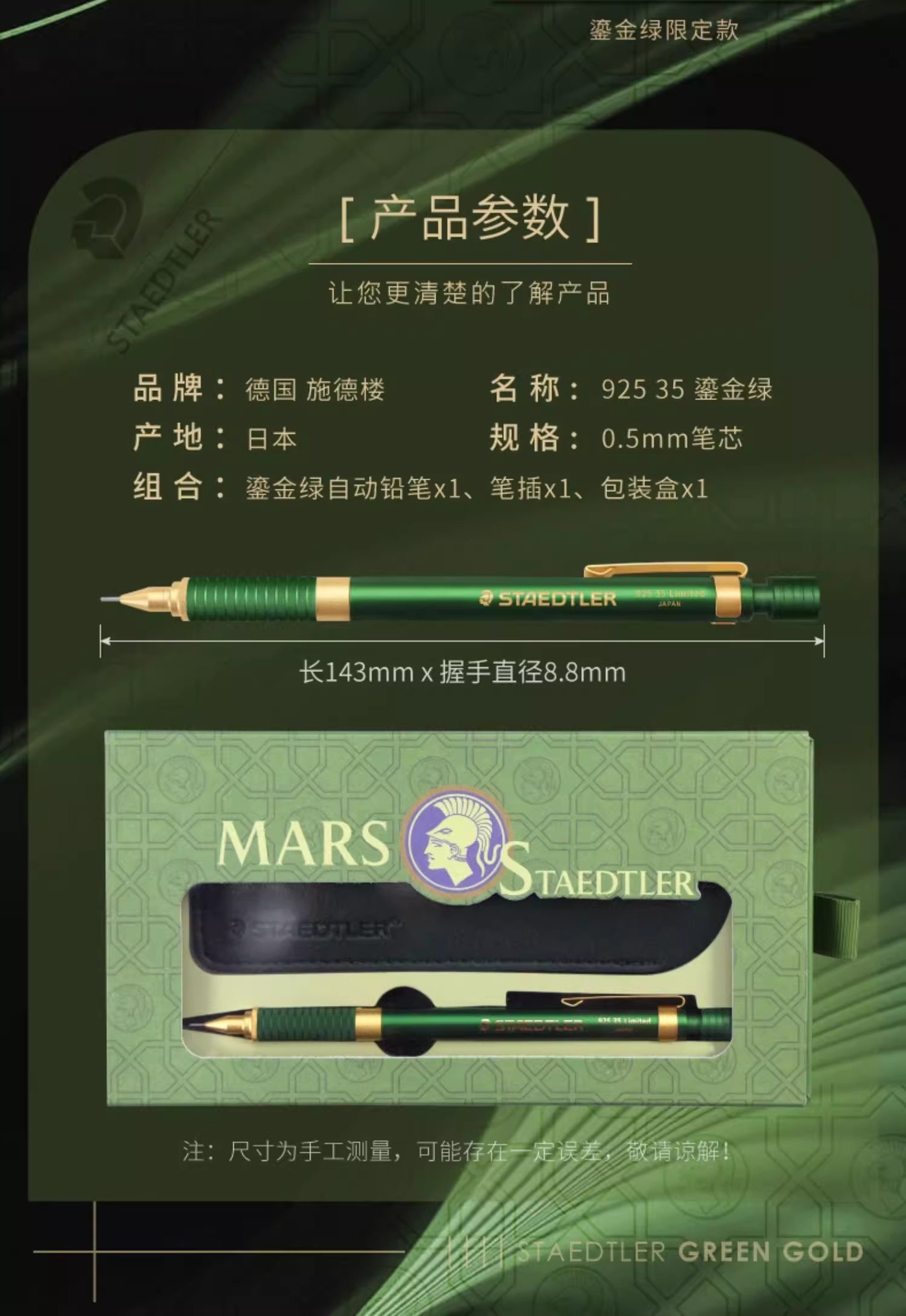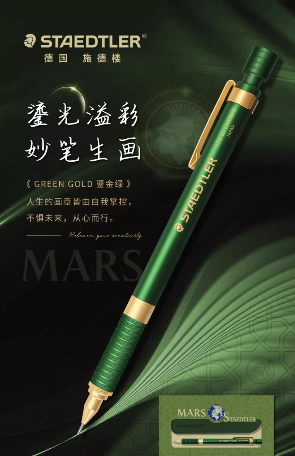 스테들러 925 35 메탈 샤프펜슬 0.5mm 푸시형 연필 한정판 블루 그린
