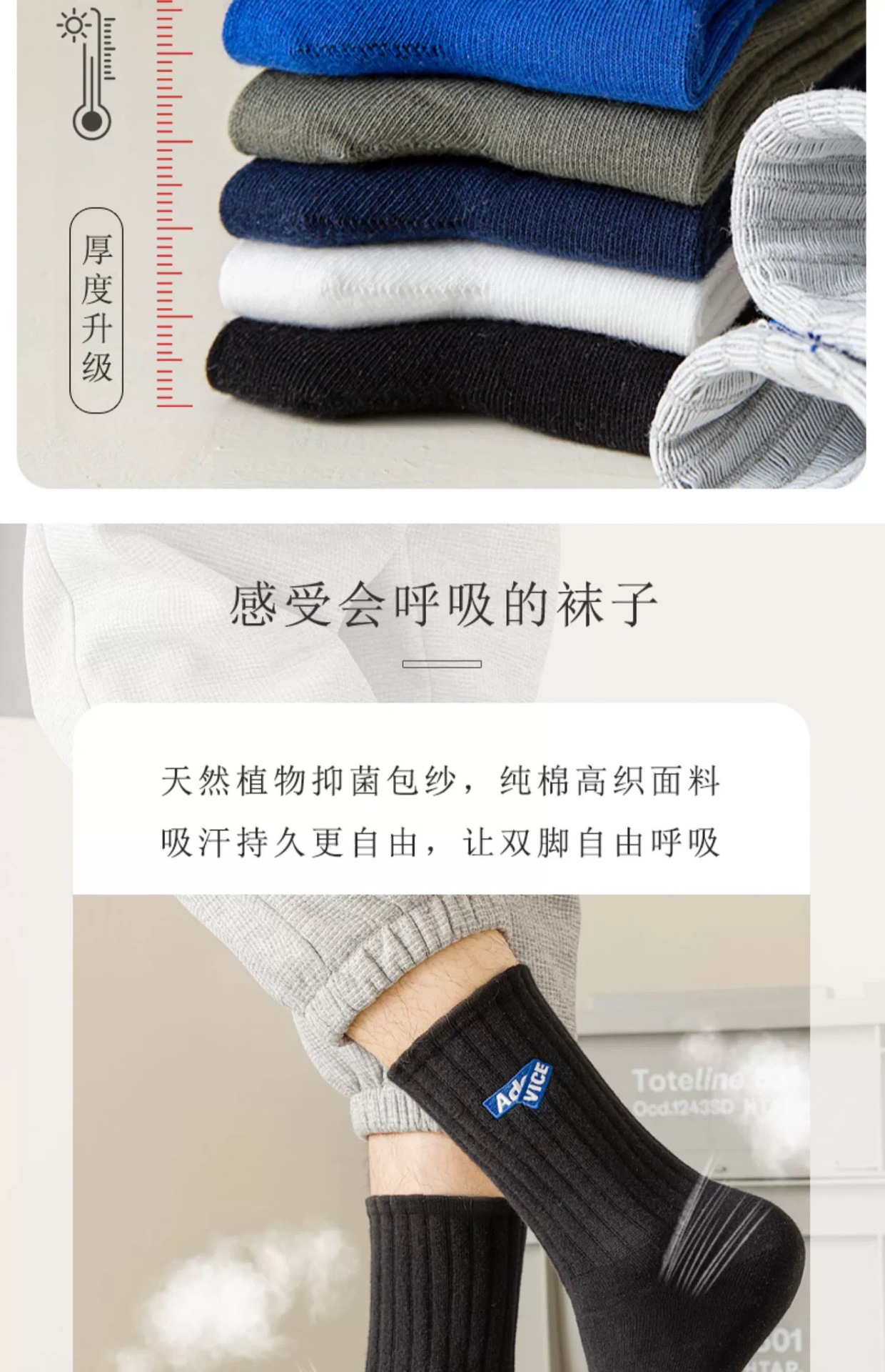양말 남성용 면화 자수 스타킹 가을과 겨울 안티 발 공기 탈취제 두꺼운 중반 종아리 양말 검은 스포츠 높은 양말