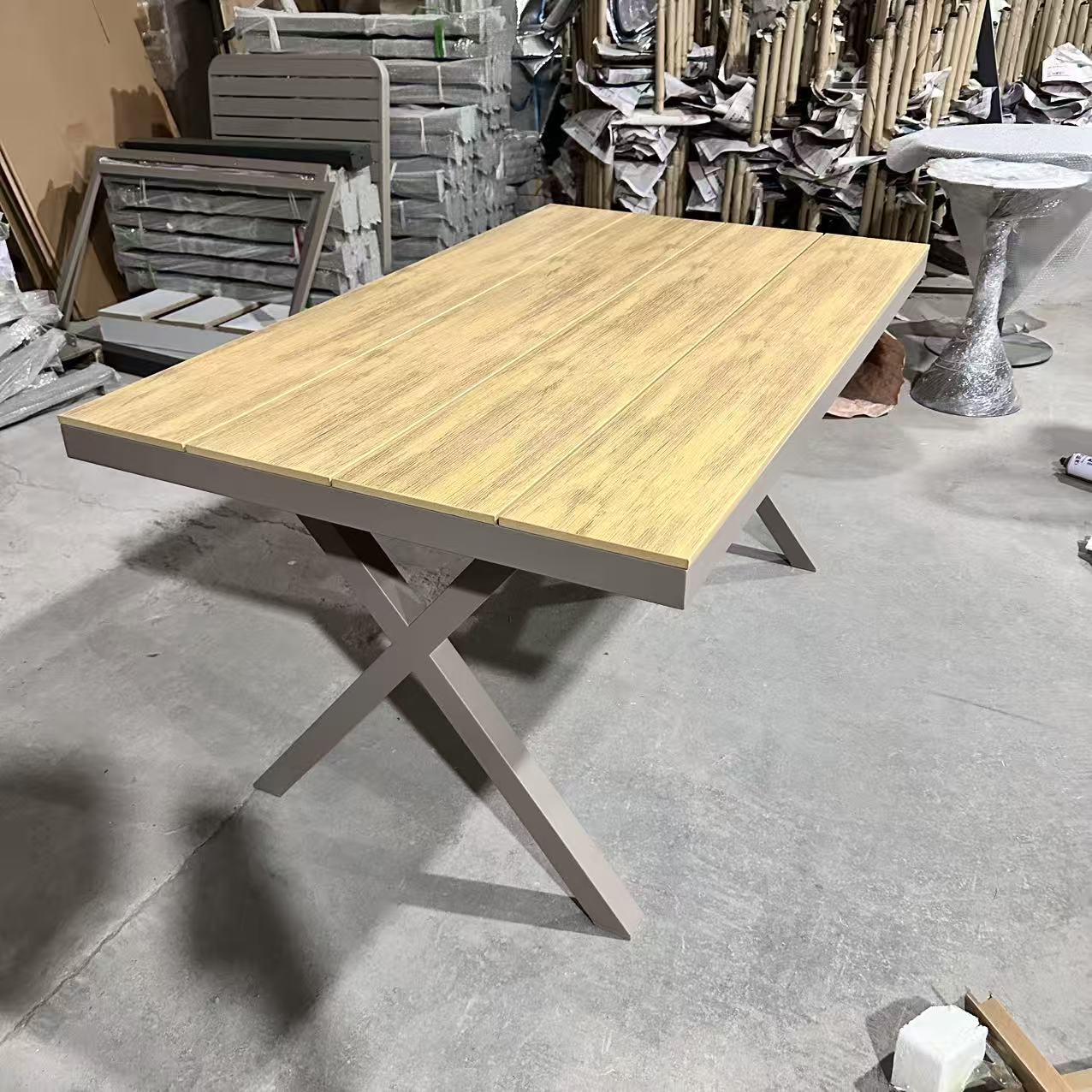 야외 안뜰 플라스틱 나무 의자 정원 빌라 개폐식 긴 테이블 방수 간단한 레저 야외 부식 방지 목재 테이블과 의자 조합